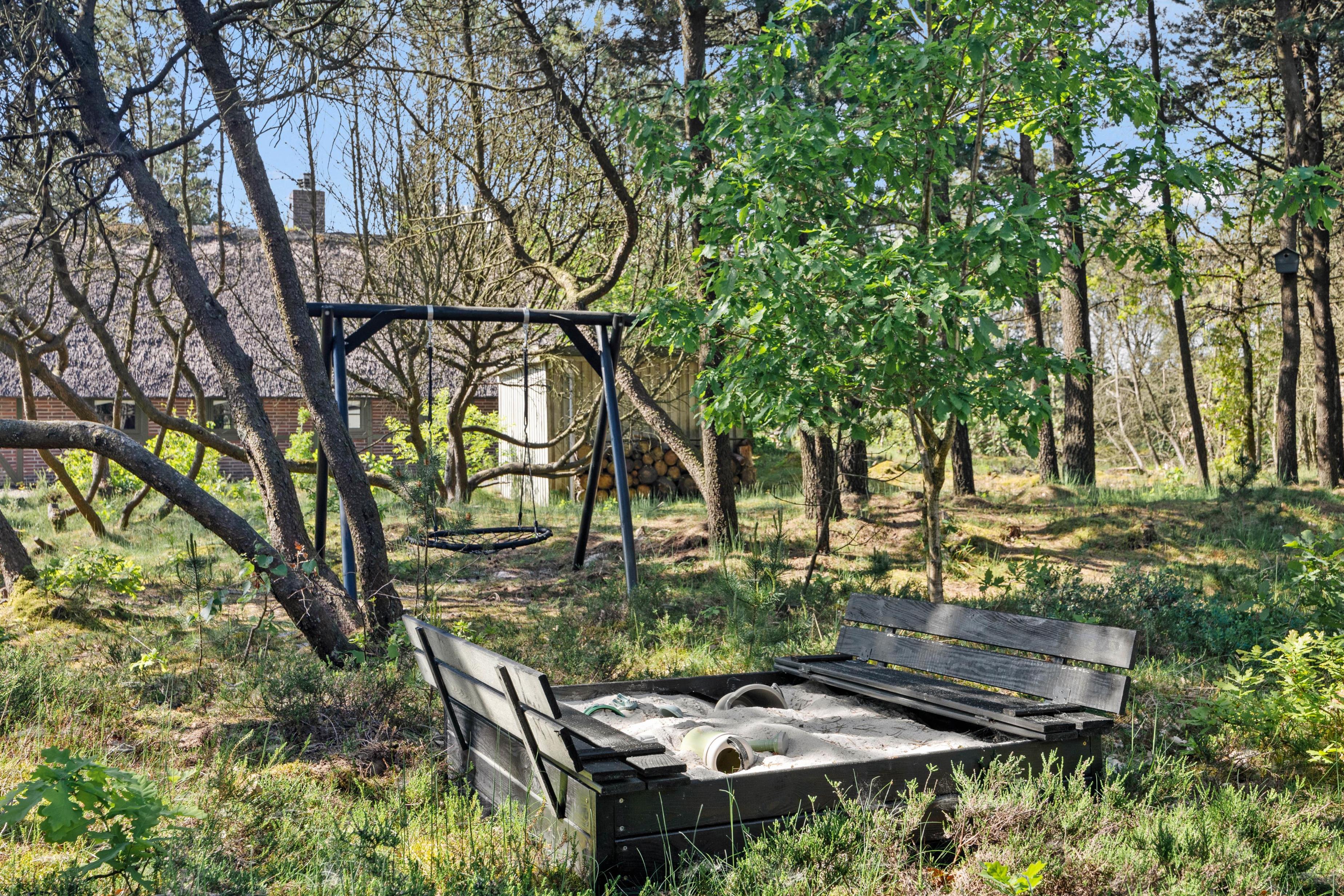 Sommerhuset ligger på en naturgrund, der er 1.595 kvadratmeter stor, og på sommerhusets udeområde har I god mulighed for at tilbringe de solrige dage af jeres ferie.