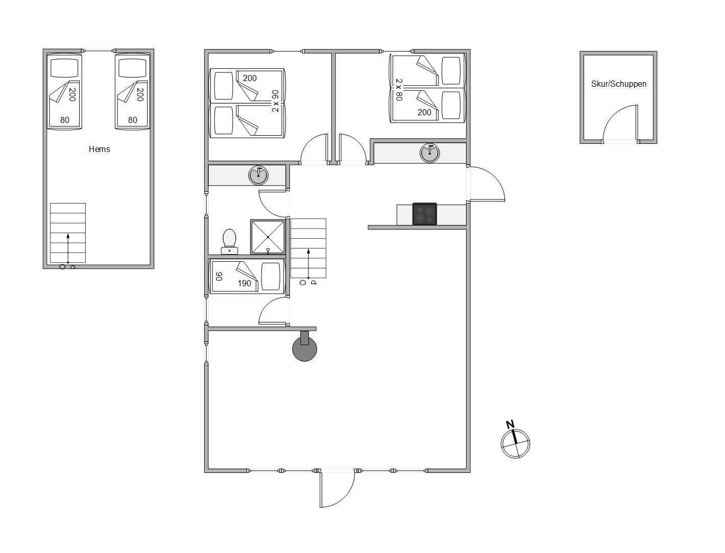 Når I efterhånden er ved at have brugt dagens sidste energi, kan I søge mod sommerhusets soveværelser, hvor I kan samle ny energi til næste feriedag. I feriehuset er der 2 soveværelser samt 1 hems, der er indrettet med i alt 2 dobbeltsenge og 3 enkeltsenge. Perfekt hus til at finde en hyggekrog med en god bog eller trække sig og nyde en god nats søvn.