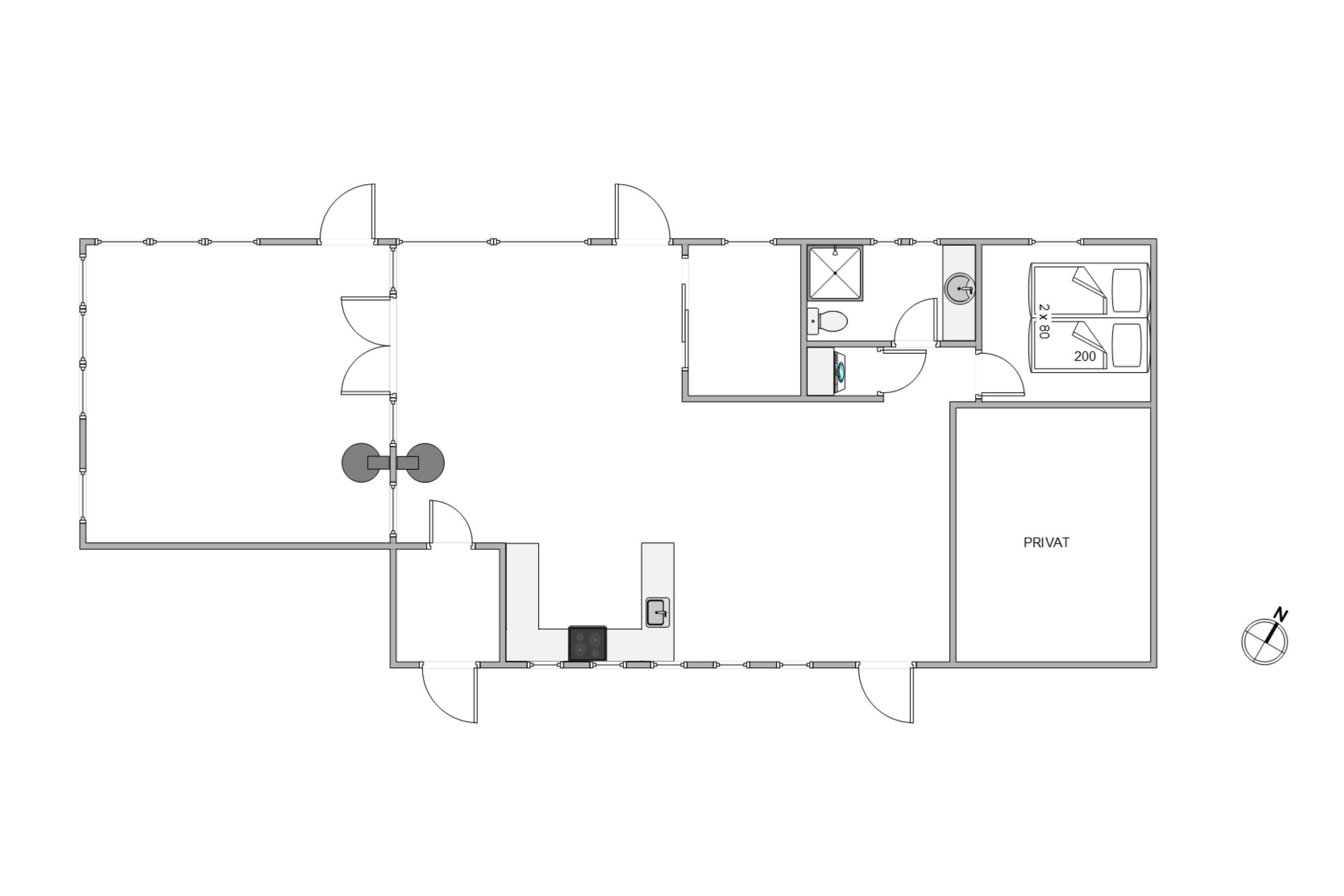 Hele 119 velindrettede kvadratmeter har I for jer selv. Her er højt til loftet og masser af plads, både inde og ude. Sommerhuset har 2 værelser, hvoraf det ene naturligvis er et soveværelse og det andet fungerer som kontor, hvilket er oplagt, hvis der stadig skal klares et par enkelte arbejdsopgaver i ferien.