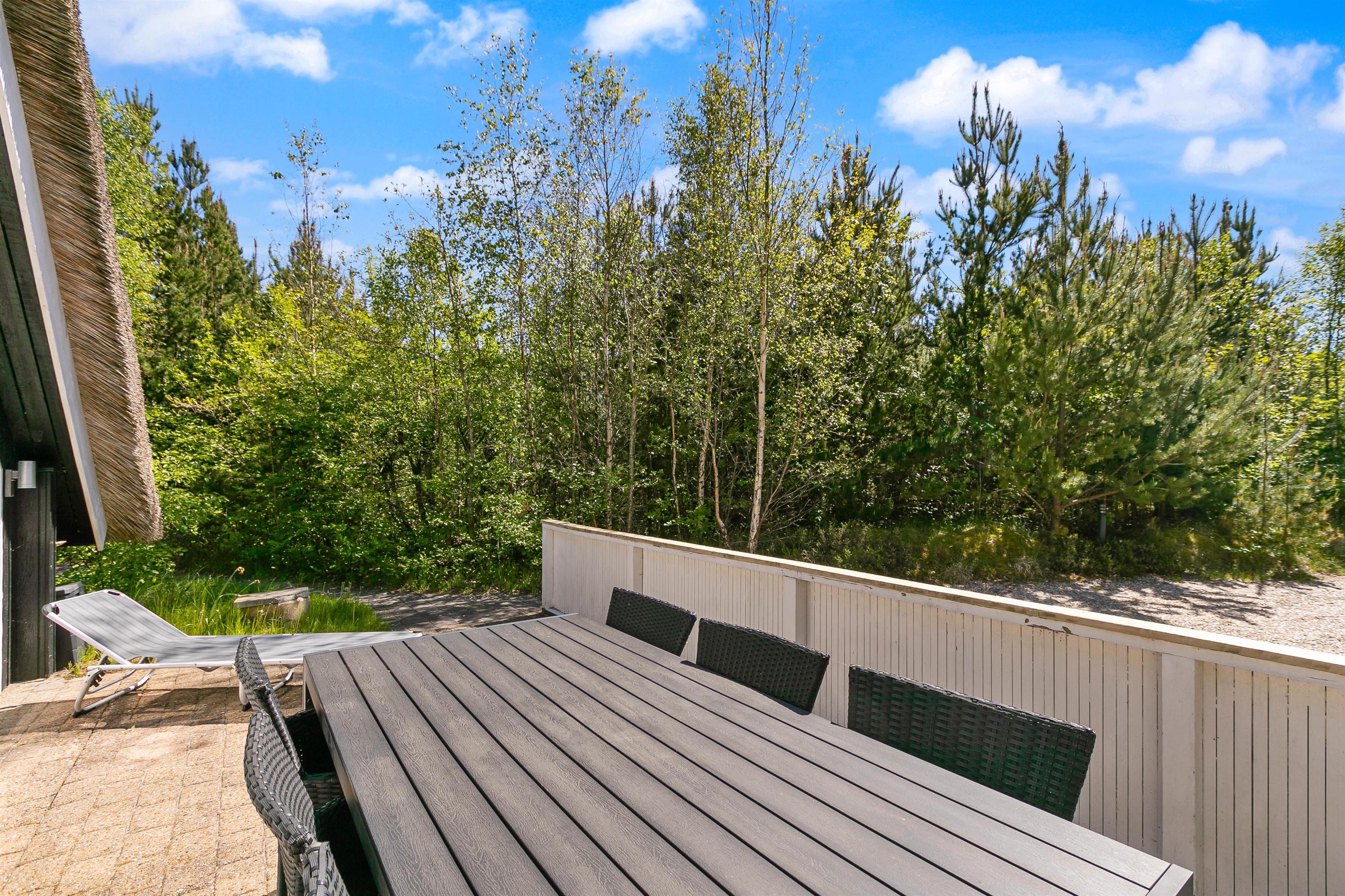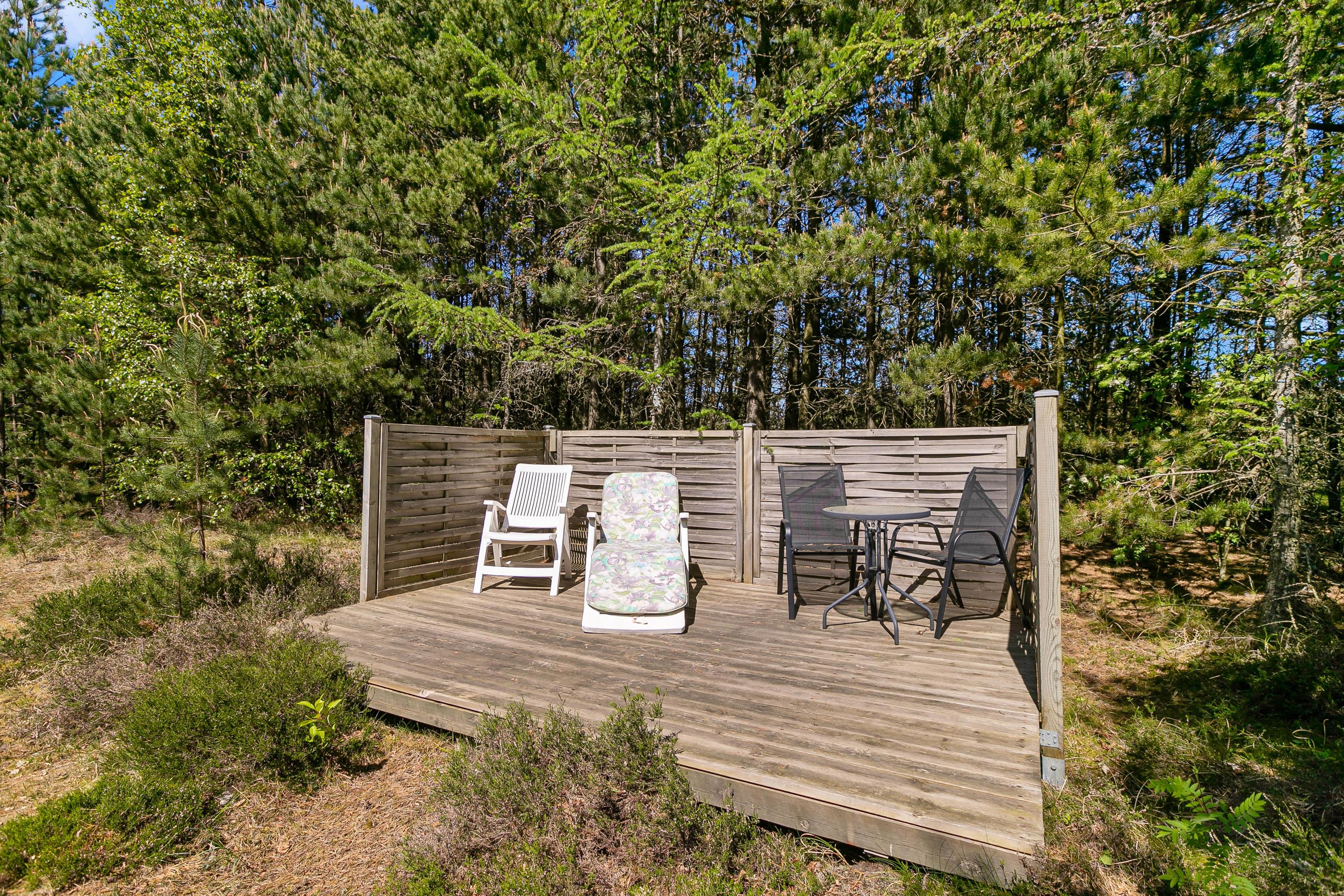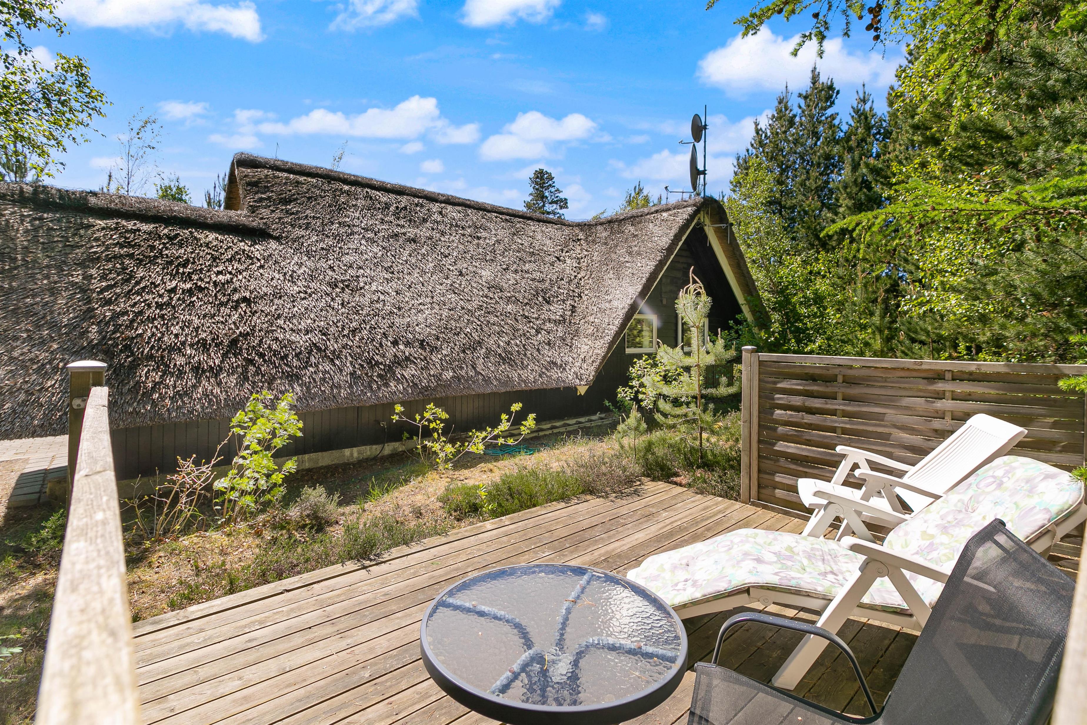 Rundt om huset finder I flere terrasser med udsigt til den flotte natur, hvor I kan sole jer i det gode vejr og nyde freden og den friske luft. Den afskærmede solterrasse er perfekt til en god morgenmad eller frokost på de varme sommerdage, og her er der sørget for både havemøbler og liggestole til jer. Til børnene er der sat både en gynge og en sandkasse op.
