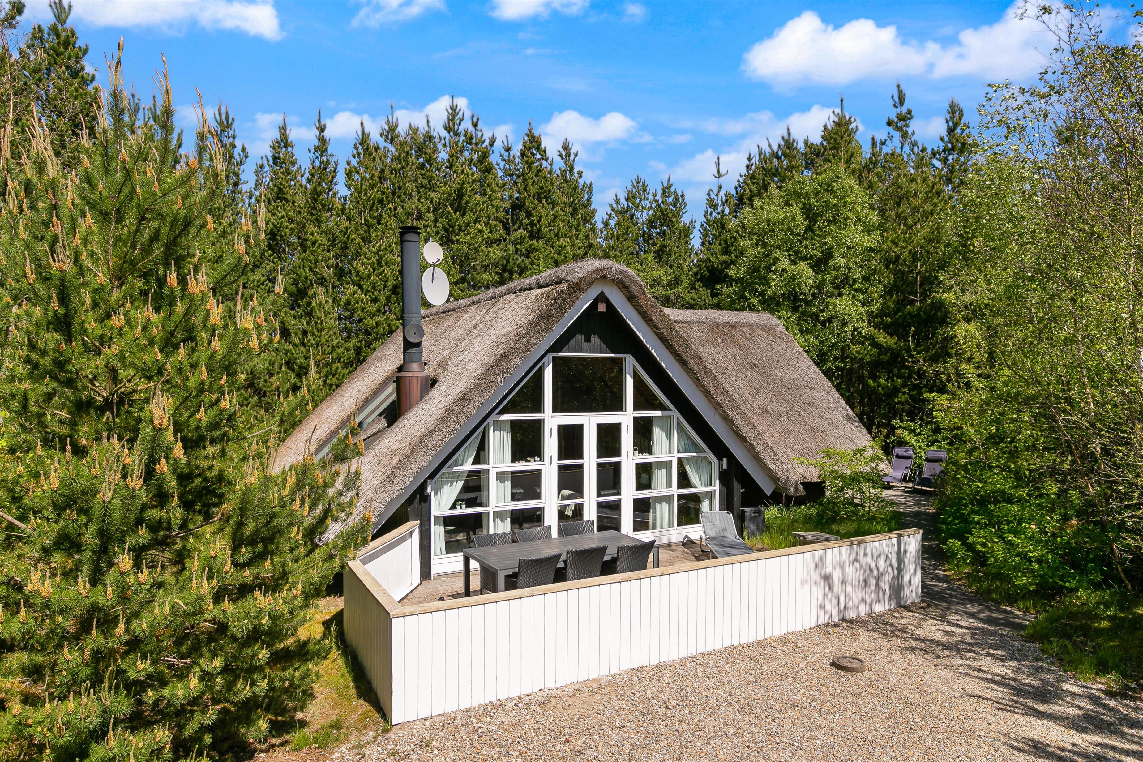 Dette fine sommerhus ligger på en stor naturgrund i det rolige Houstrup, gemt væk inde mellem fyrretræerne og det vestjyske naturlandskab. Lige meget om hele den lille familie tager af sted, eller I tager på kærestetur, kan I til hver en tid slappe af foran brændeovnen, varme jer i saunaen eller udforske det nærliggende fredede naturområde.