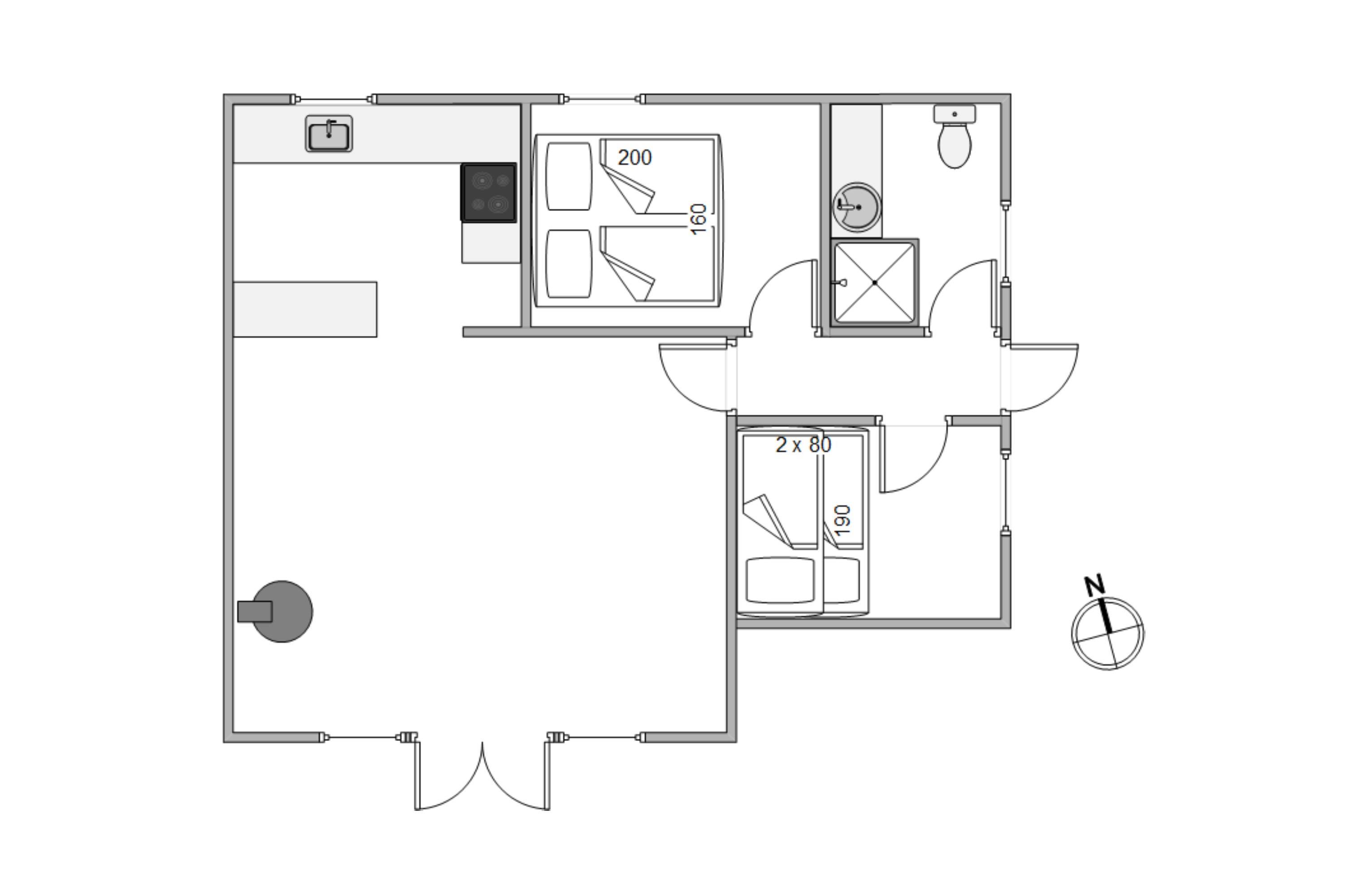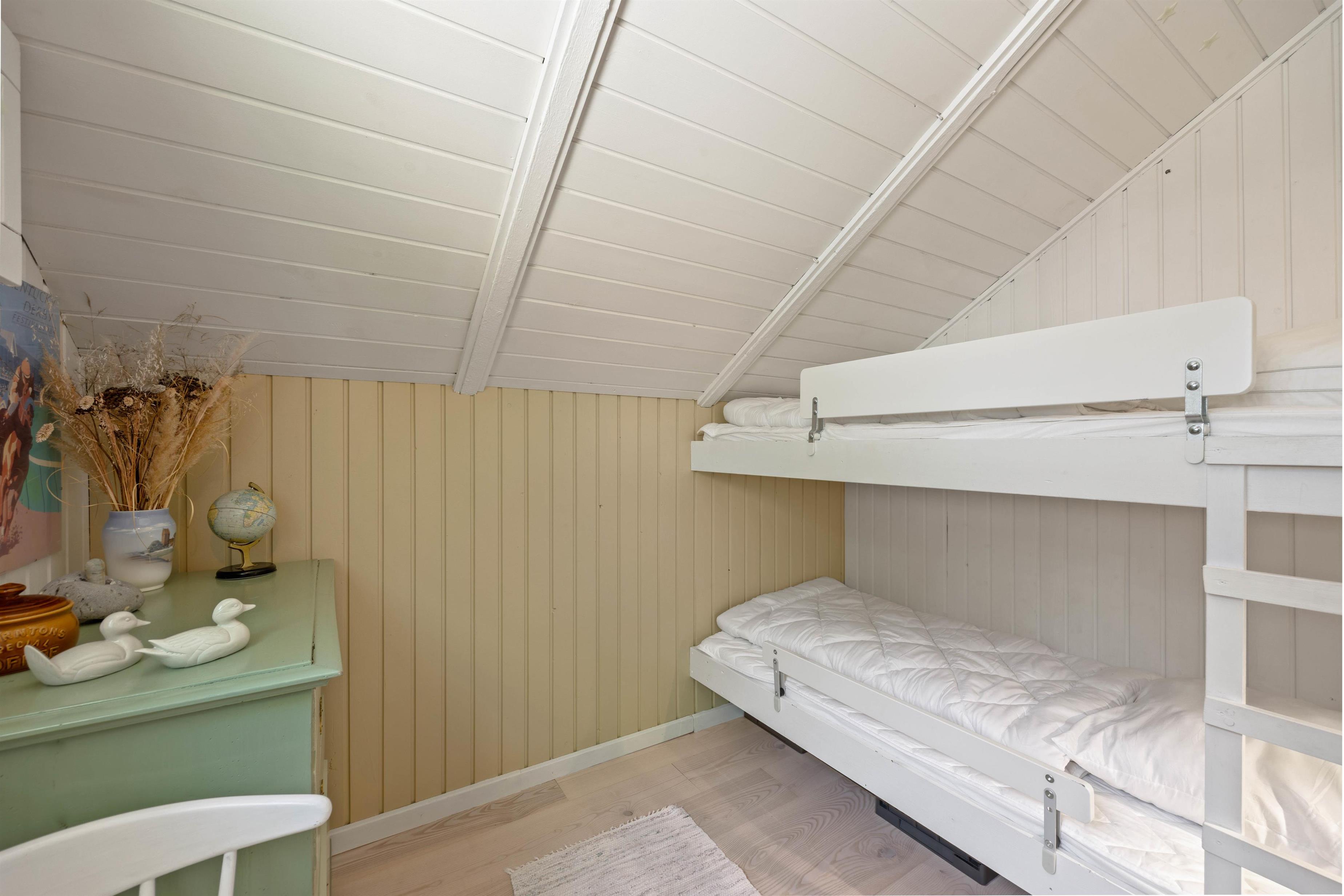 Et feriehus med en lys og venlig indretning, der sammen med de store vinduer skaber den rette ferieatmosfære. Et skønt feriehus på 60 kvm med ét badeværelse og 2 fine soveværelser, hvoraf det ene er med køjeseng. Det bliver helt sikkert et højdepunkt for familiens mindste. Køjesengen måler 80x190 cm.