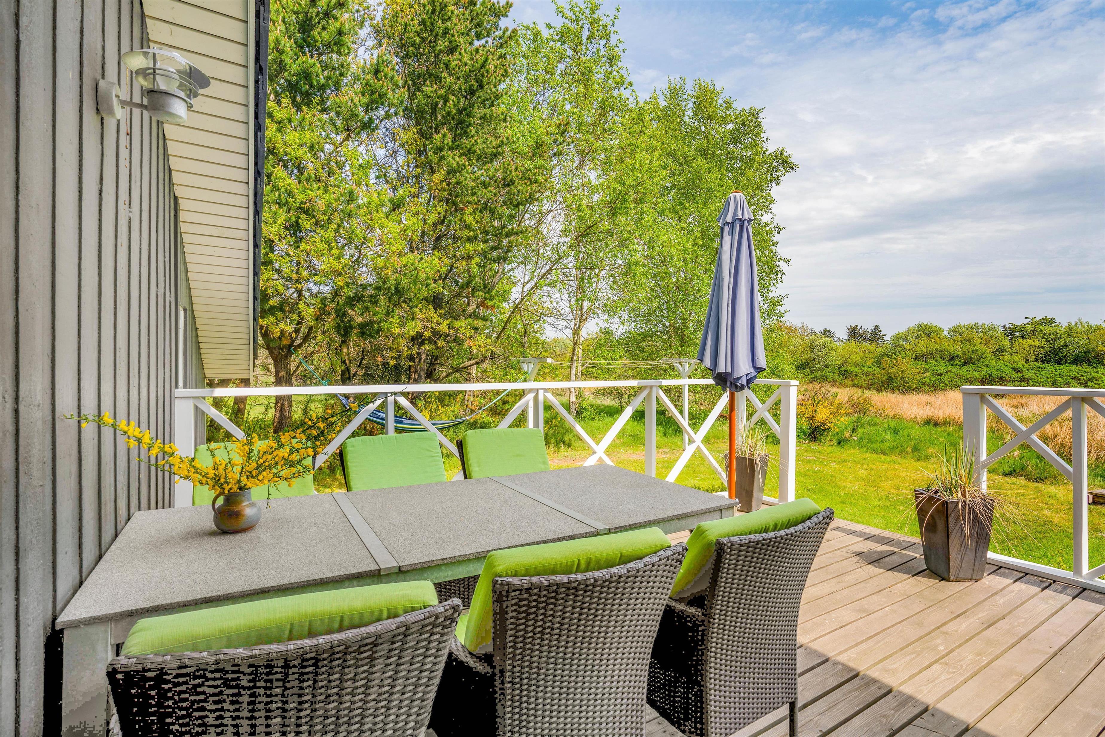 Den hyggelige havestue sørger for, at I lige meget vind og vejr altid kan nyde omgivelserne. Tag eftermiddagskaffen rundt om bordet med udsigt ud til haven, eller tag et slag kort og nyd en kop varm te, mens regnen trommer på ruden.