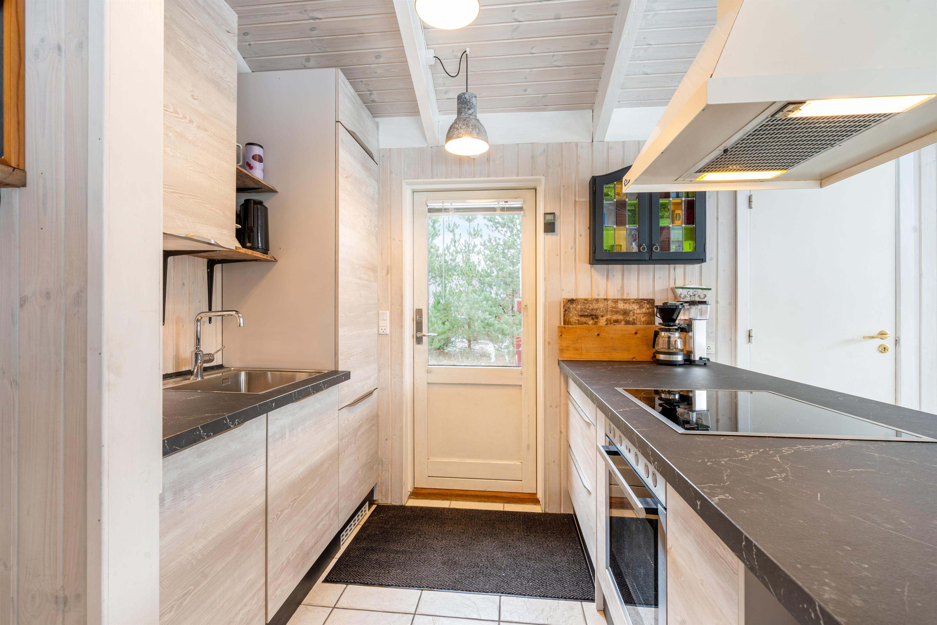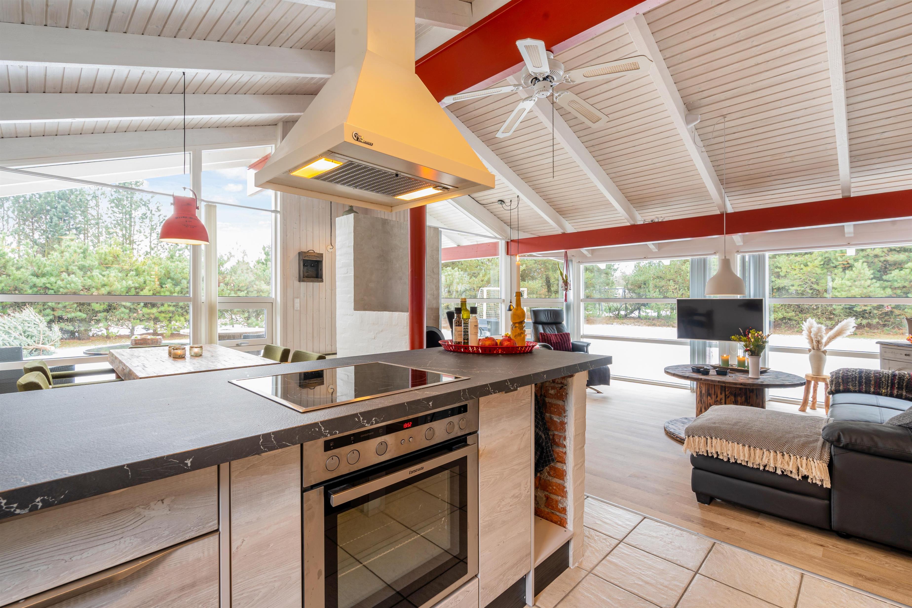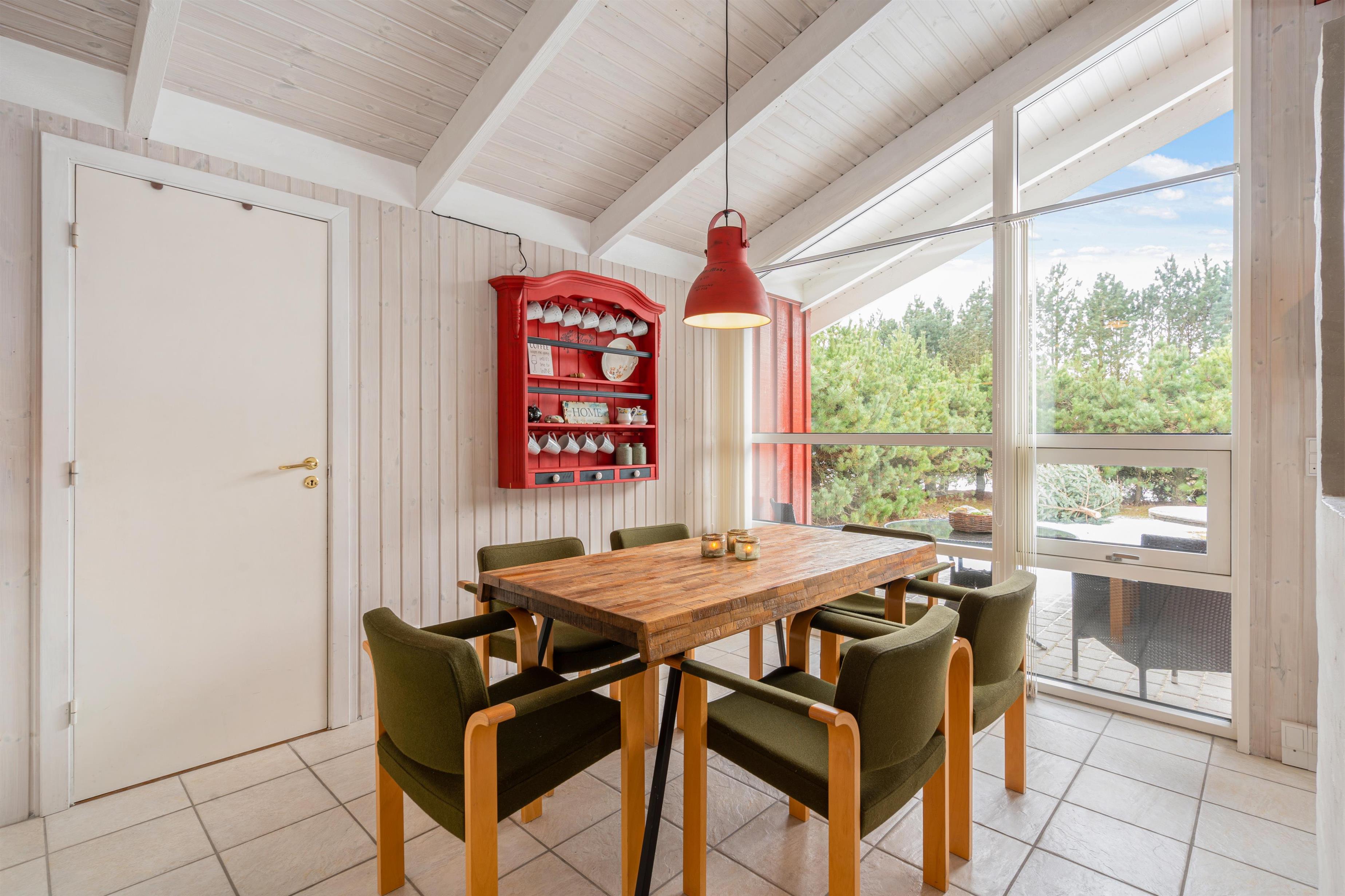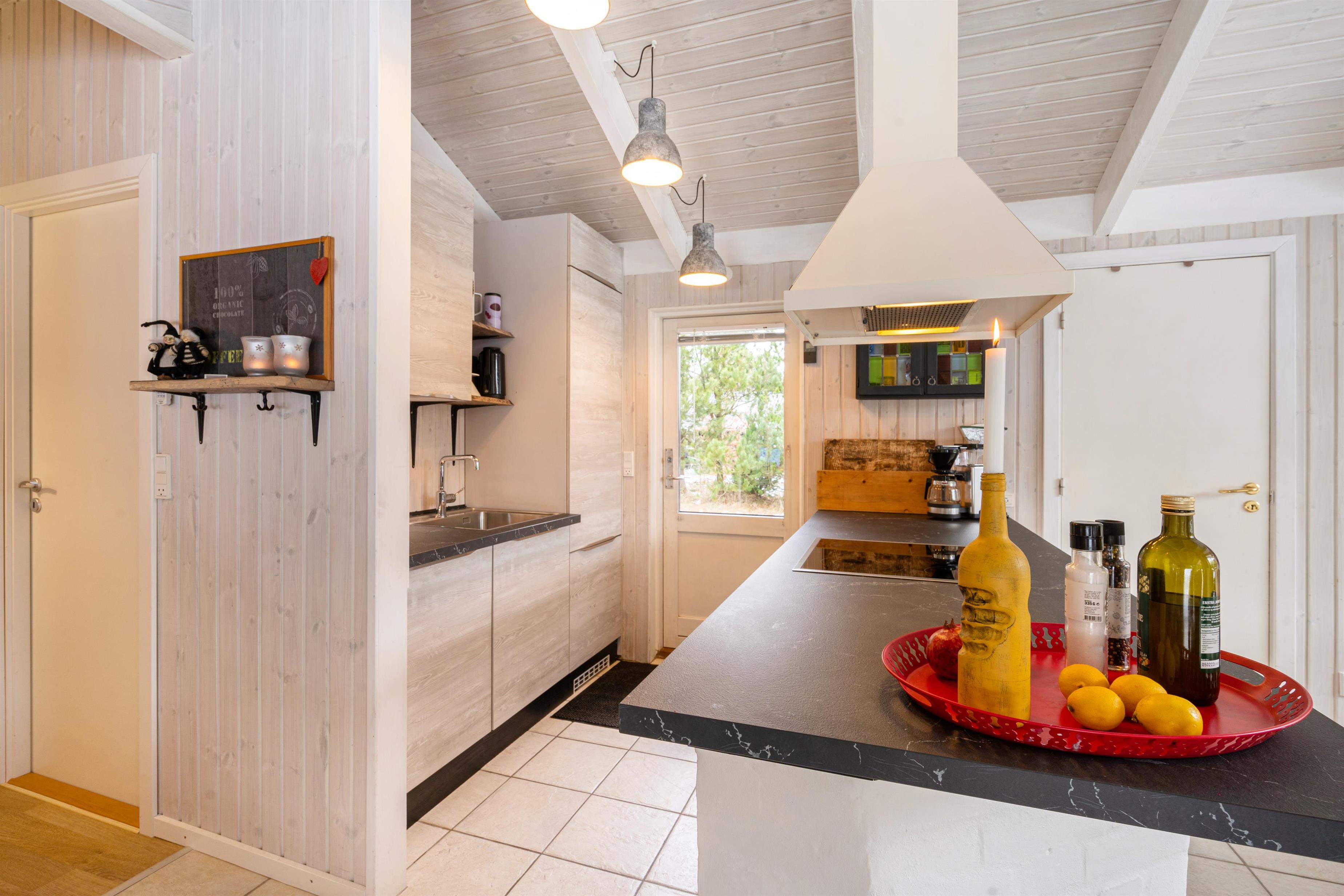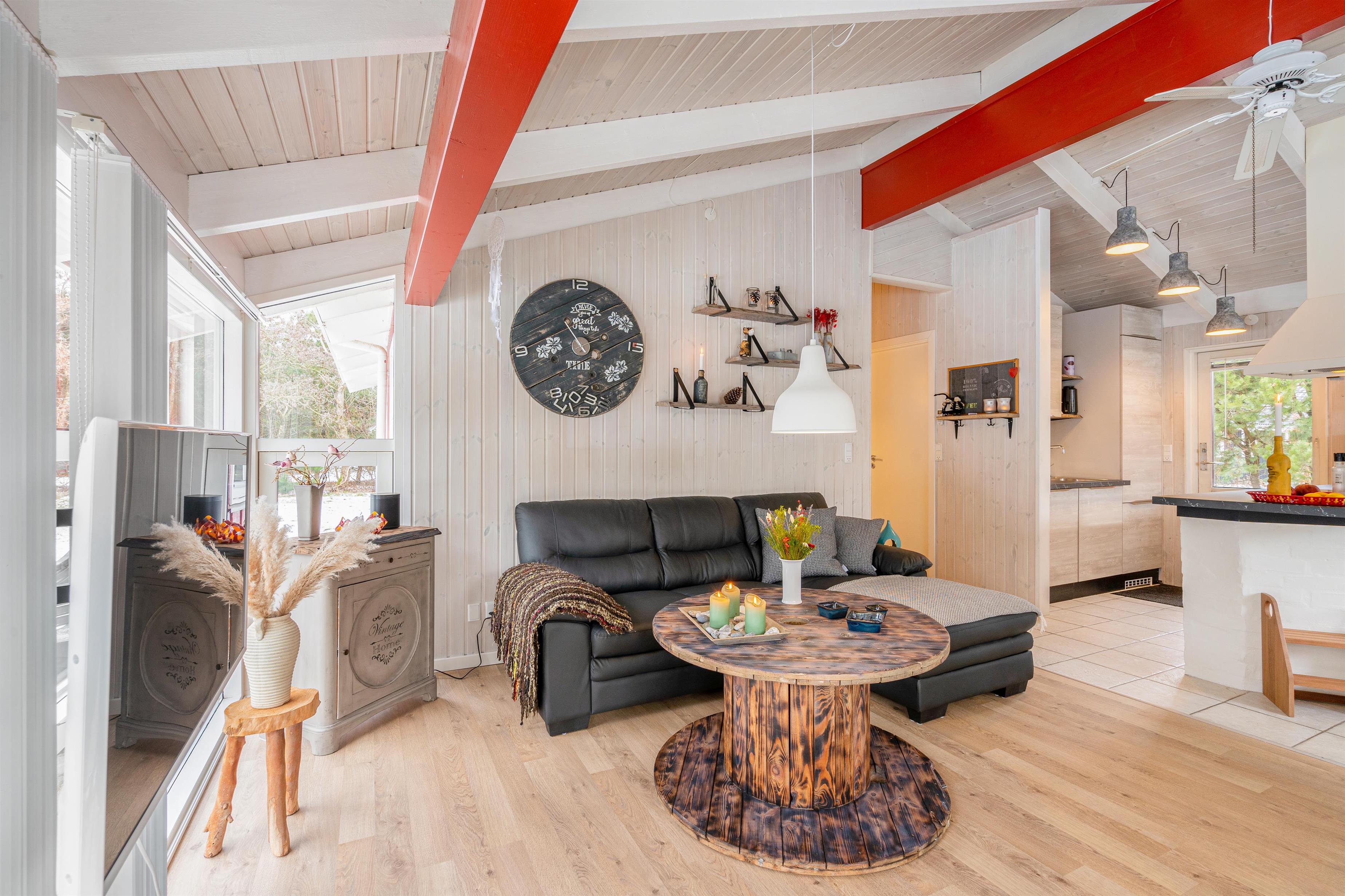 Det skønne åbne køkken- og spisestueområde er sommerhusets hjerte og bliver centrum for samvær. Her er der masser af plads til fælles madlavning i det nye køkken fra 2021 eller en hyggelig aften på sofaen. Lad de sene aftentimer rinde ud, mens den orange aftenhimmel kaster smukke farver ind gennem vinduerne. Her kommer I altså aldrig til at kede jer, og mens I læner jer tilbage og nyder varmen, kan de mindste sommerhusgæster underholde sig selv timevis på det flot indrettede børneværelse med køjesenge.