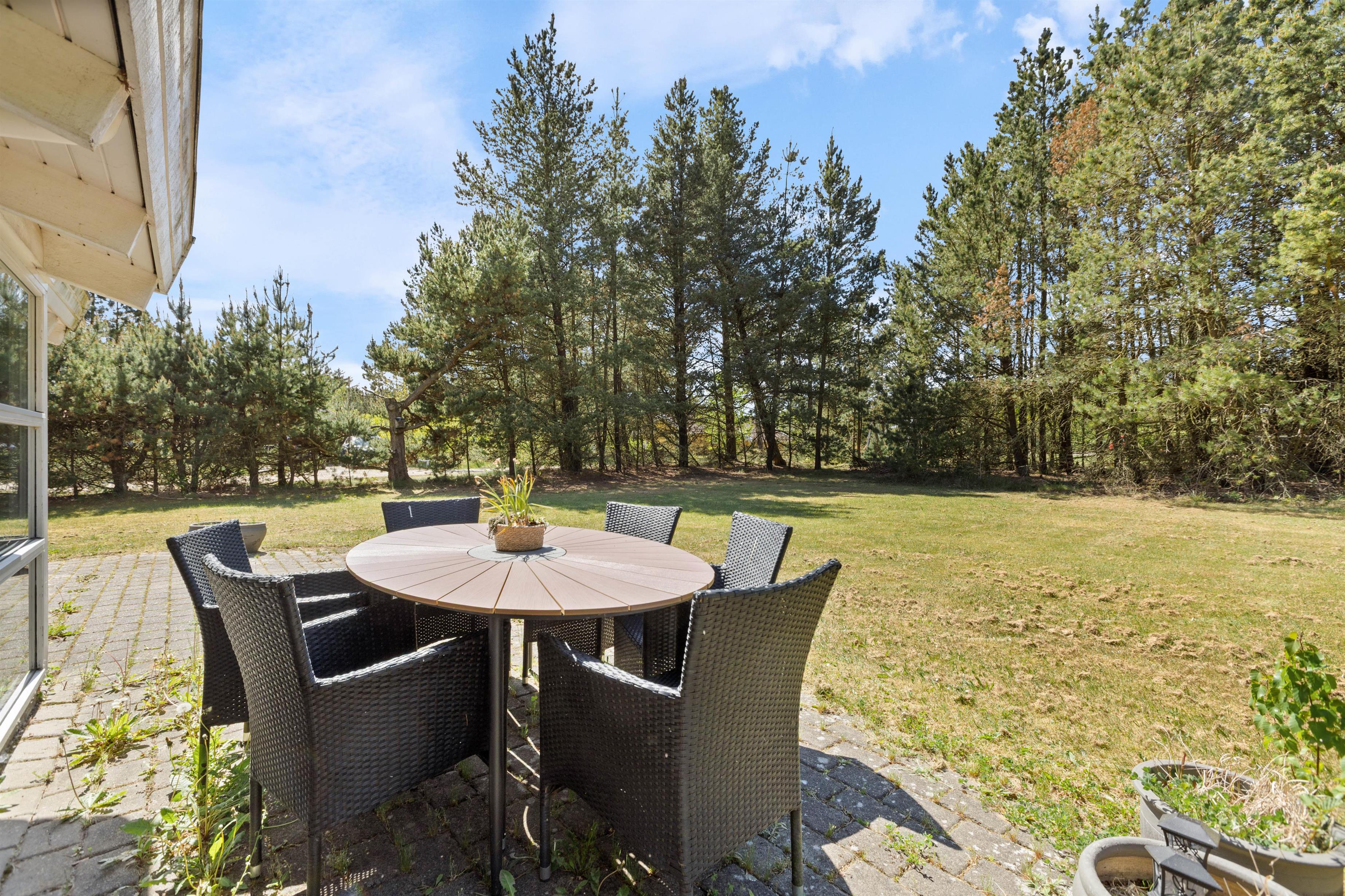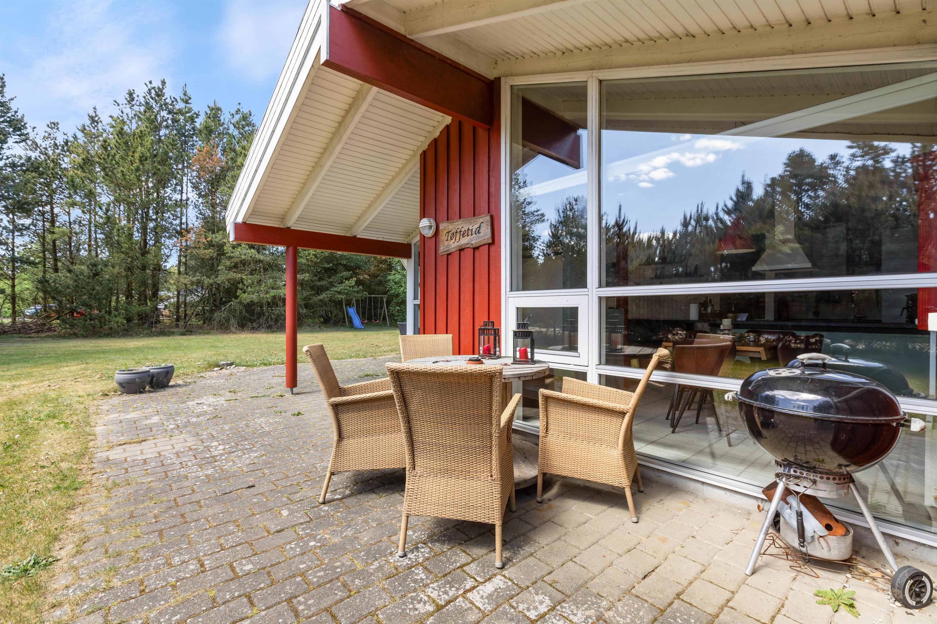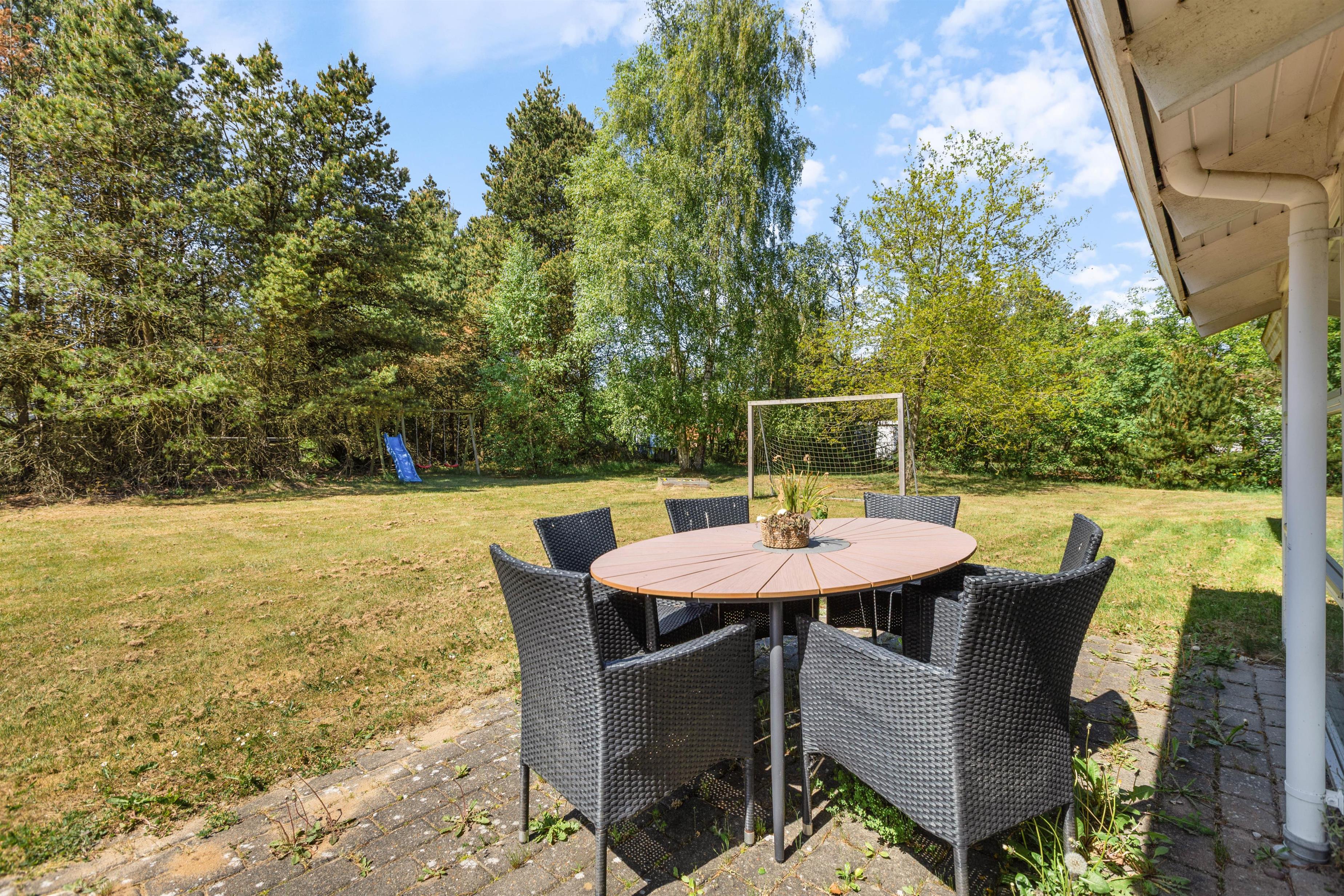 Terrassen er naturligvis også udstyret med en grill, som med garanti vil blive brugt flittigt, især i sommertiden på de lune aftener. Saml hele familien rundt om havebordet til en hyggelig middag, hvor morgendagens udflugter kan planlægges, mens solen går ned bag træerne.