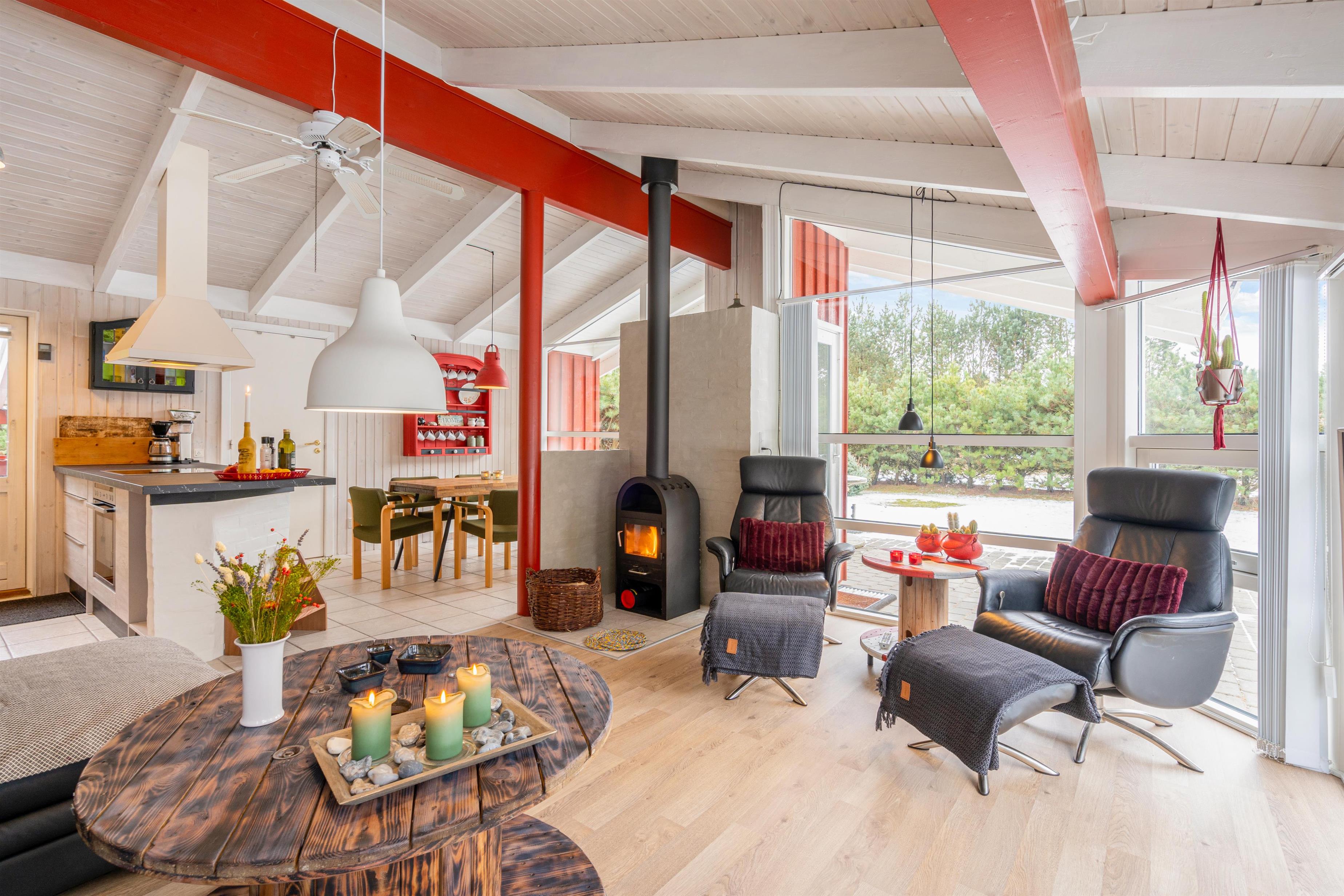 På Hedevang 40 er der garanti for en helt fantastisk ferie hele året rundt. Sommer såvel som vinter sørger saunaen og spaen på det store badeværelse for total afslapning og skøn feriefred, og især i de kølige måneder vil brændeovnens knitrende flammer sprede varme og hygge, mens feriehusets Sonos enhed spiller jeres yndlingsmusik.