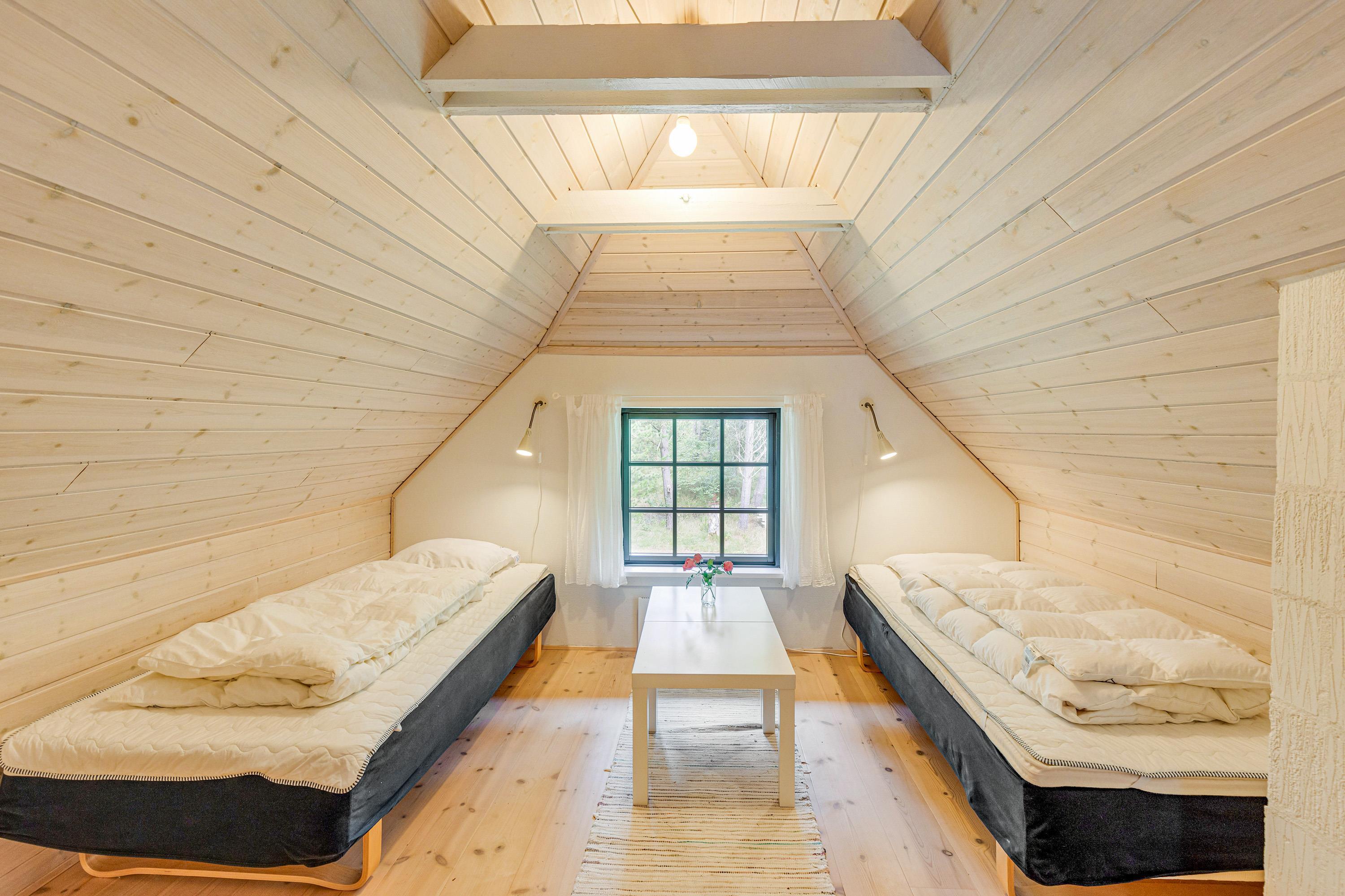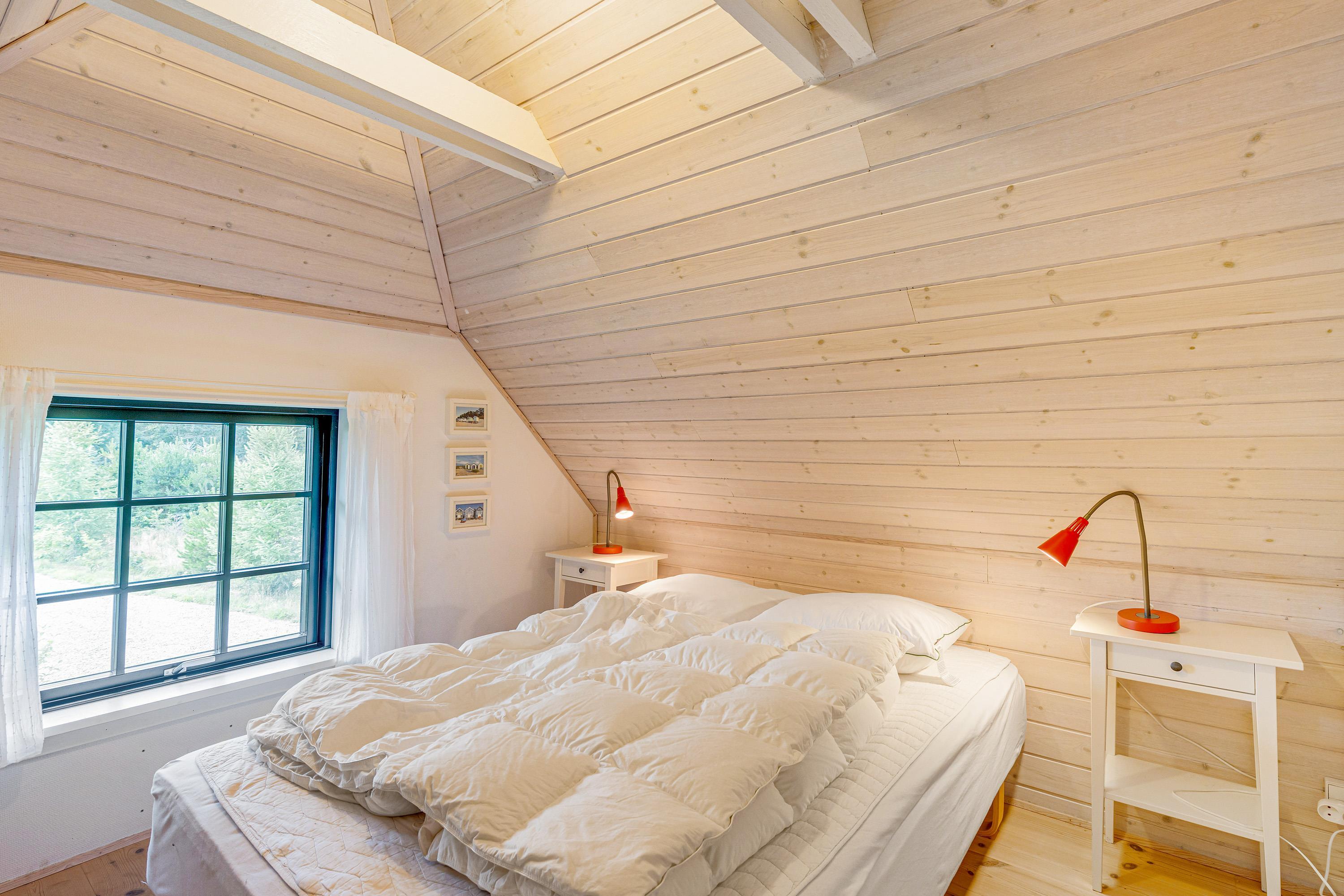 Huset rummer tre soveværelser fordelt på to plan. Med en dobbeltseng på stueetagen og yderligere to værelser på førstesalen; det ene med en dobbeltseng og det andet med to enkeltsenge, er sommerhuset perfekt til børnefamilier. Badeværelset, med gulvvarme og en praktisk vaskemaskine, sikrer komfort og nem tøjvask under jeres ophold.