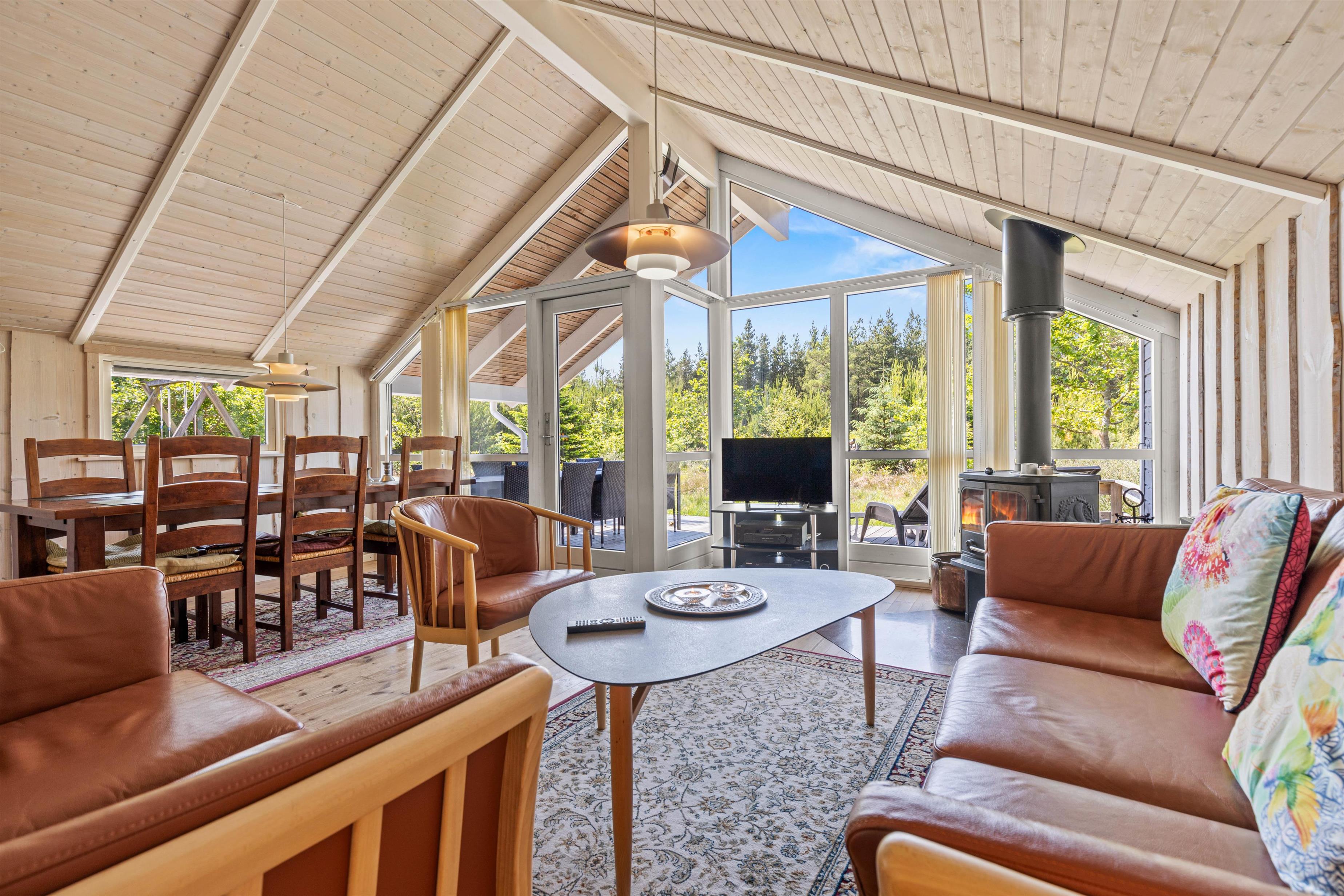 De mange vinduer i den åbne spisestue sørger for masser af lys og en venlig atmosfære. Her kan I læse en god bog eller spille kort rundt om stuebordet, og de næste par dages ferieudflugter kan planlægges. Den klassiske brændeovn vil sørge for masser af varme og god feriestemning, især på de kølige og regnfulde feriedage.