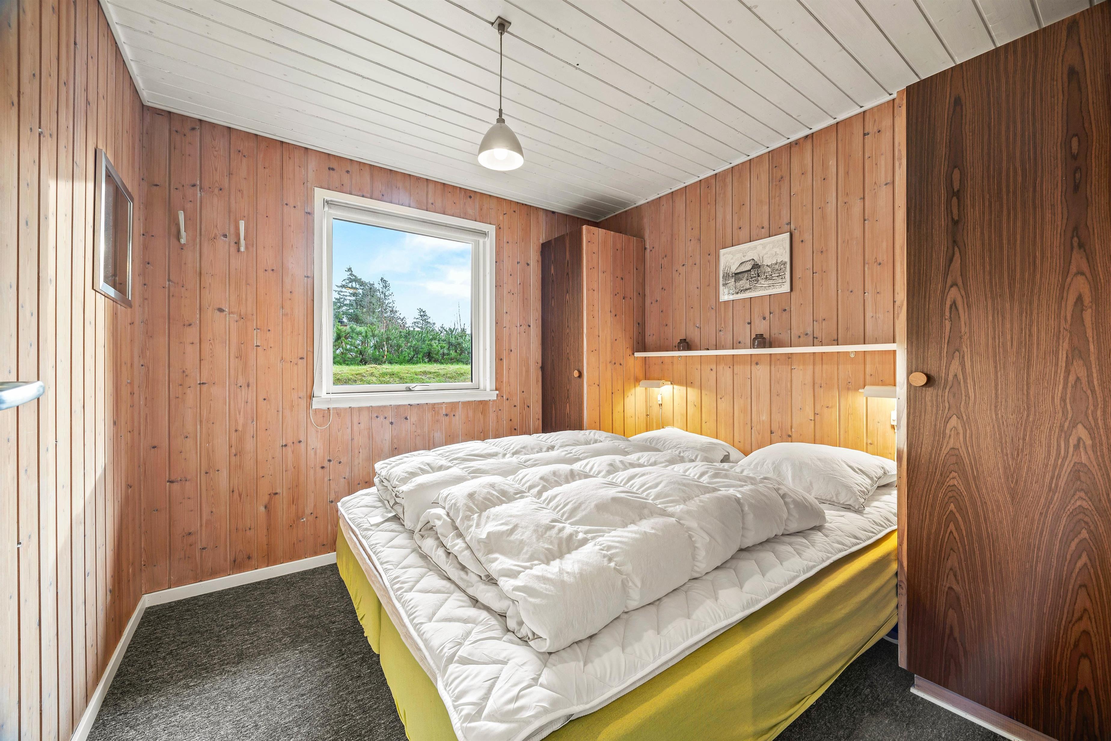 Dette hyggelige sommerhus er et godt valg til familien med børn og hund. Sommerhuset ligger midt i Houstrups naturskønne omgivelser tæt på Blåbjerg Plantage, der indbyder til masser af gåture gennem det smukke klit- og skovlandskab. I haven er der god plads til leg og spil, og foran brændeovnen eller i husets sauna kan feriedagene nydes i fulde drag.