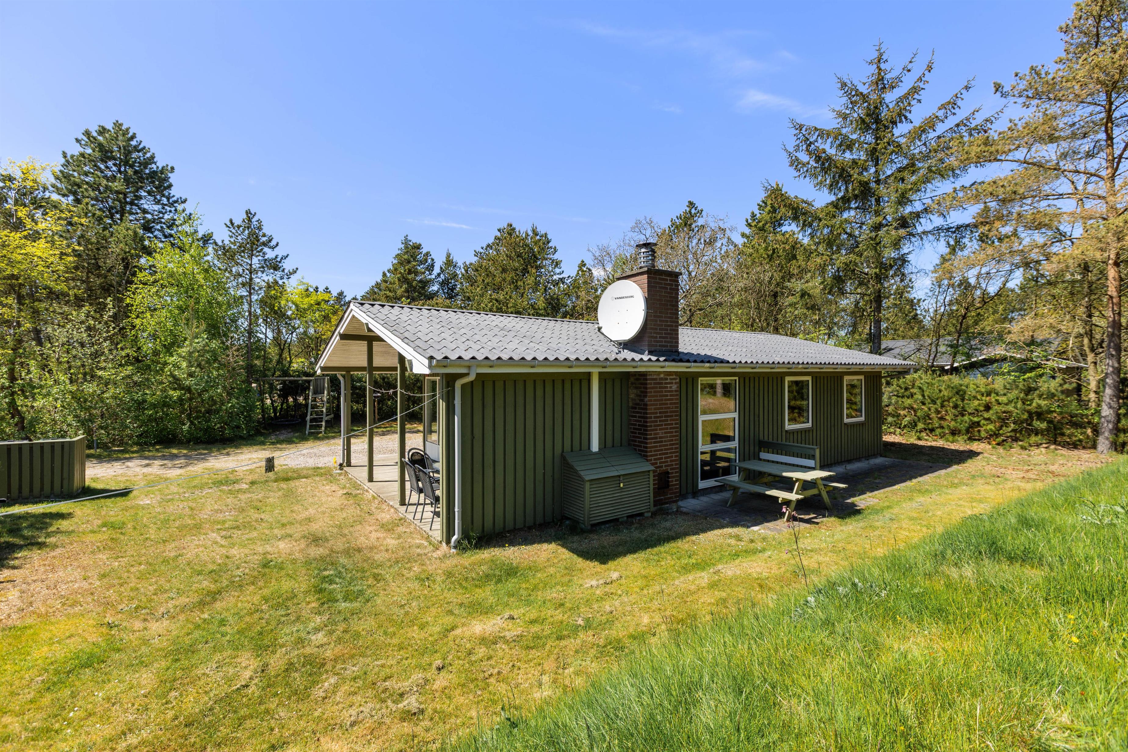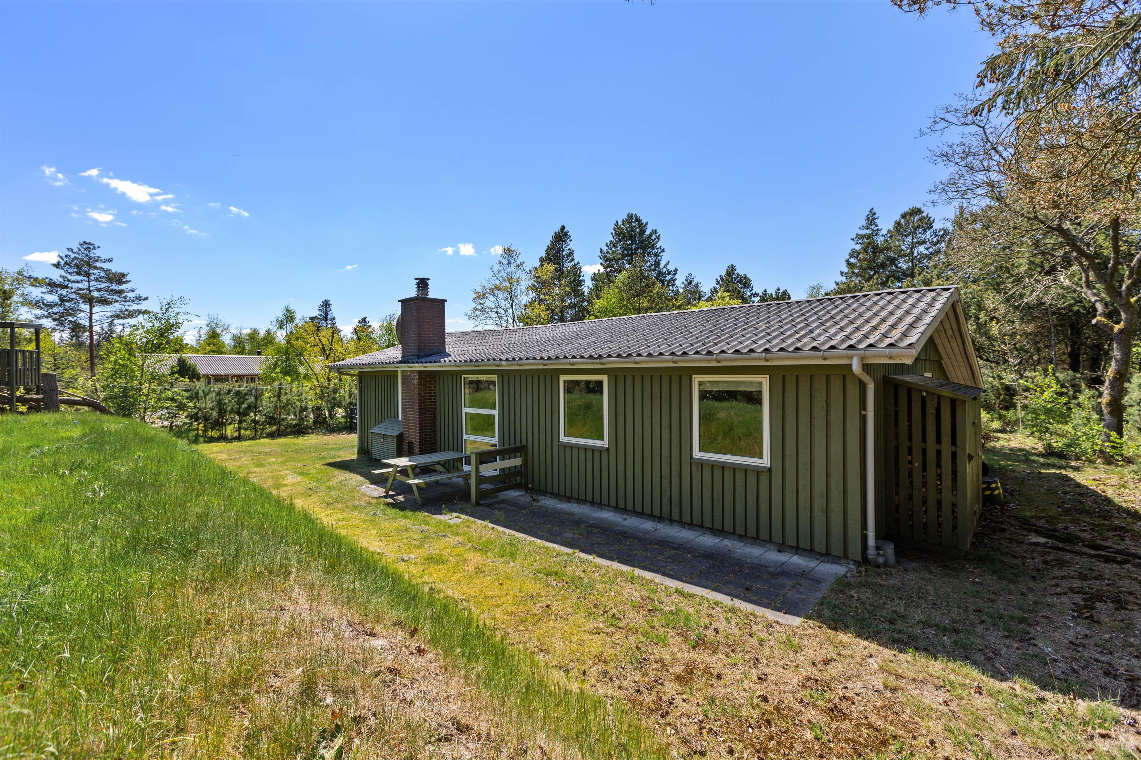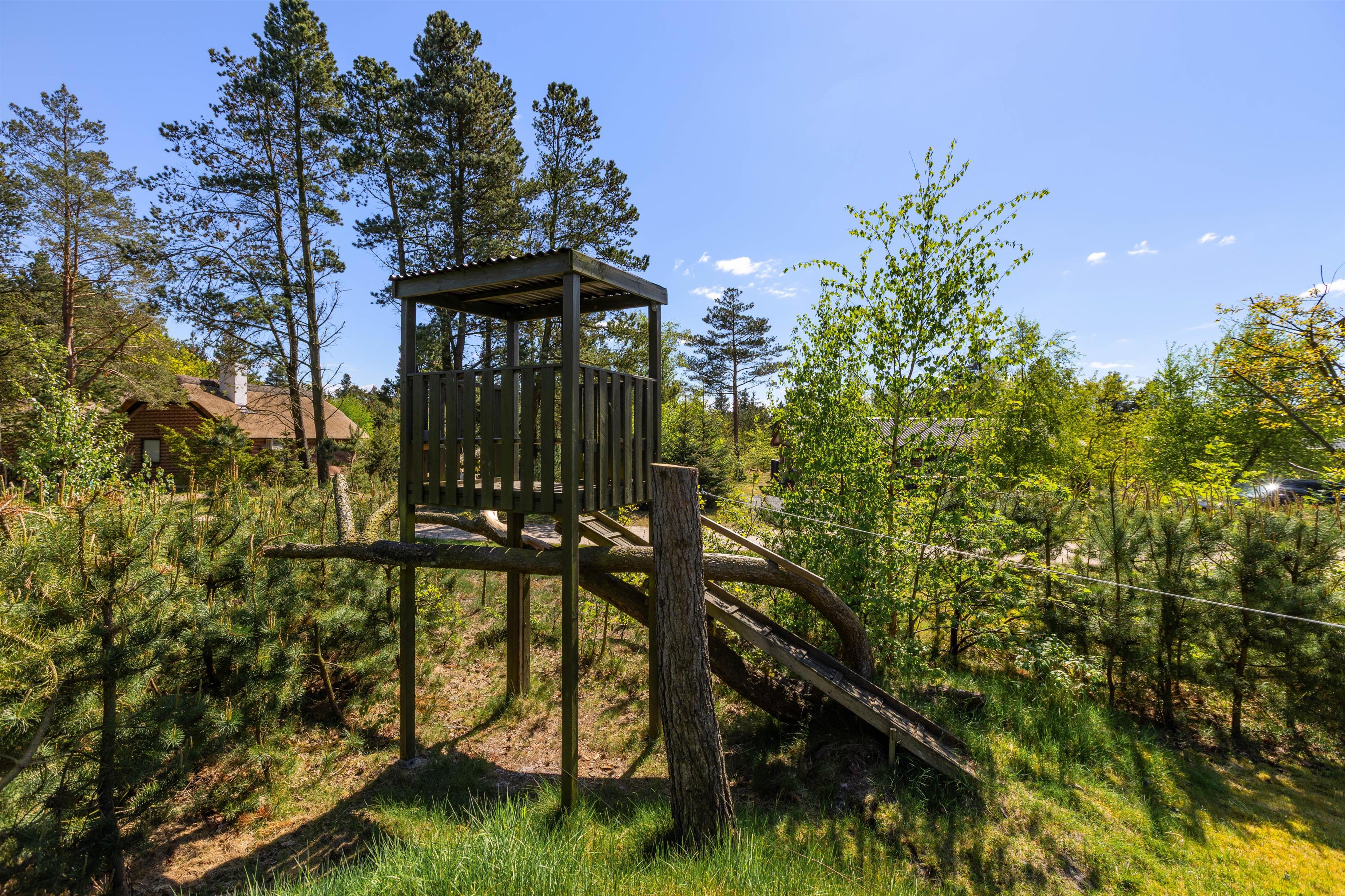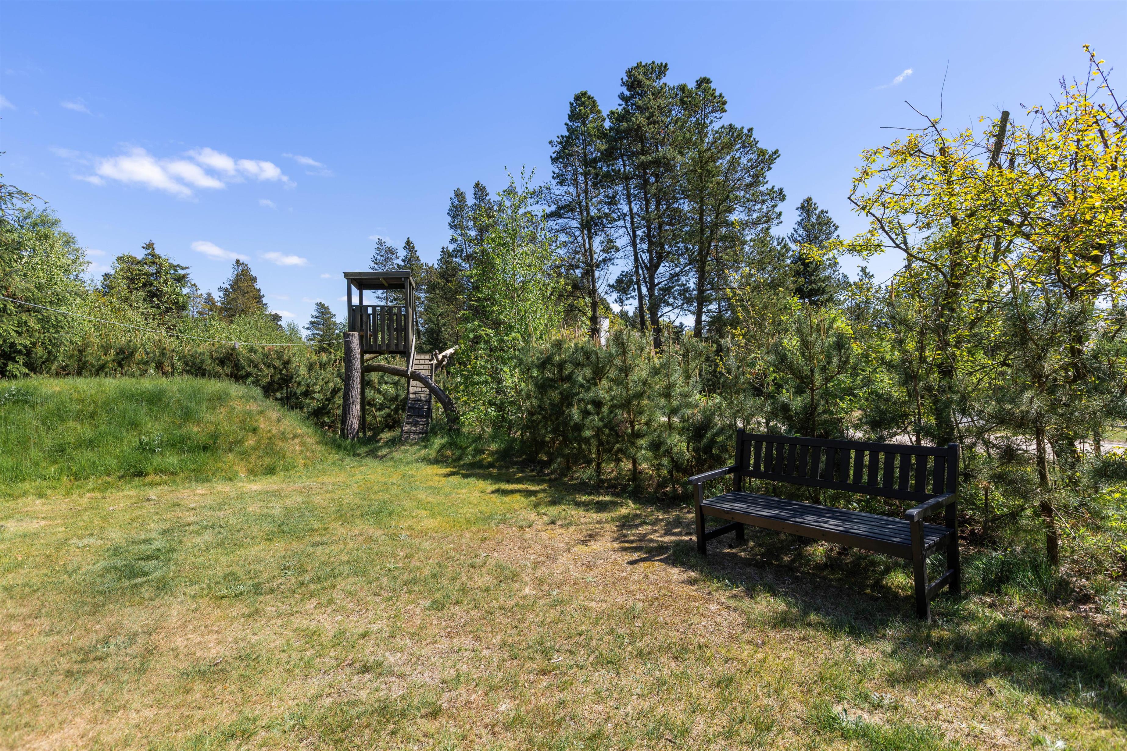 Børnene kan få flere timer til at gå i haven, hvor de, ud over en god græsplæne, sandkasse og gyngestativ, også finder et legehus. Også hunden kan udforske naturen inde mellem træerne og tumle i græsset.