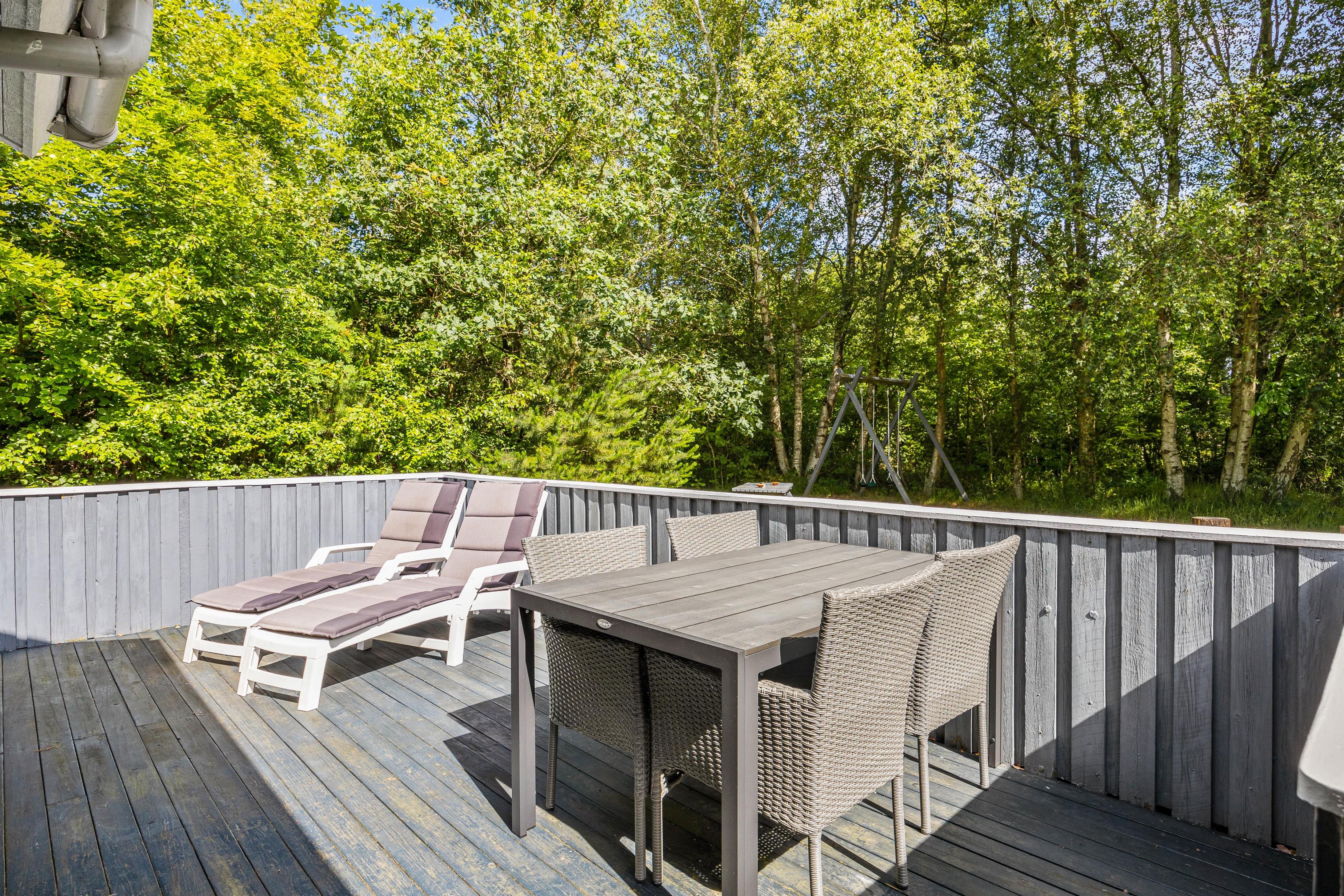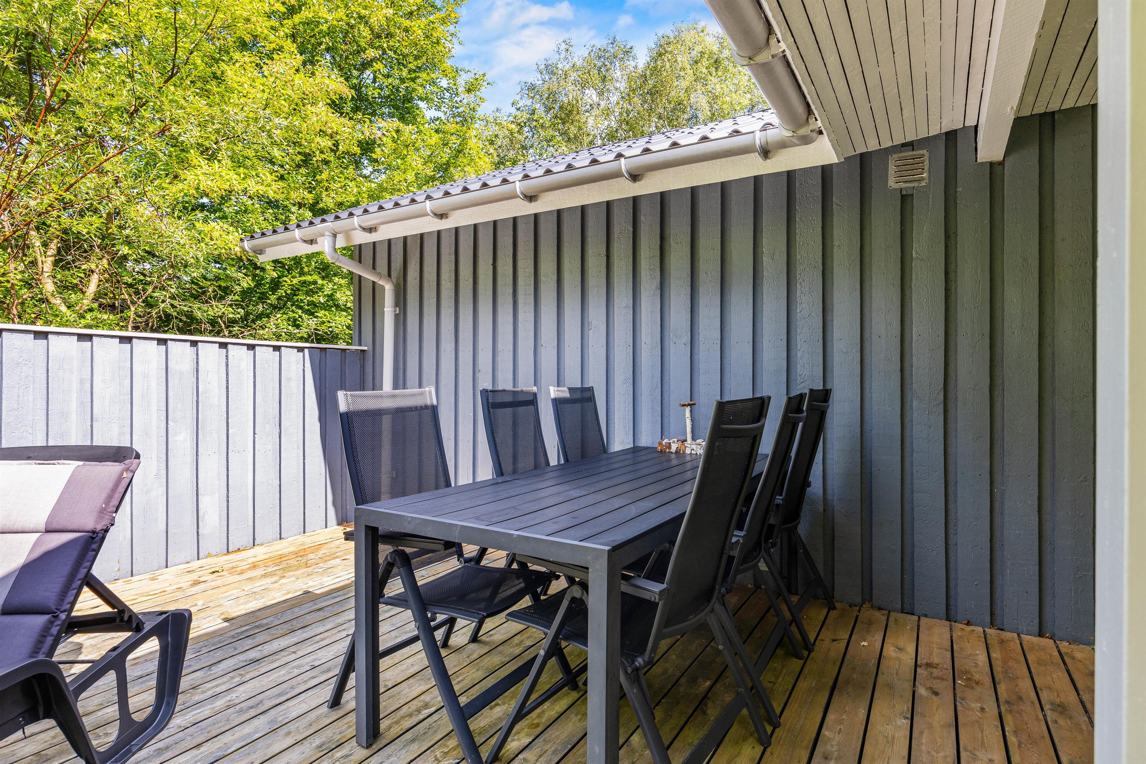 Den velholdte, delvist overdækkede terrasse er perfekt til familiegrillaftener og afslappende dage i det dejlige solskinsvejr. Her sørger havemøblerne og liggestolene for, at I kan slappe af på bedste vis i varmen, mens børnene og hunden leger på den 2.000 m² store græsgrund.
