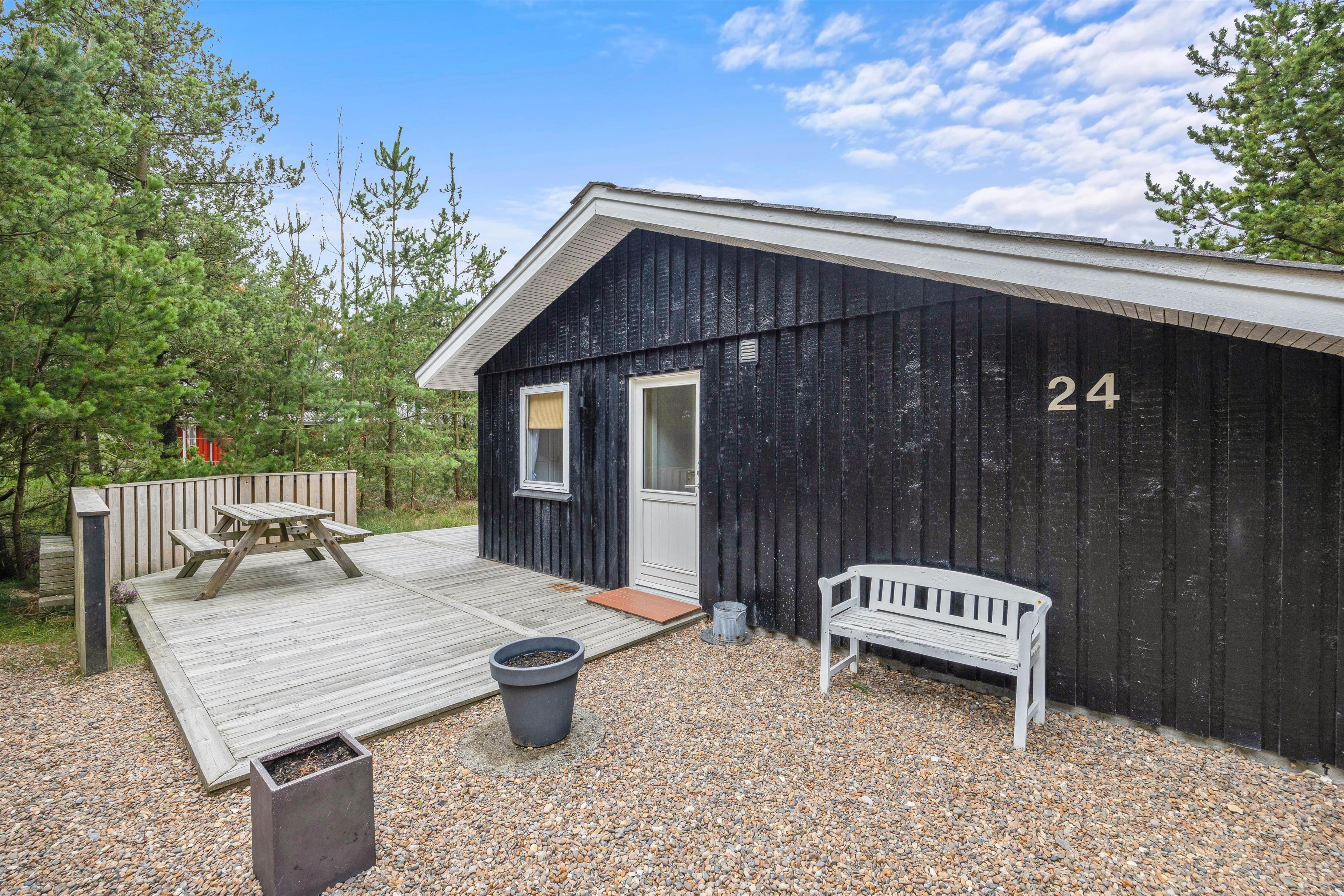 Højsvej 24 ligger på en smuk naturgrund omgivet af fyrretræer, og her kan du forvente fred og ro. Den store træterrasse går næsten hele vejen rundt om sommerhuset og har flere hyggelige siddepladser, så du kan følge solen hen over dagen. Tag en pause på liggestolene, luk øjnene, træk vejret dybt, lyt til naturens lyde.