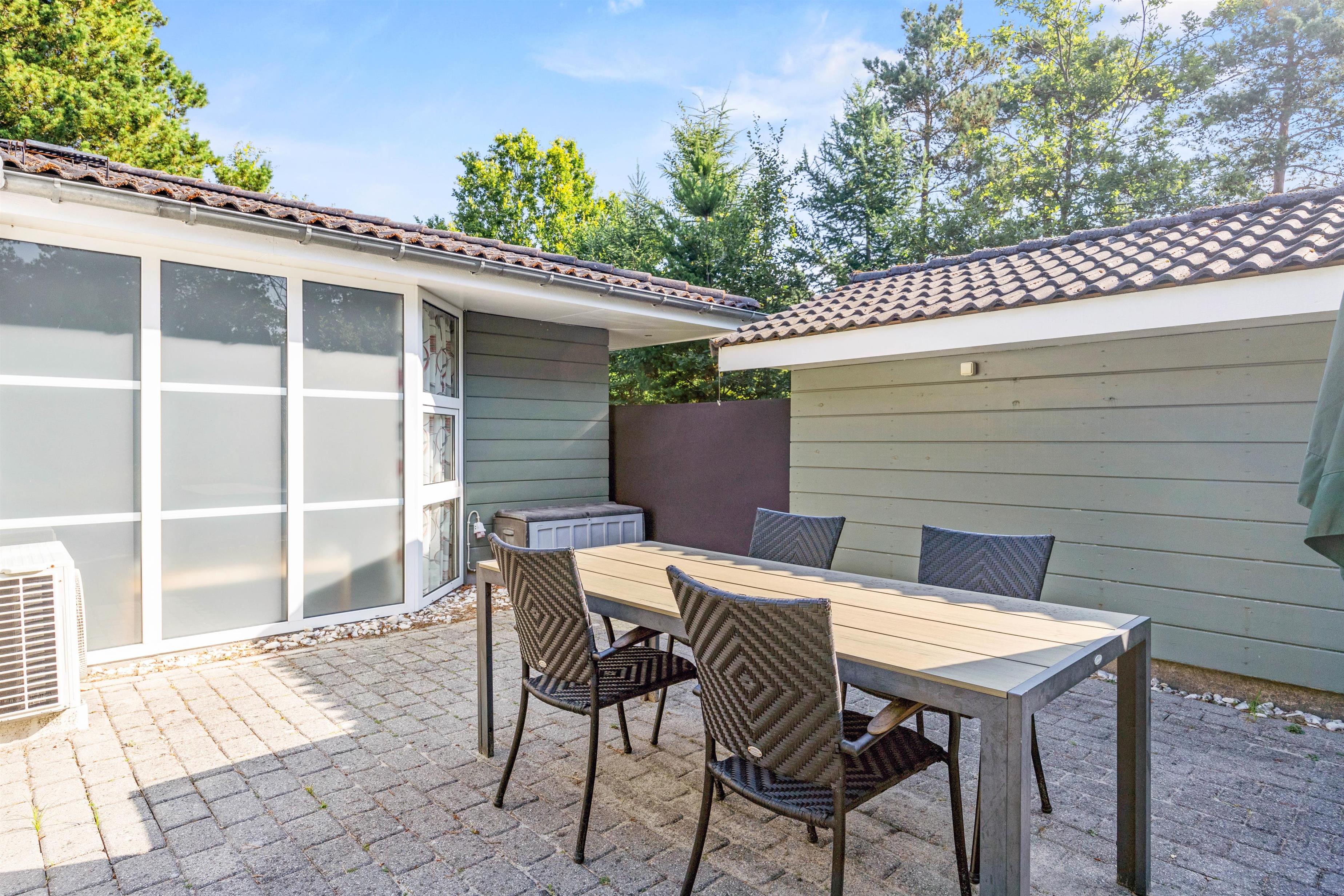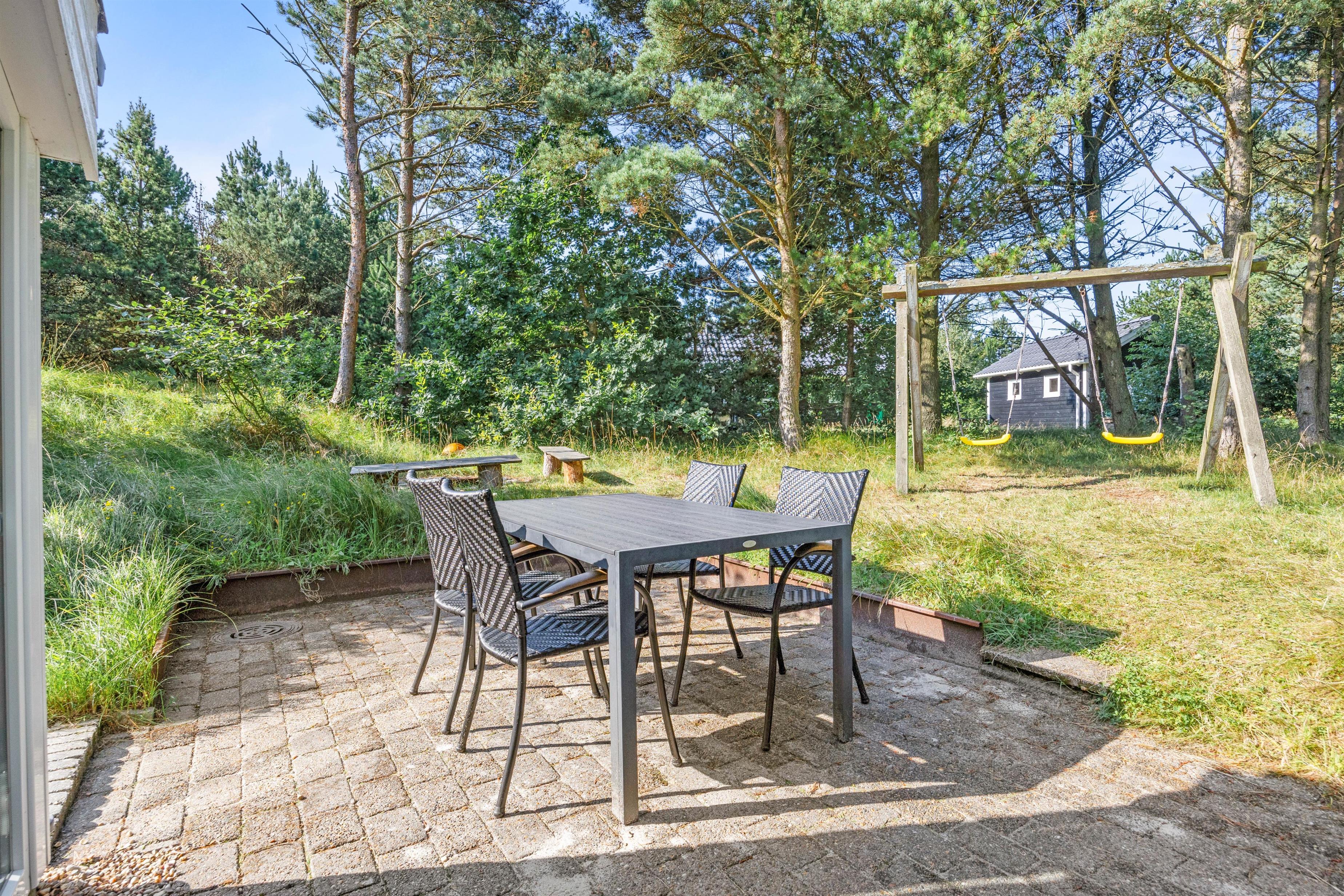 Trænger I til en stille og rolig dag uden udflugter og planer, ligger feriehjemmet på Guldvangen 60 helt perfekt. Beliggenheden for enden af en blind vej giver jer sammen med de høje træer masser af fred og ro til at nyde den friske luft og de varme solskinsdage på terrassen, mens børnene gynger eller leger i sandkassen.