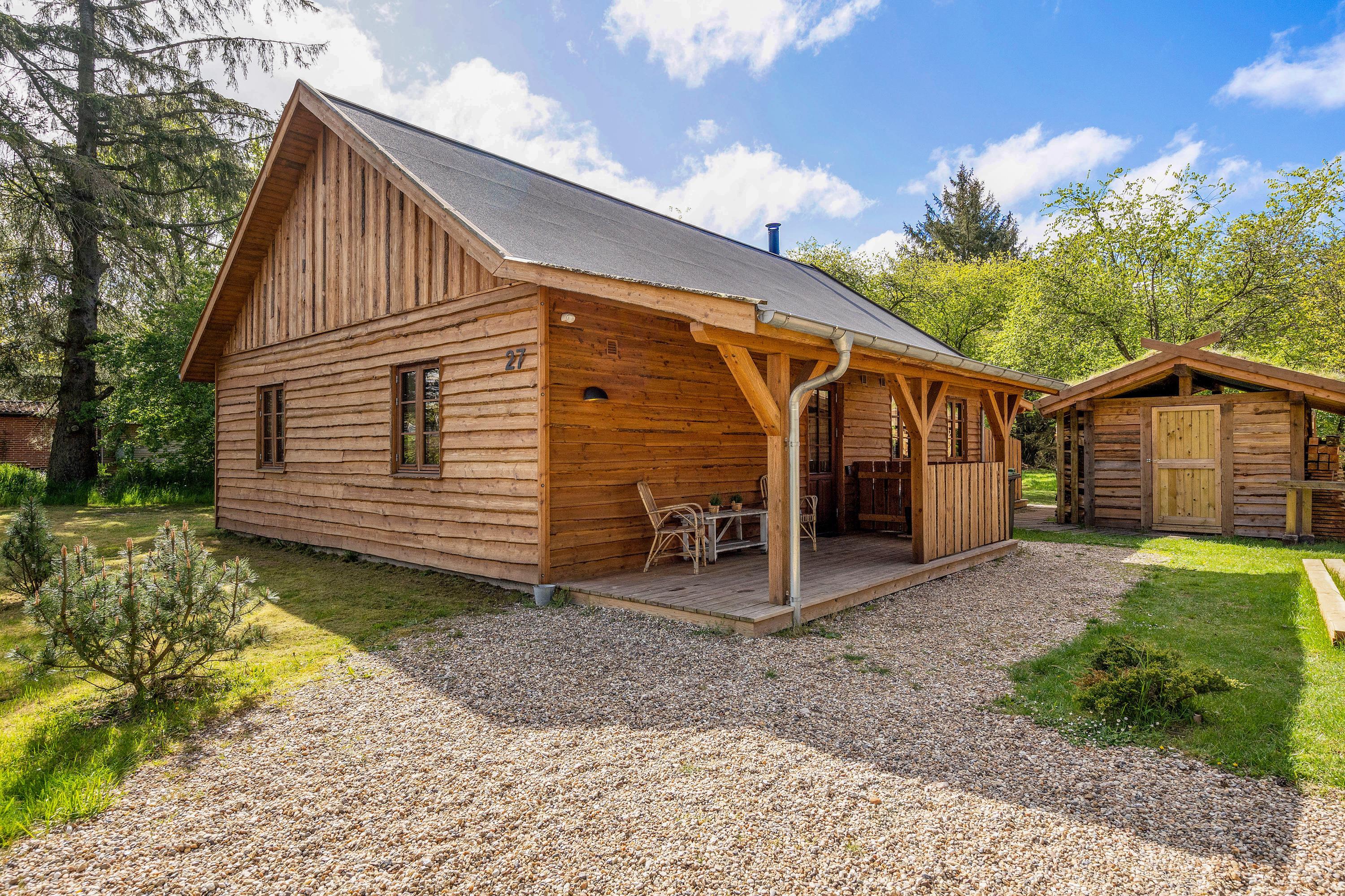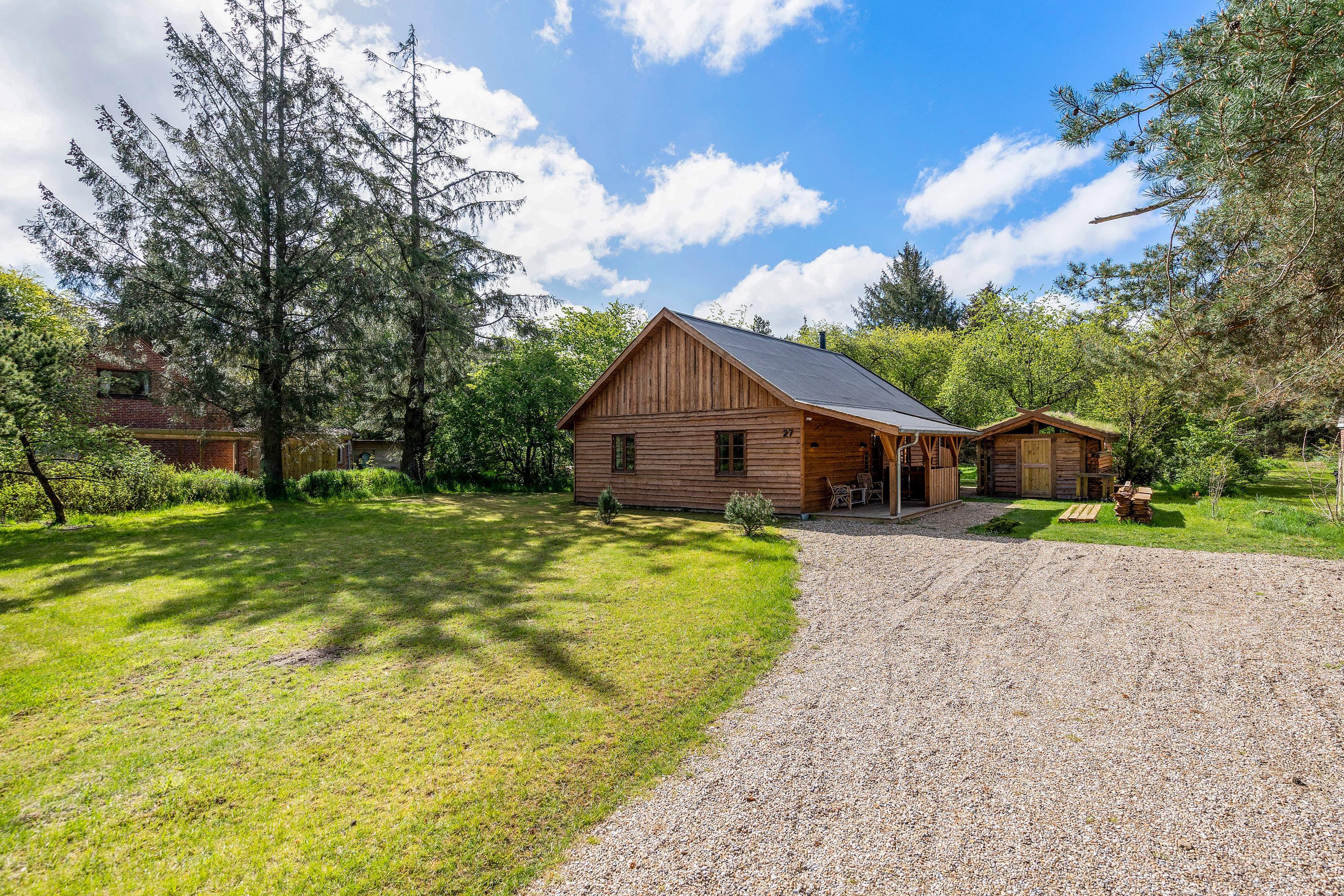 Velkommen på Skovvej 27 – en ferieadresse lidt ud over det sædvanlige. Her får I et unikt sommerhus med en rummelig atmosfære; højt til loftet og med en velafstemt indretning.