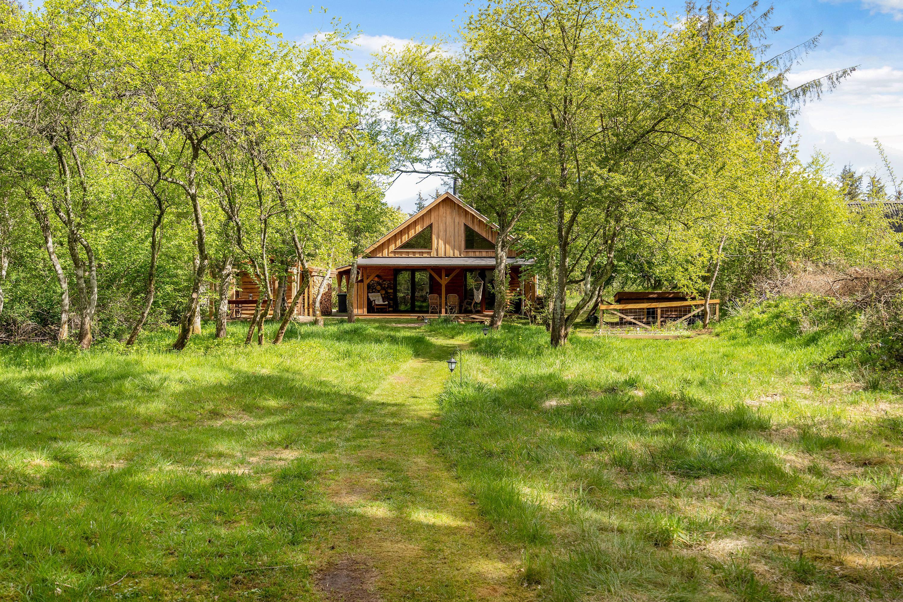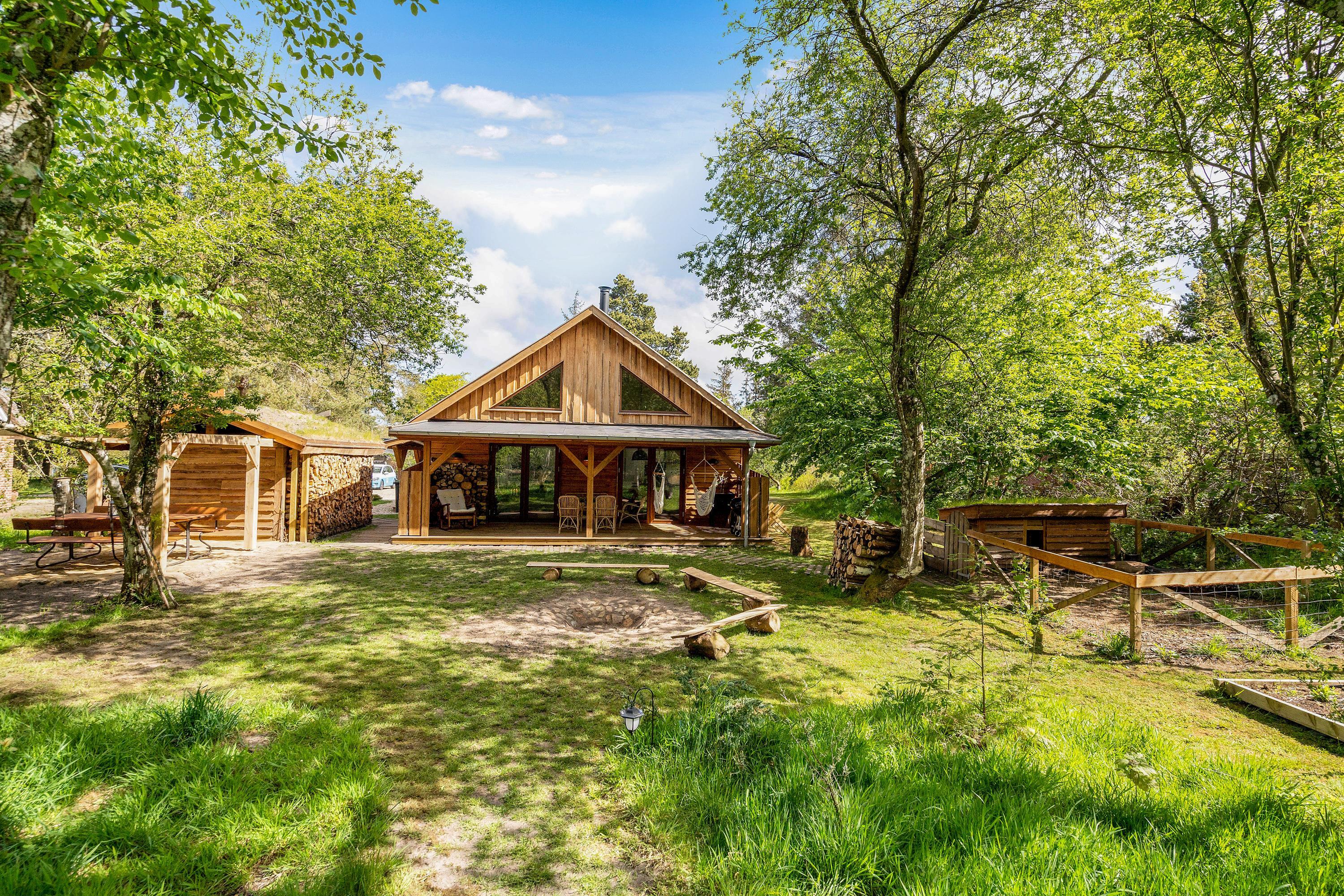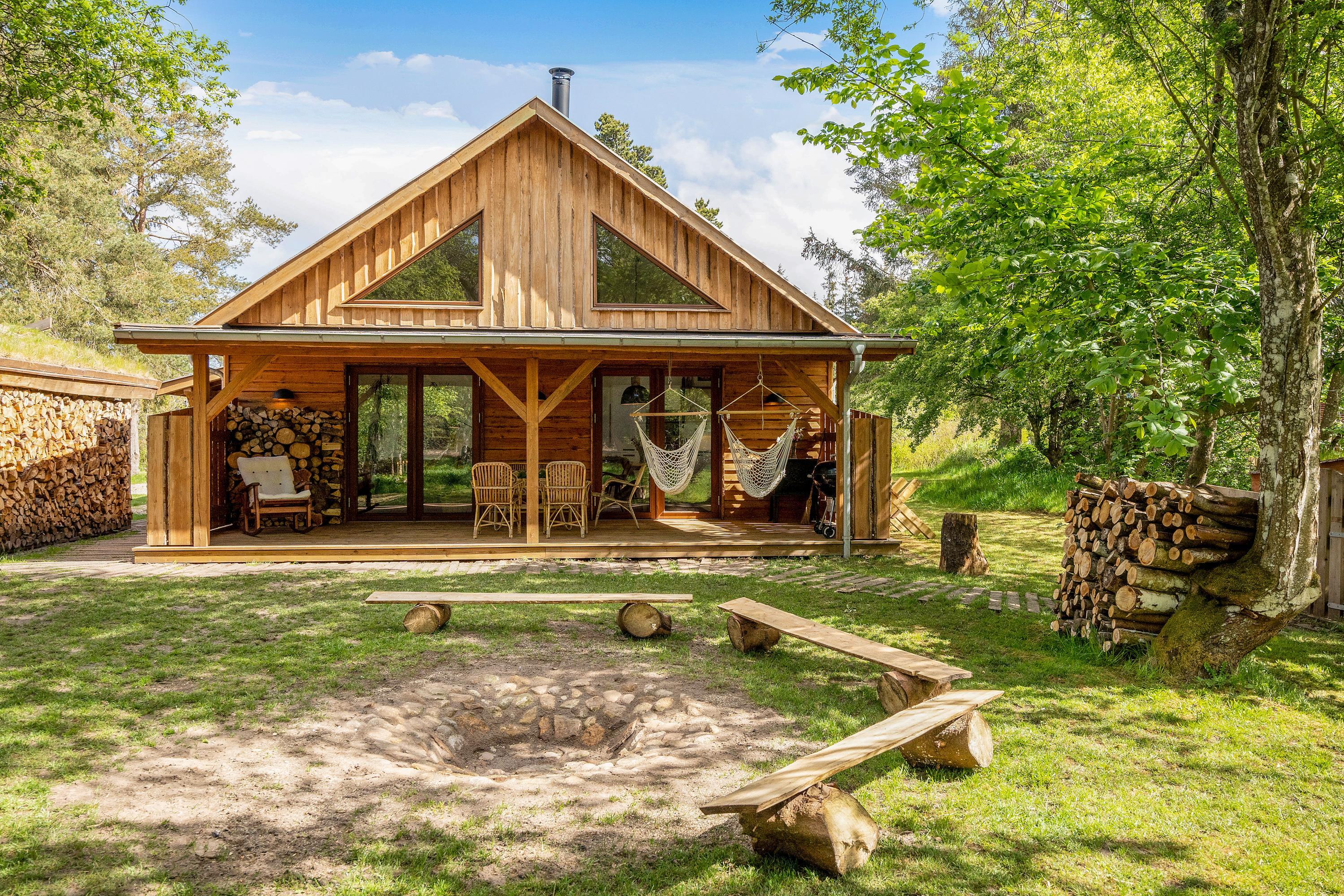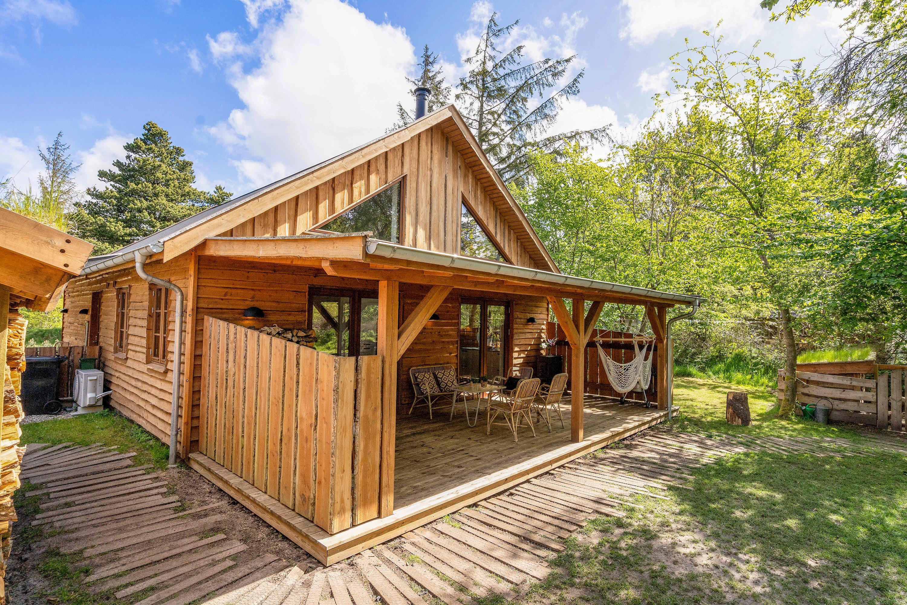 Trænger I til fred, ro og flot natur på den næste ferie? Så er dette unikke sommerhus i Houstrup bestemt værd at se nærmere på. Det rummelige træhus byder på plads til 5 personer og 2 hunde. Her kommer I til at bo midt ude i skoven, og I får ikke mindst et fantastisk uderum med skønne terrasser, egen bålplads og hundegård.