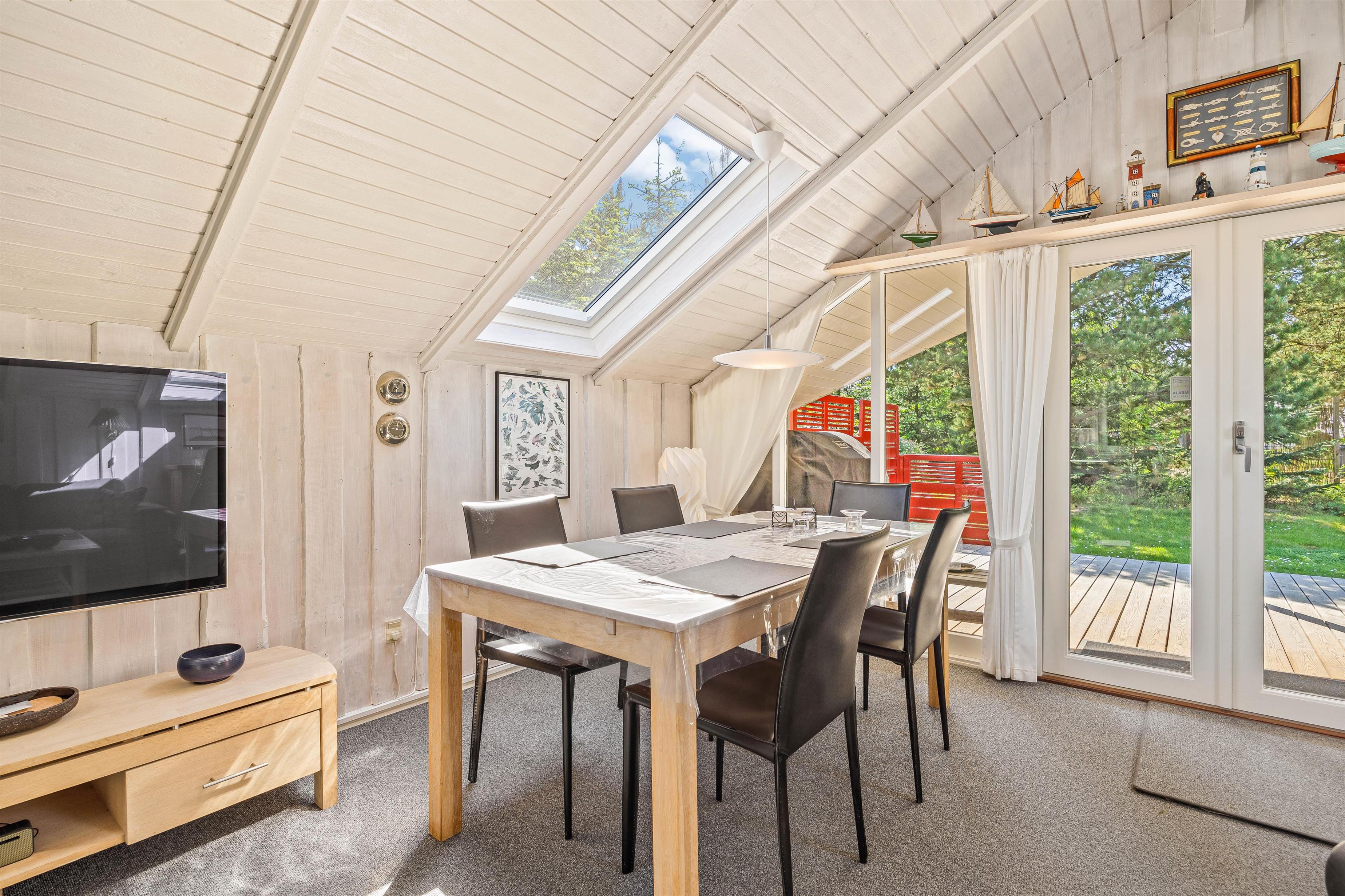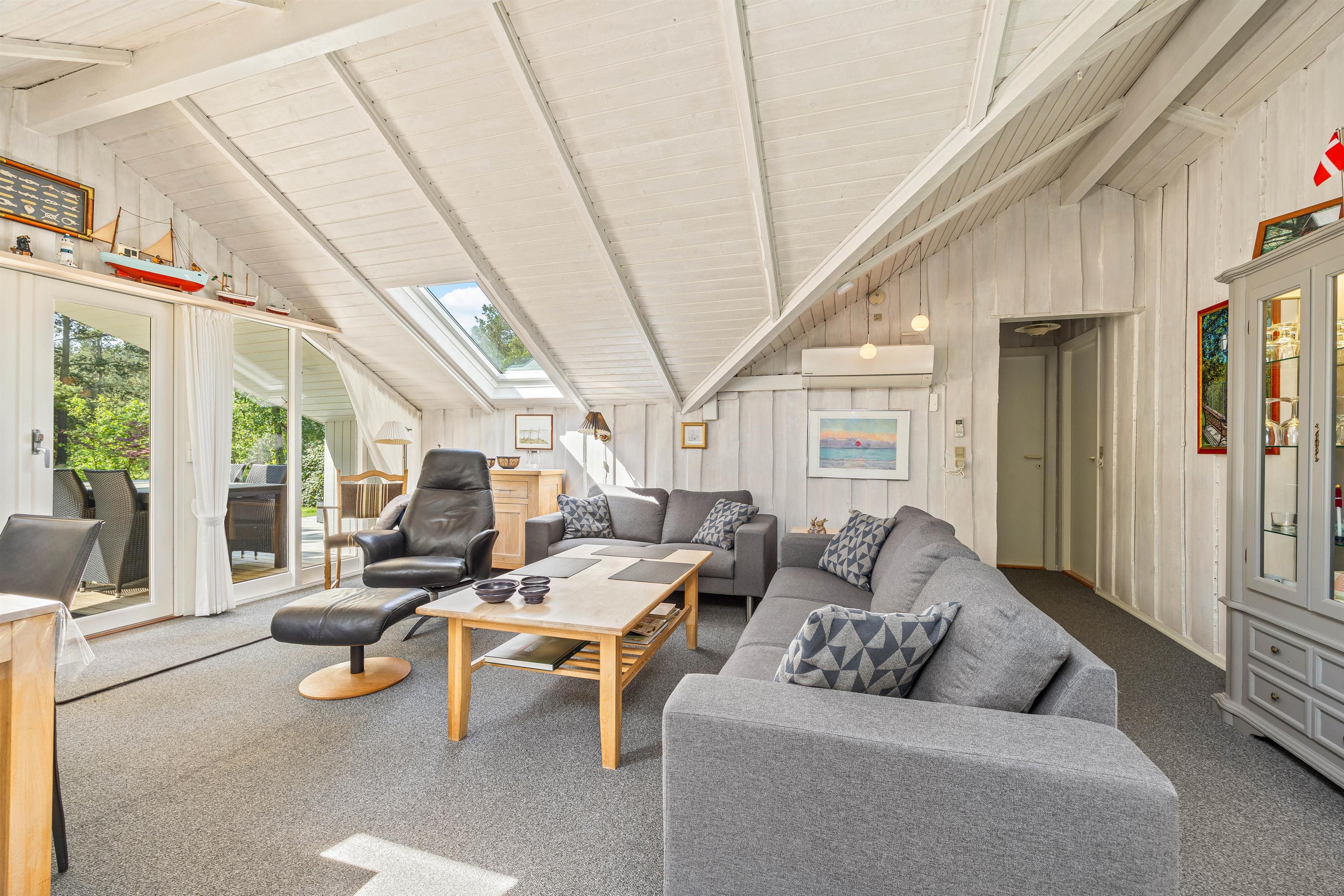 Sommerhuset, der blev bygget i 1984, har i 2018 gennemgået en stor renovering. Her er dejlig lyst, da alle vægge er med lyst eller hvidmalet træ. Opholdsrummet, hvor køkkenet er integreret, er feriehusets hjerte. Her kan I smide jer i sofaerne og streame jeres yndlingsserie direkte på fjernsynet via sommerhusets Chromecast, eller sætte jer ved spisebordet og planlægge ferieaktiviteter, mens duften fra køkkenet spreder sig.