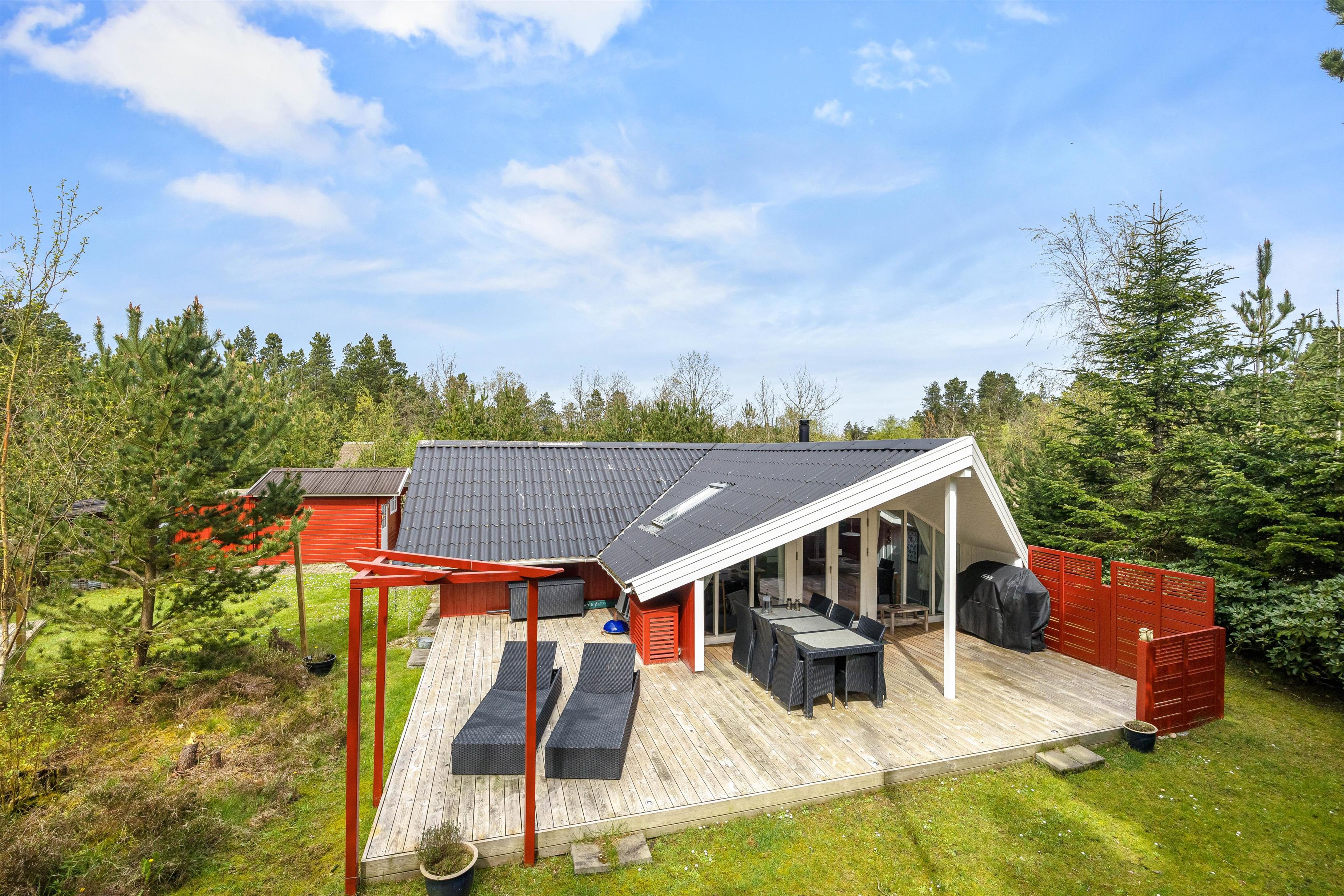 Fra stuen har I direkte adgang til den store træterrasse, hvor I har mulighed for både at sidde overdækket og under åben himmel. Her står der havemøbler, parasol, solvogne og grill til jeres rådighed, så I rigtig kan nyde en skøn eftermiddag i haven.