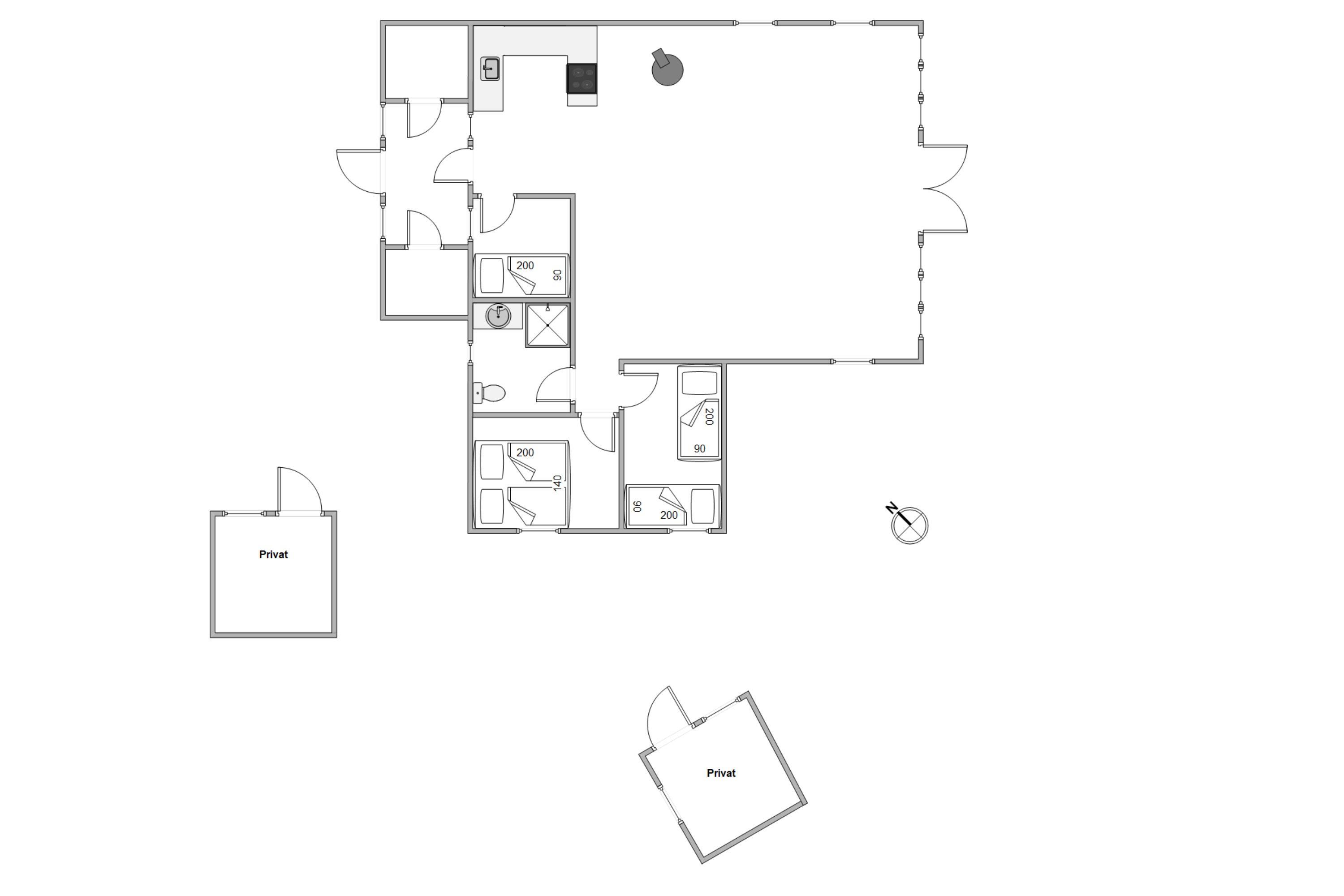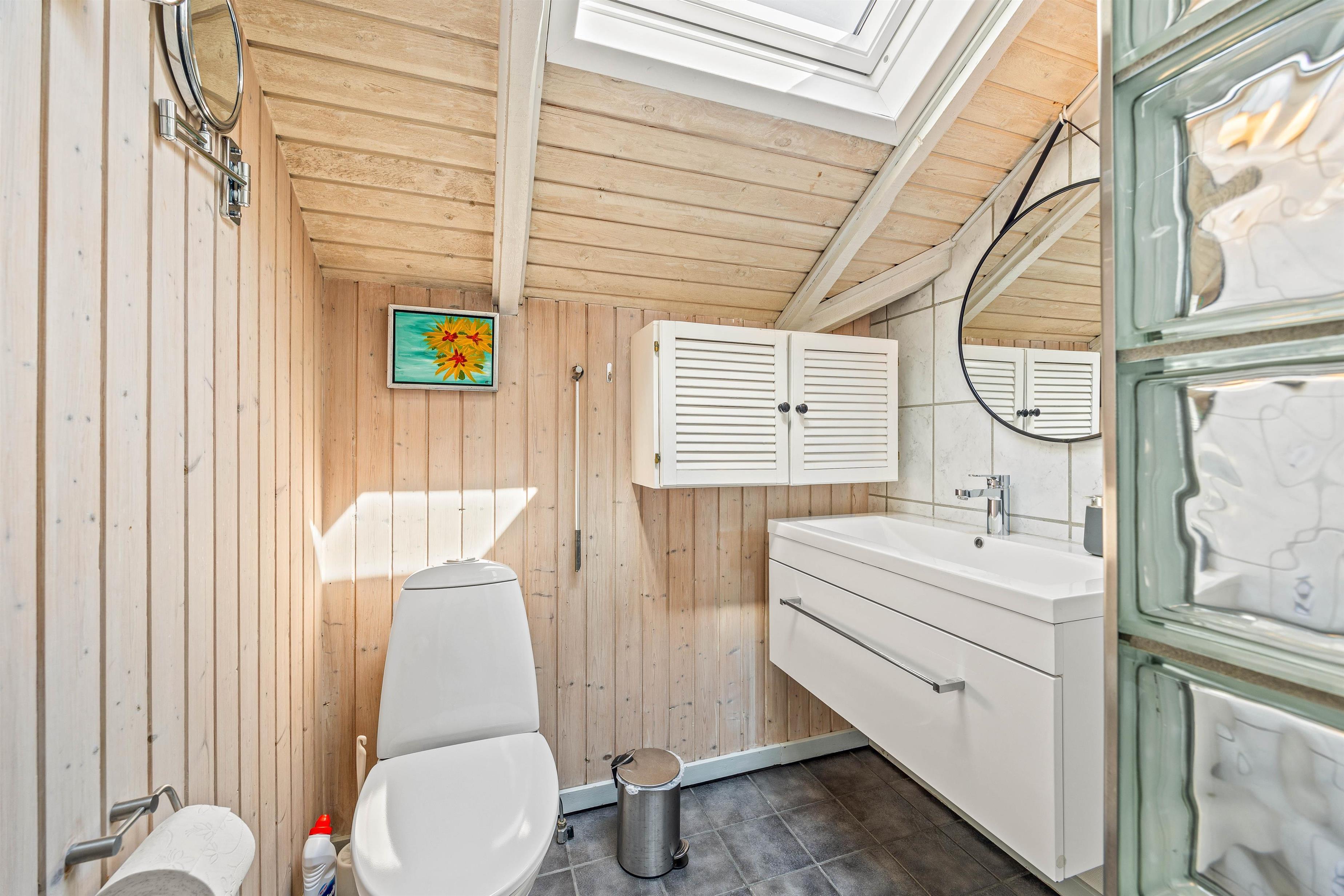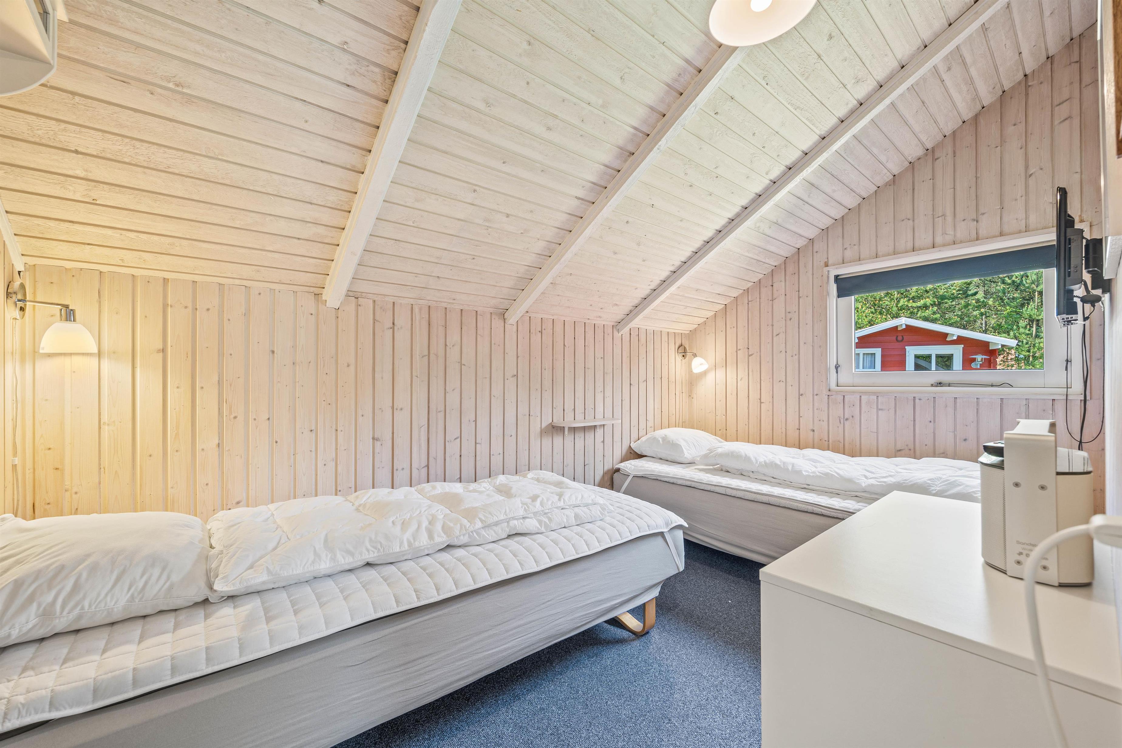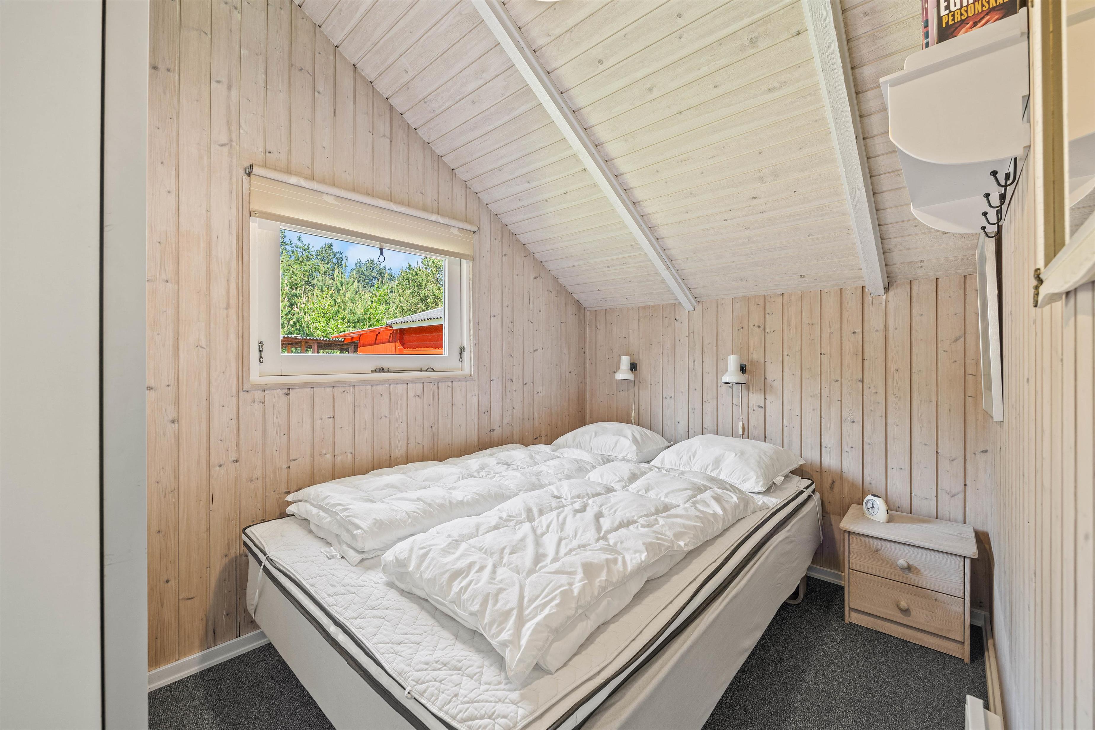 De 5 sovepladser fordeler sig på 3 værelser, hvoraf de ene er udstyret med dobbeltseng og de 2 andre soverum har 1 og 2 enkeltsenge. Badeværelset ligger tæt ved soveværelserne og her er endda gulvvarme, så I ikke skal fryse tæerne.