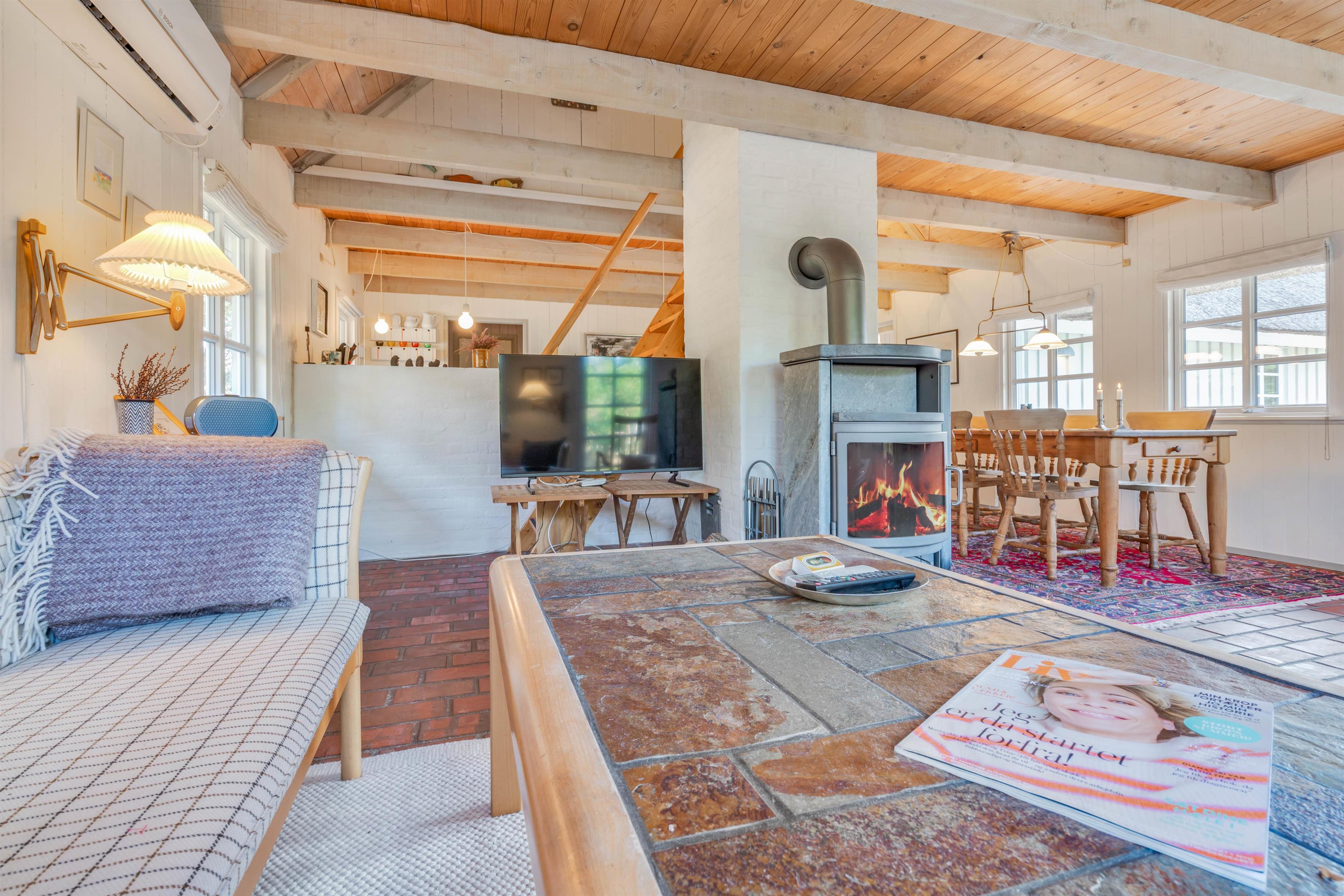 Her er der både vaskemaskine og opvaskemaskine der hjælper, så hverdagens pligter tager ikke lang tid. I stedet kan I bruge tiden med dem, I holder af. Når mørket falder på, kan I sætte jer til rette i sofaen og gøre brug af feriehusets chromecast, der gør det muligt for jer at følge med i jeres yndlingsserier, selvom I er langt hjemmefra.