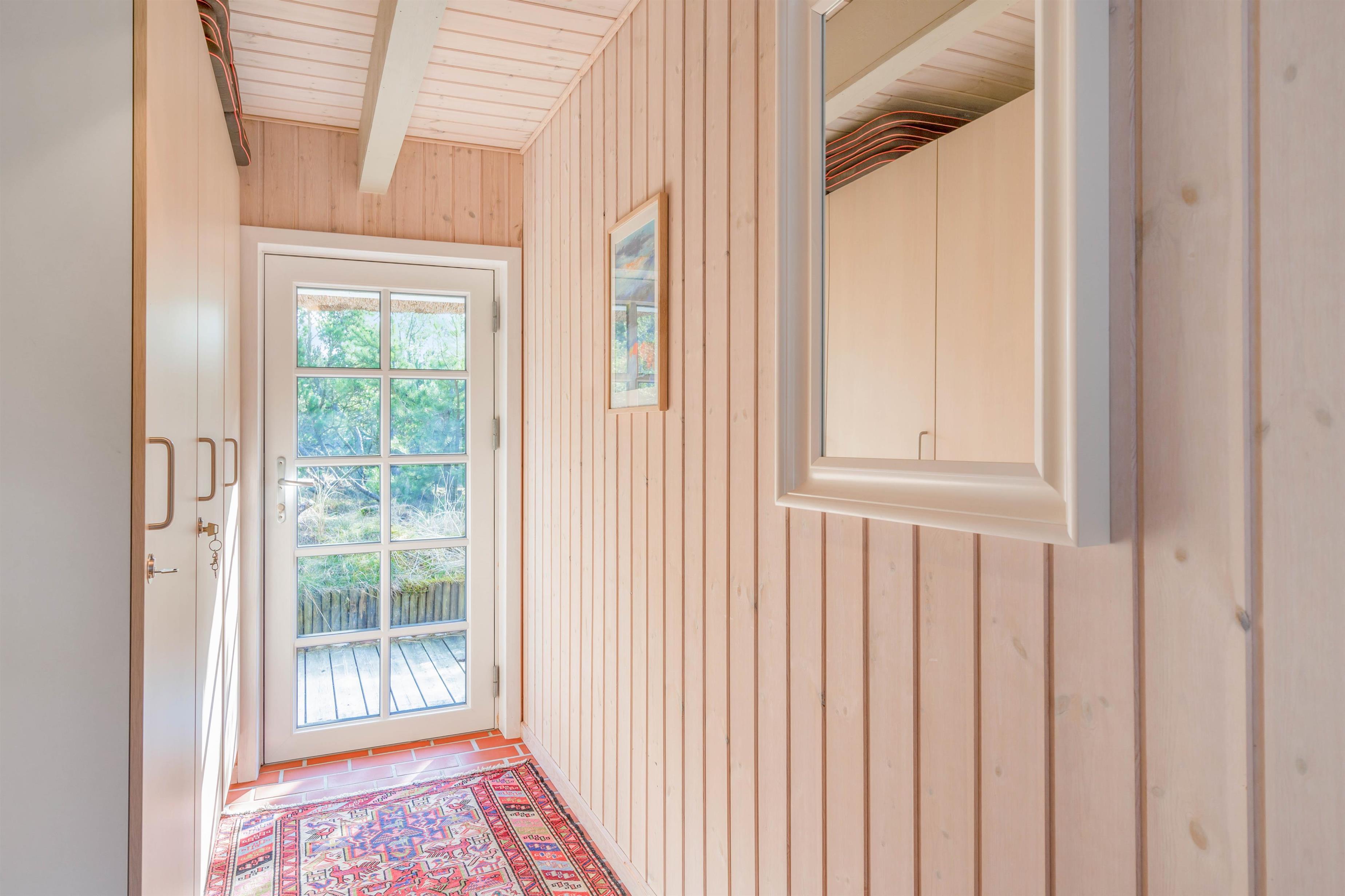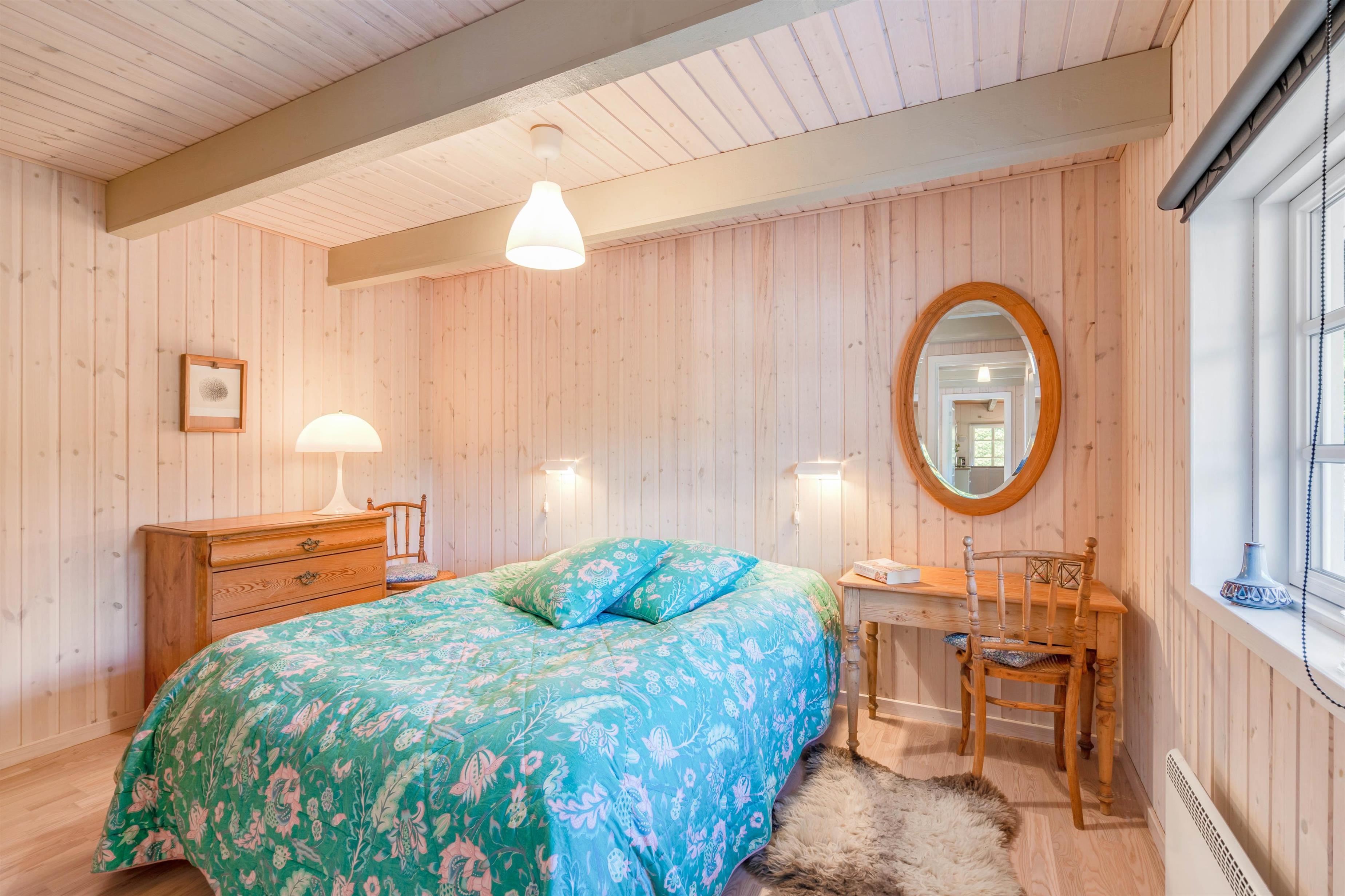 I sommerhuset finder I 8 sovepladser fordelt på 4 værelser, alle med dobbeltsenge. To af disse værelser er på førstesalen. Der er også to gode badeværelser med gulvvarme, så der ikke kommer ikke til at være kødannelse. Indretningen giver en rigtig god atmosfære, der emmer af dansk sommerhusferie med badehotel-stil.