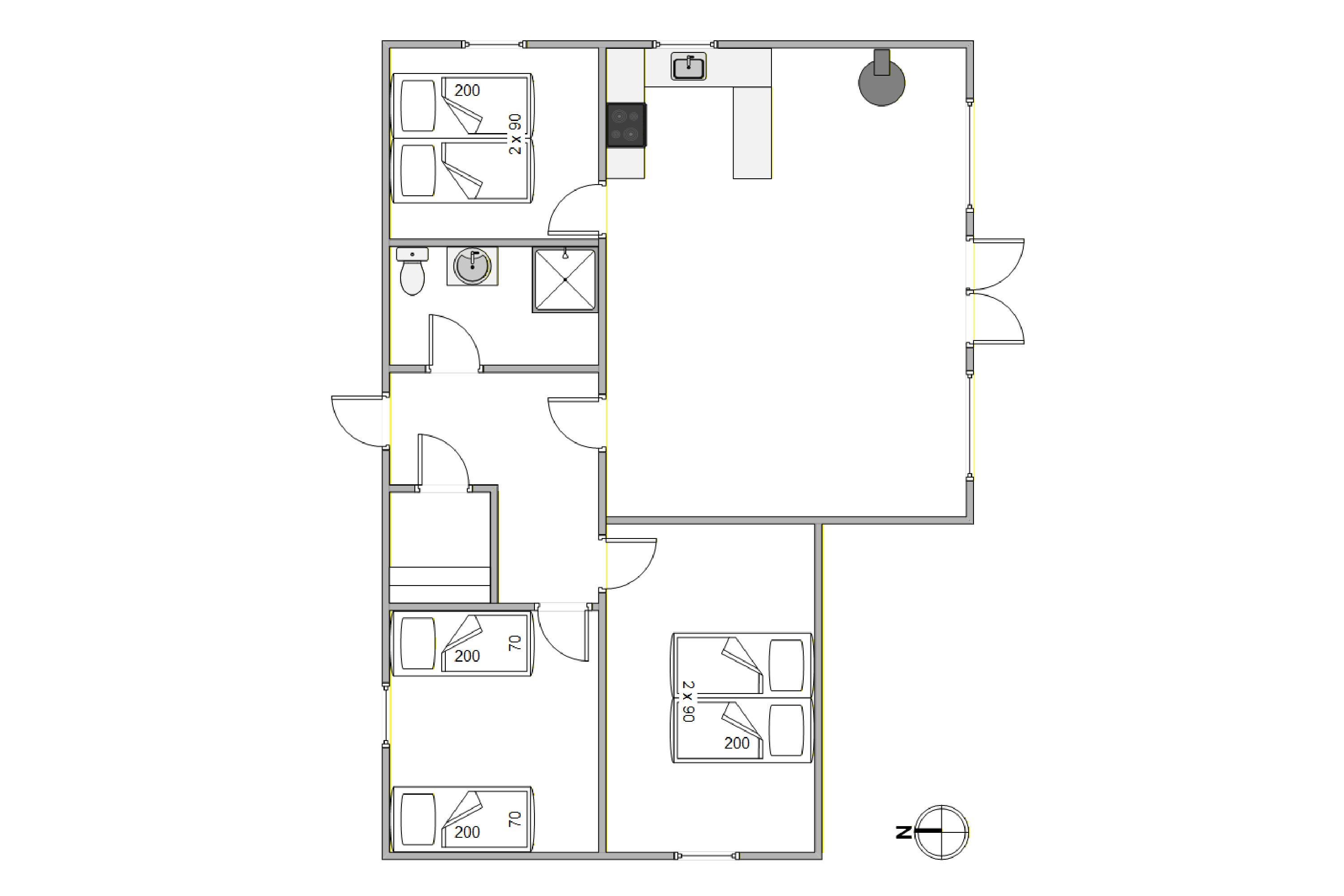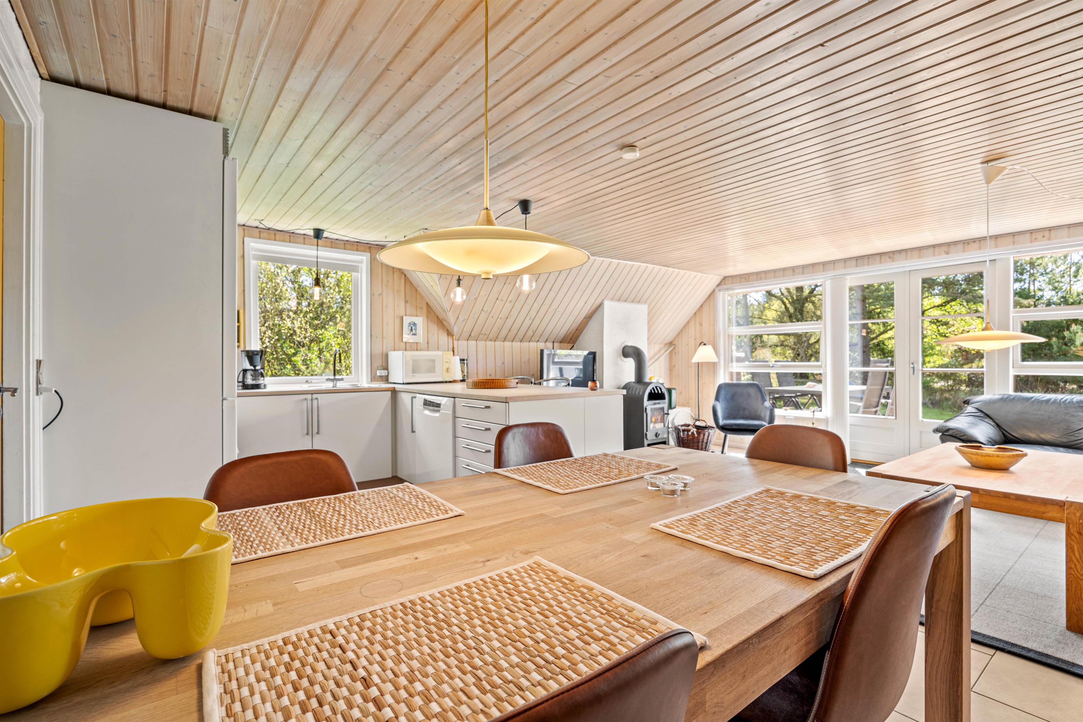 Sommerhuset byder på et velindrettet inde areal, hvor funktionalitet møder hygge. Her finder I 3 soveværelser med i alt 6 sovepladser, der sikrer jer en afslappende nattesøvn efter en dag fyldt med oplevelser. Køkkenet er udstyret med en effektiv opvaskemaskine, hvilket gør det let at rydde op efter måltider. Der er også en vaskemaskine tilgængelig, så I kan holde tøjet frisk og rent gennem hele ferien.