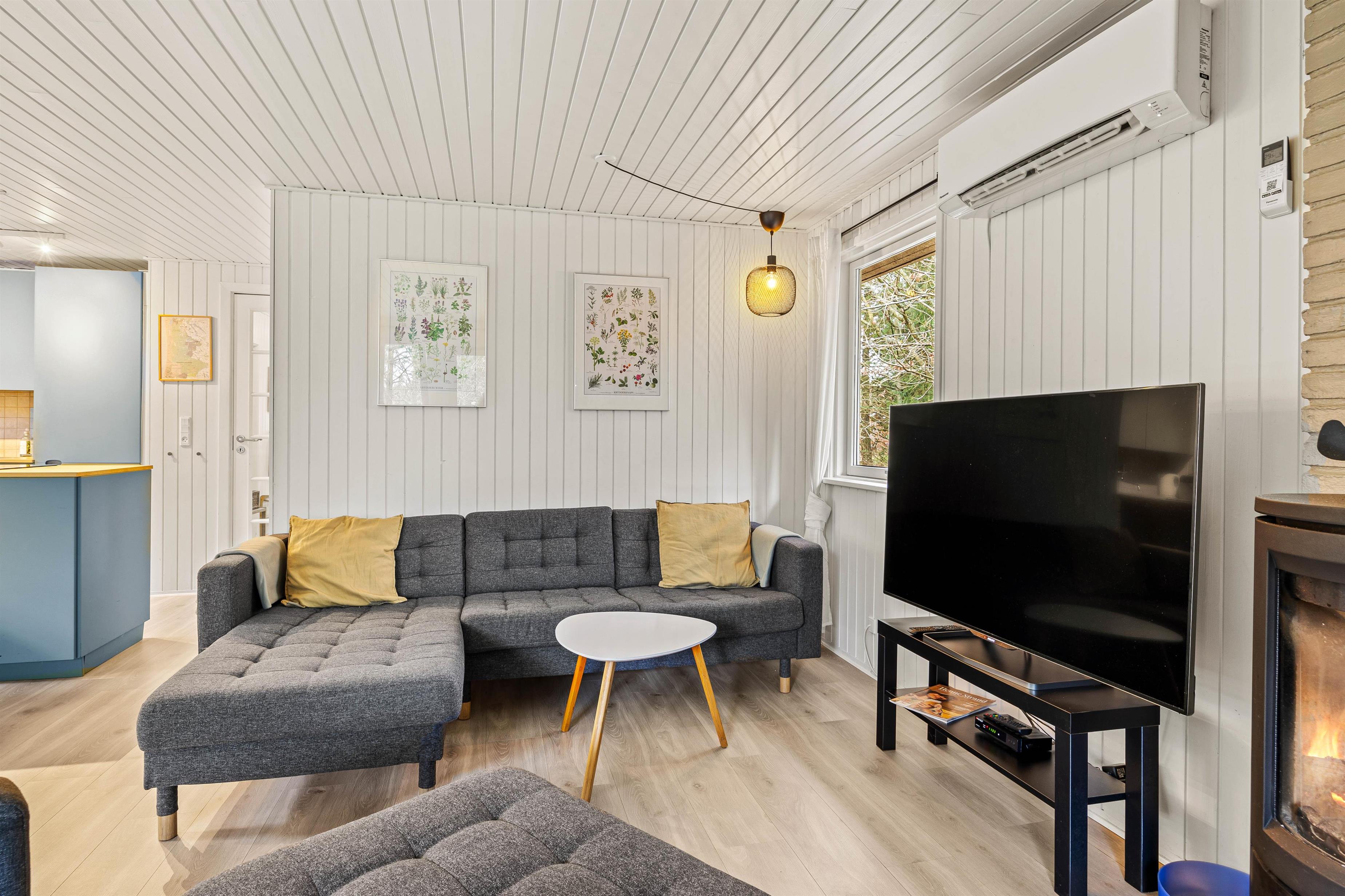 Det åbne køkken gør det muligt at holde øje med børnene, der nyder deres yndlingsfilm og serier via Chromecasten fra komforten af sofaen. I stuen skaber brændeovnen en skøn og klassisk sommerhusstemning, hvor varme og hygge går op i en højere enhed.