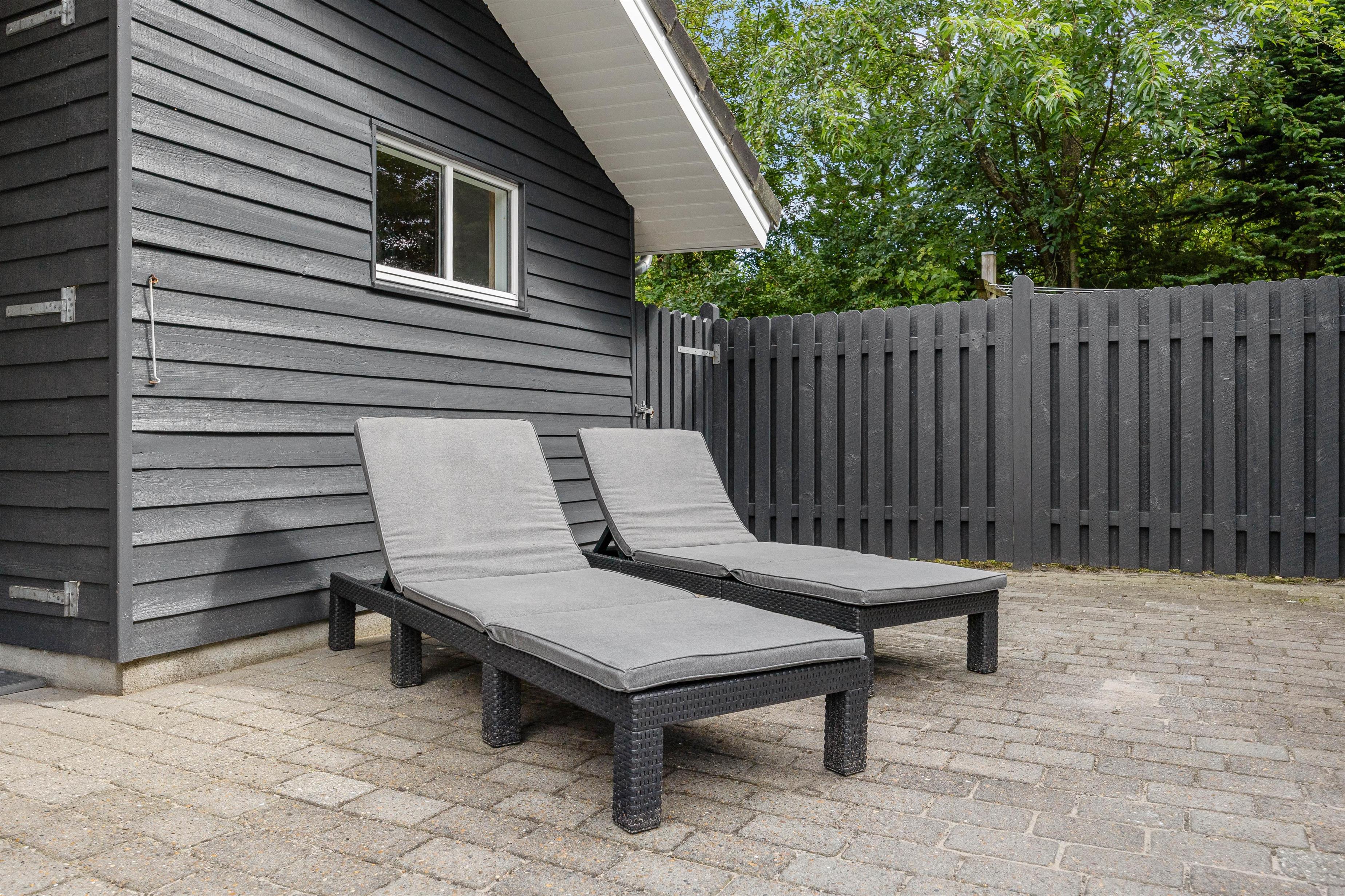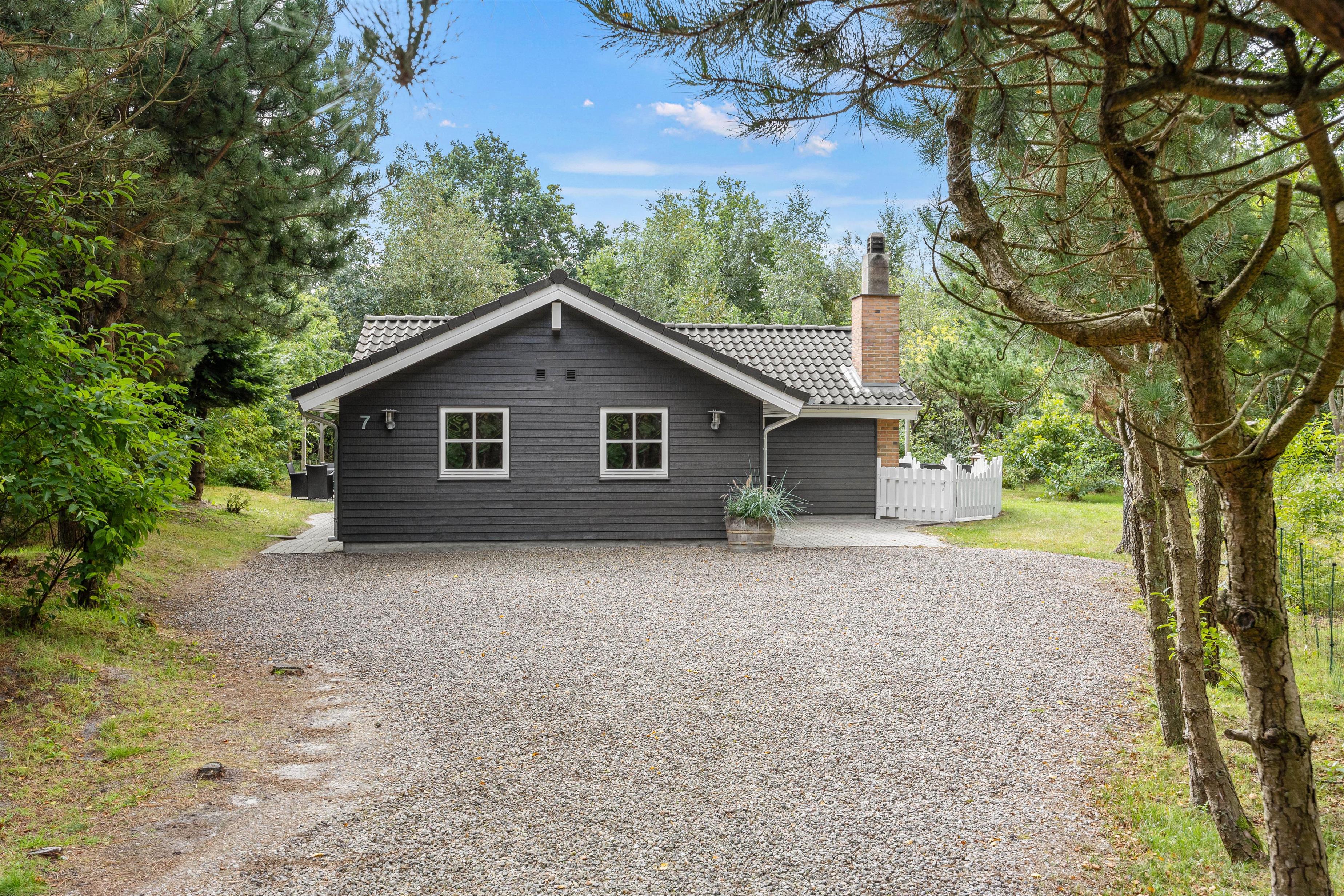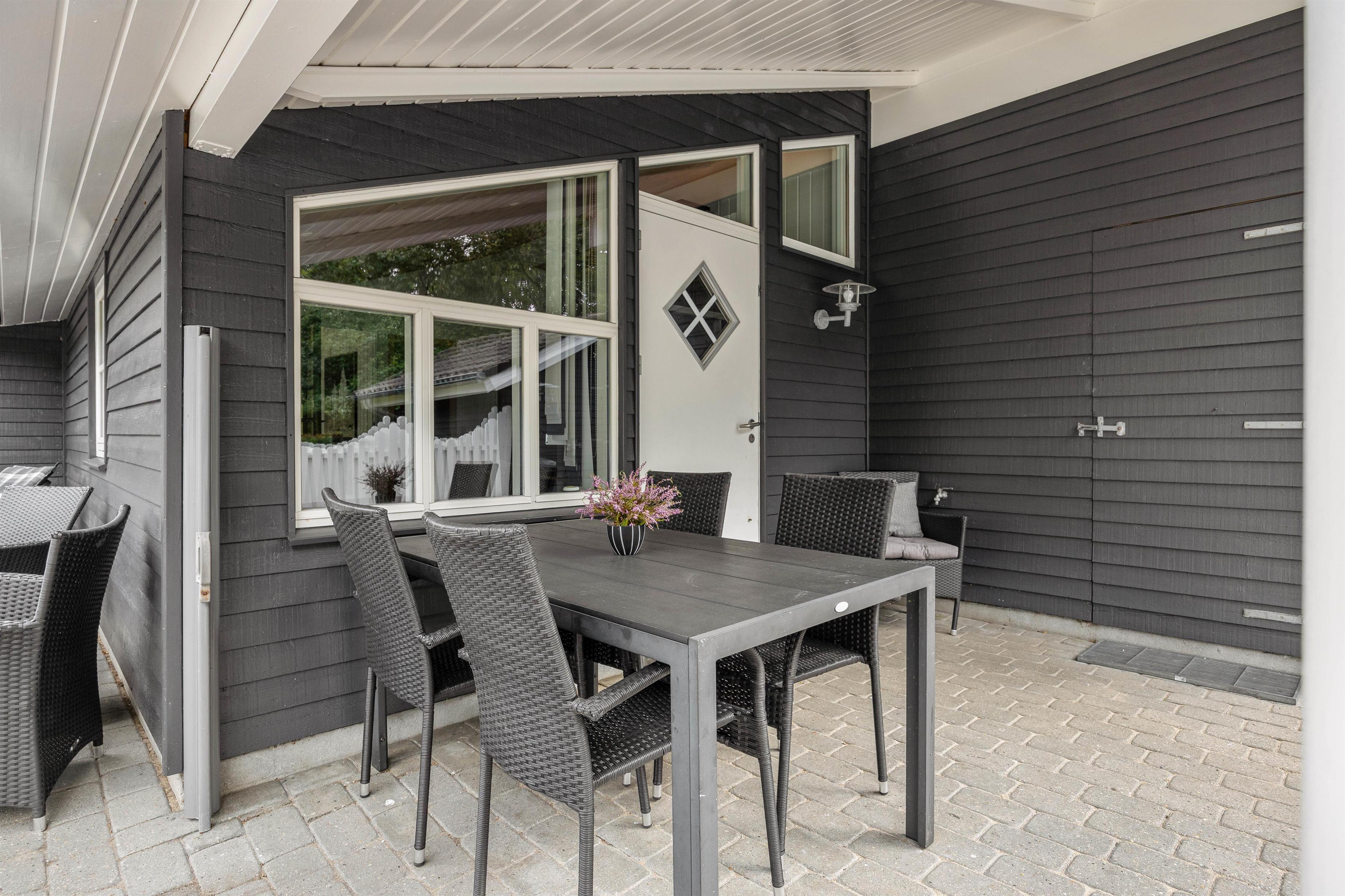 Ferieboligen er beliggende på en 1186 kvadratmeter skøn naturgrund, der er omgivet af træer og buske, hvilket indbyder til udendørs hygge og samvær. I direkte forbindelse med stuen kan I træde ud på sommerhusets lukkede terrasse, som er delvist overdækket. Her kan I lade jeres yngre børn og hunden boltre sig og lege i sikre omgivelser. Uanset om I ønsker en aften med grill og hygge eller blot afslapning tilbyder de udendørs omgivelser på Vestervang 7, det perfekte miljø.