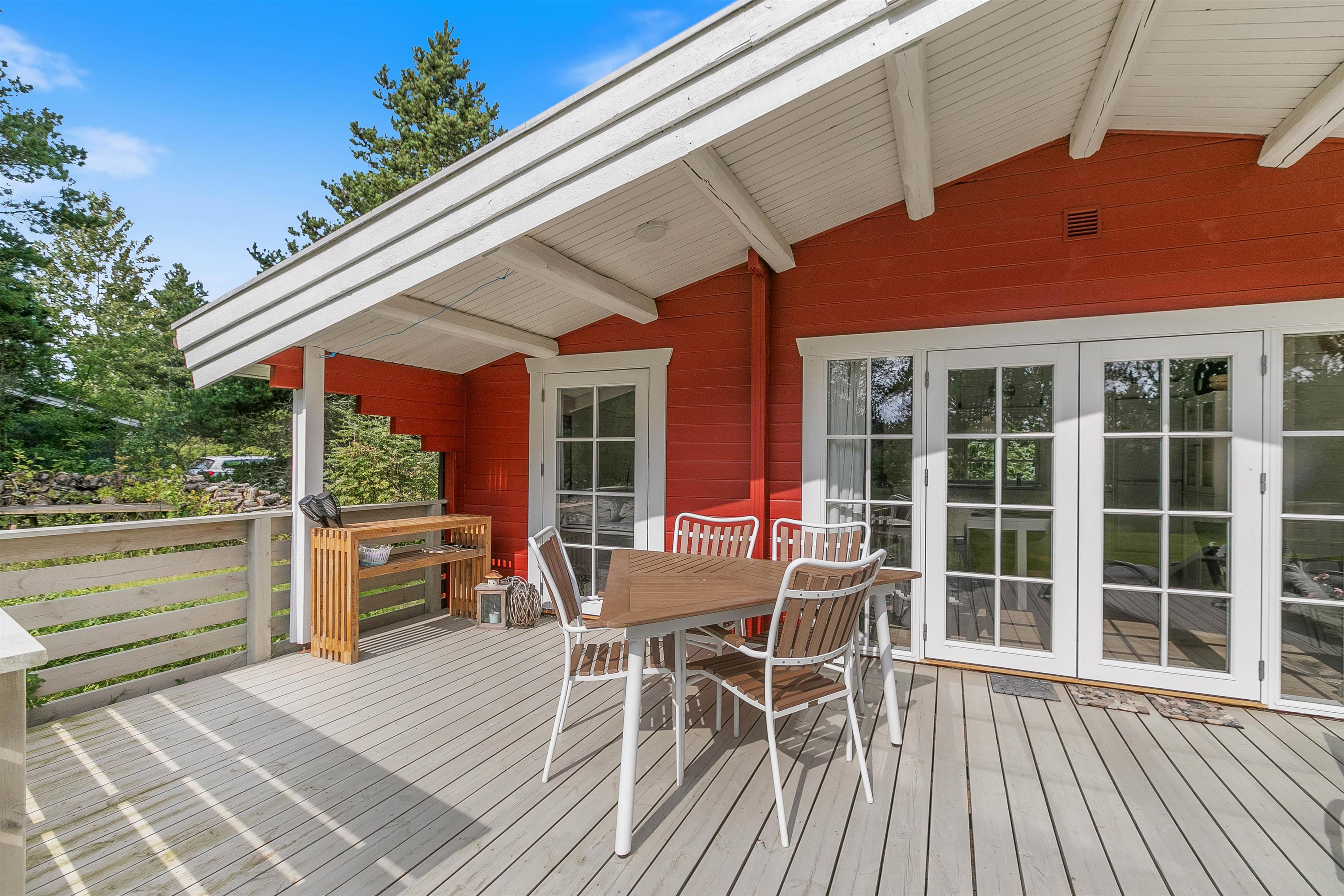 Fra stuen kan I træde ud på den delvist overdækkede og afskærmede terrasse, hvor I finder alt, der skal til for en aften med mad under åben himmel. Her er både grill og havemøbler, der skaber den perfekte ramme for en hyggelig aften med lækker mad. Der er også en kogeplade til udekøkkenet, så I kan tilberede måltider udendørs.