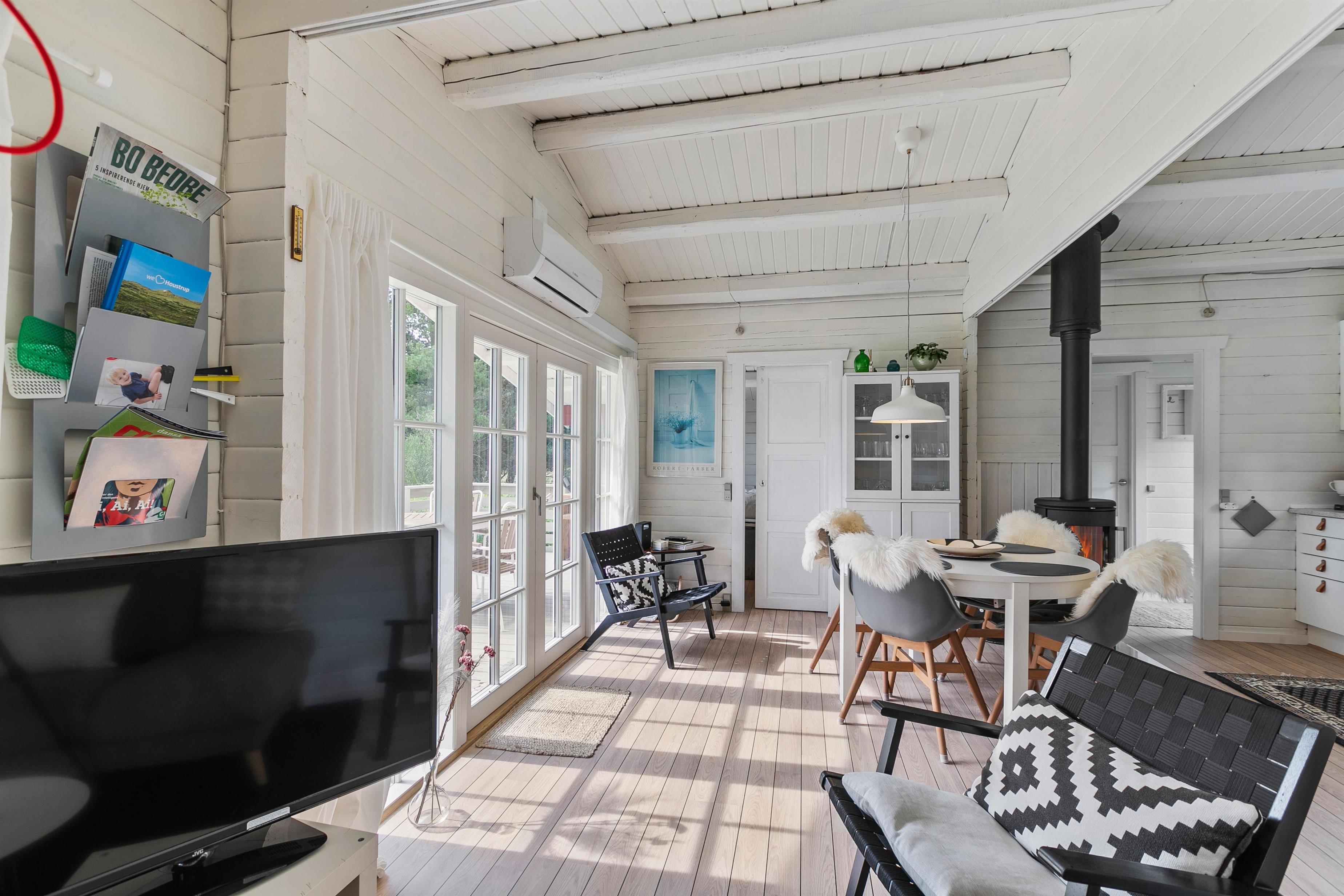 Sommerhuset er lyst indrettet med fokus på hygge og detalje. Den åbne planløsning mellem køkken og stue skaber et rummeligt og indbydende miljø. Køkkenet byder på diverse ekstra herligheder, herunder en airfryer, espressokaffemaskine, almindelig kaffemaskine og naturligvis en opvaskemaskine, så I kan nyde et bekvemt ophold uden at skulle bekymre jer om opvasken.