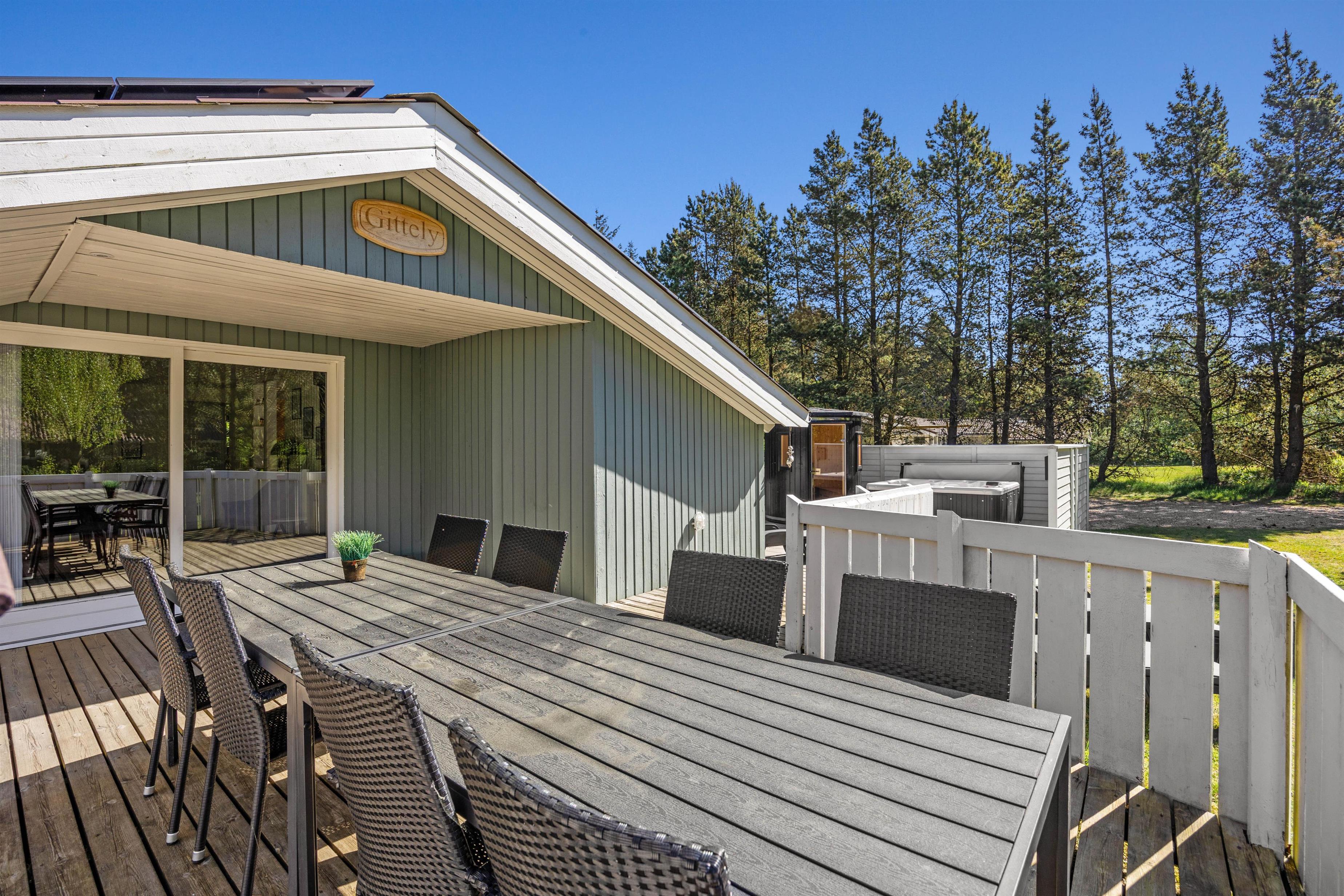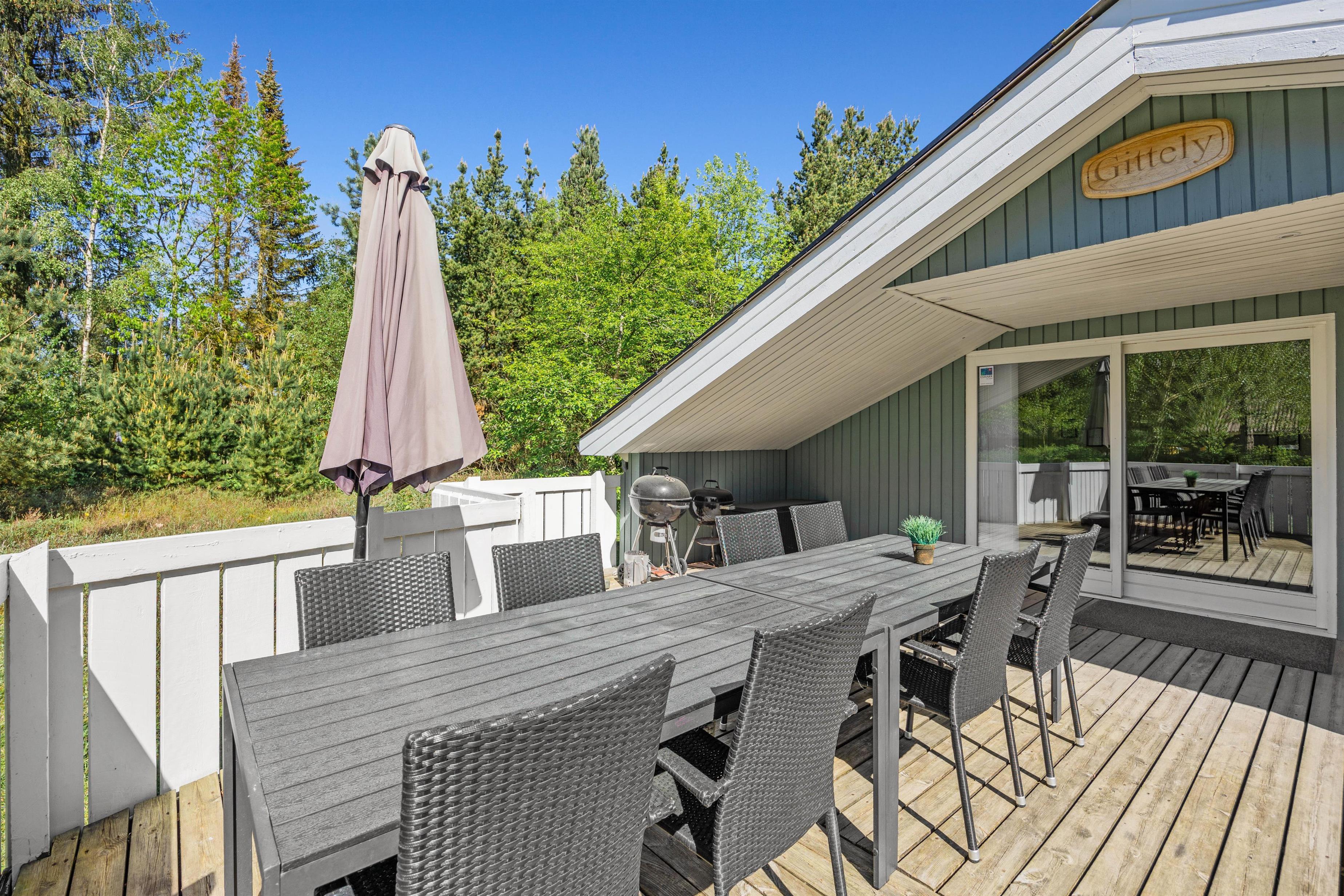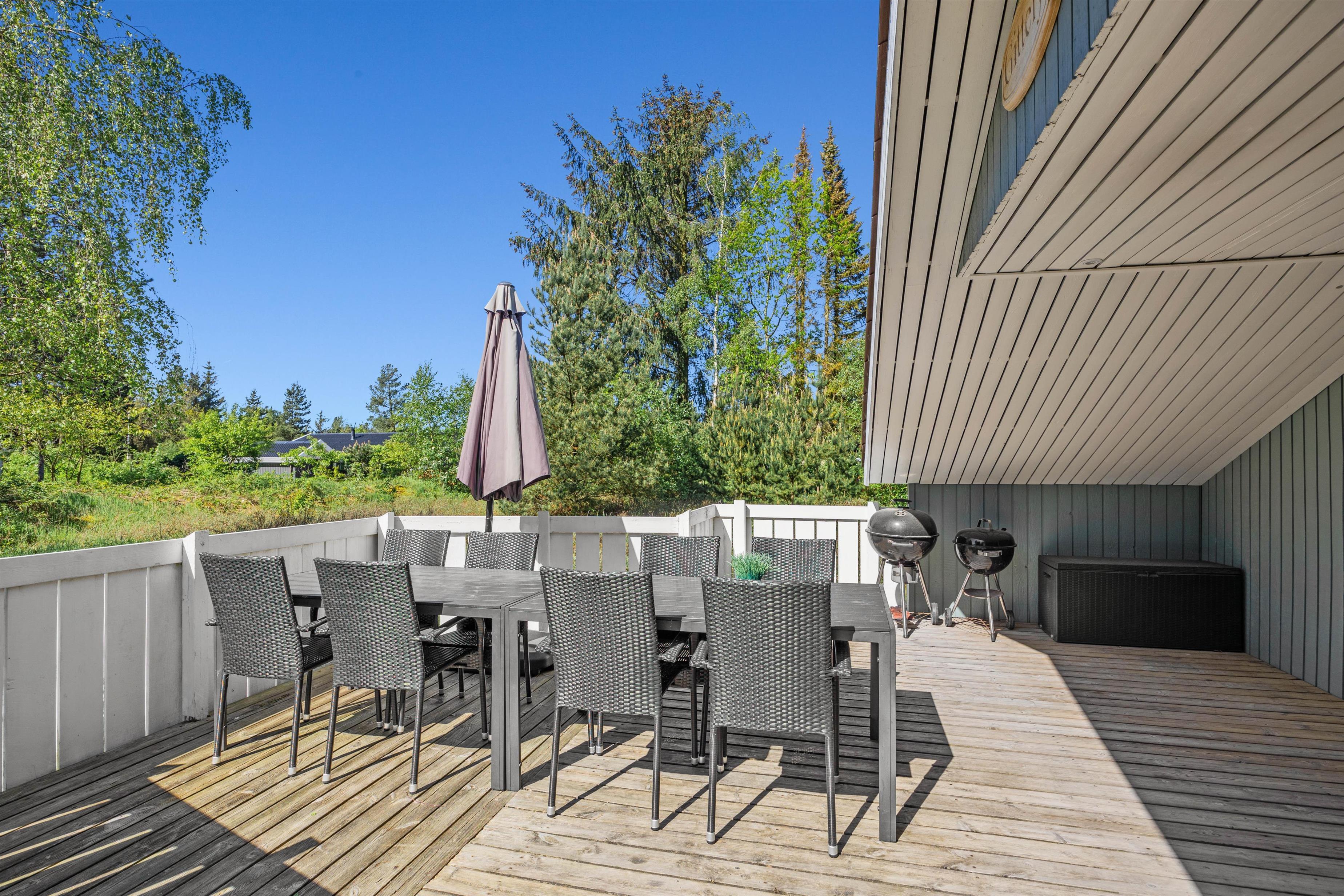 Mens børn og hunde giver den gas i haven, kan I finde havemøbler og liggestole frem på enten den åbne terrasse eller den afskærmede og overdækkede terrasse. Her kan I slappe af og nyde ferien udendørs, mens I samtidig kan holde øje med børnene og hundene i haven.