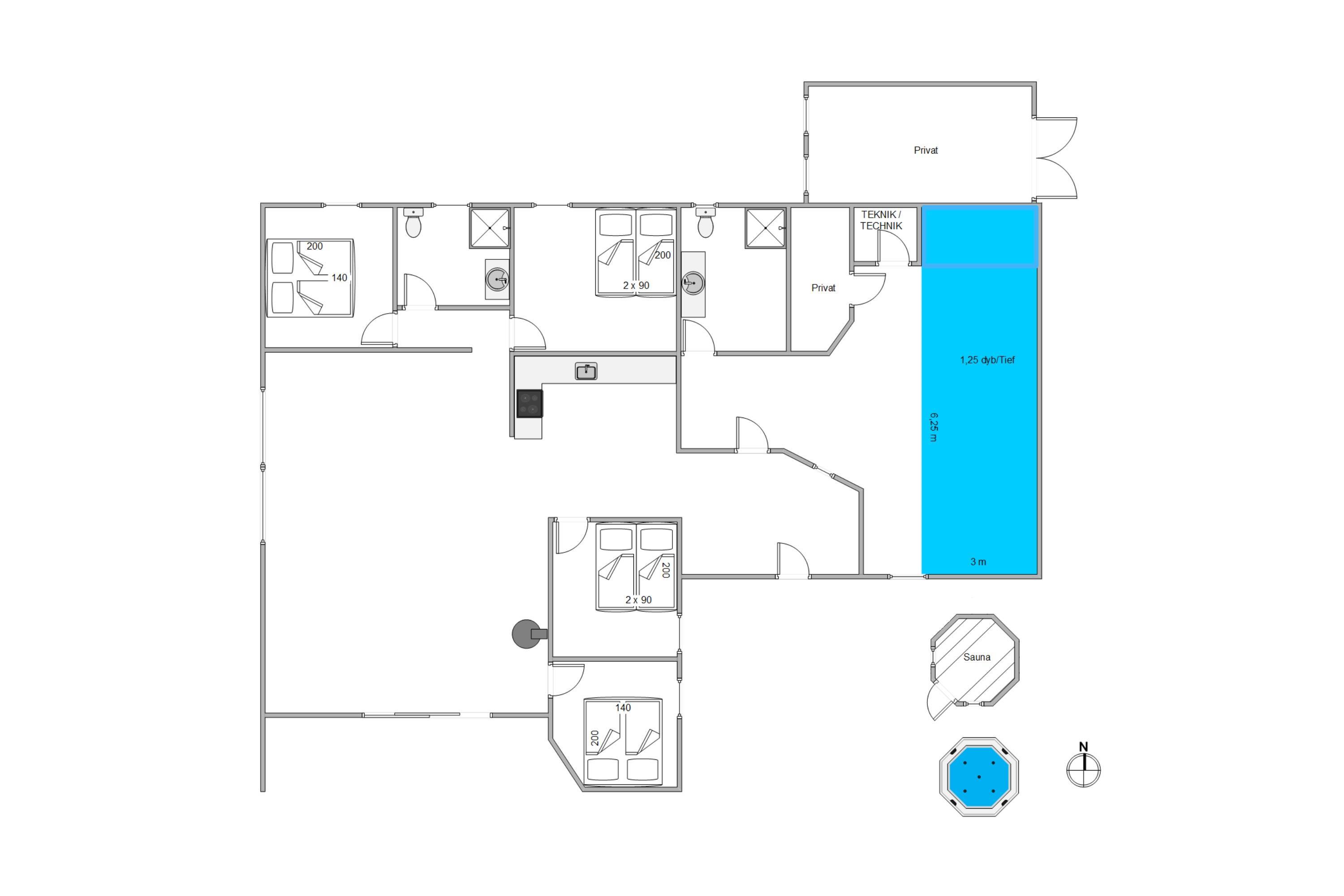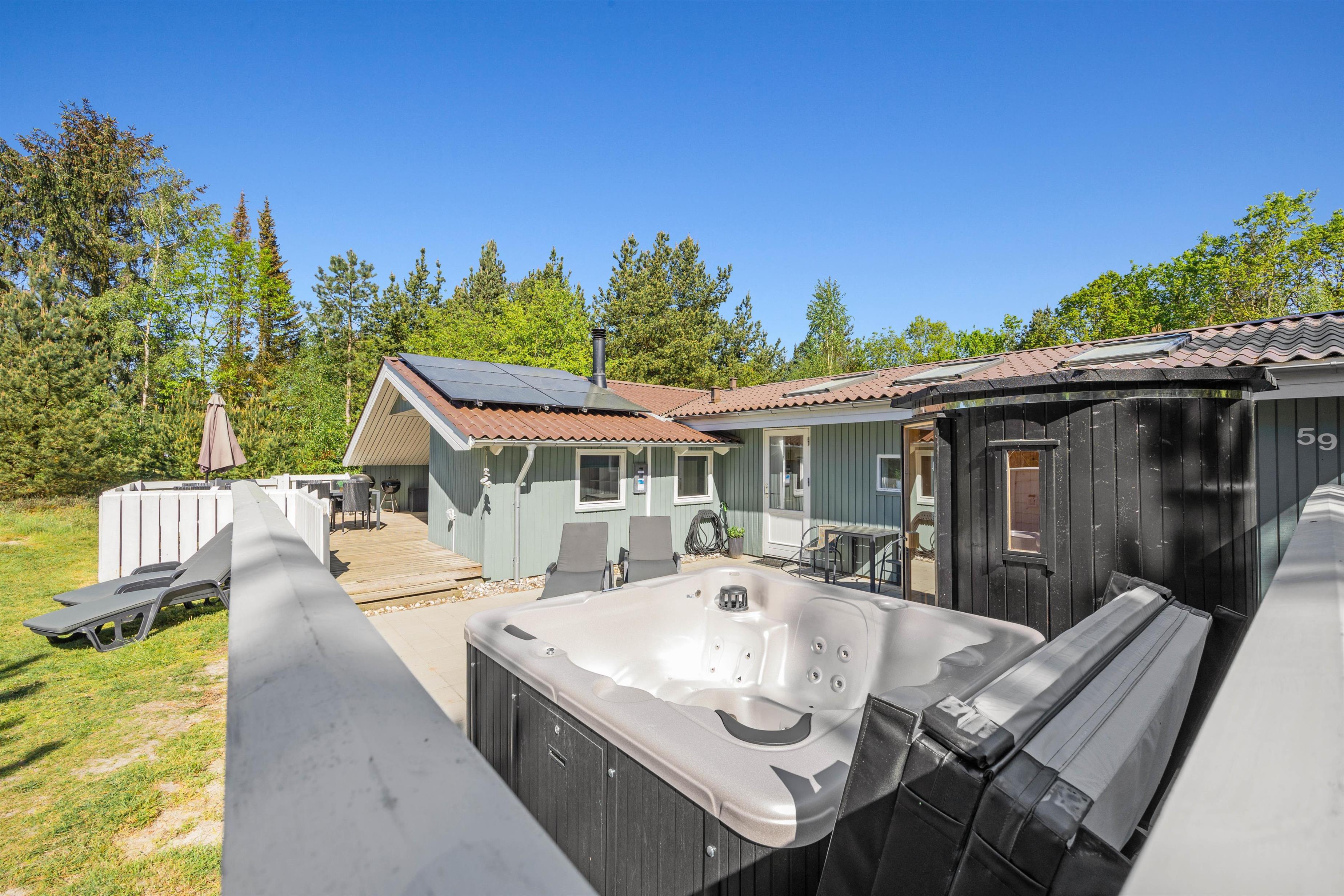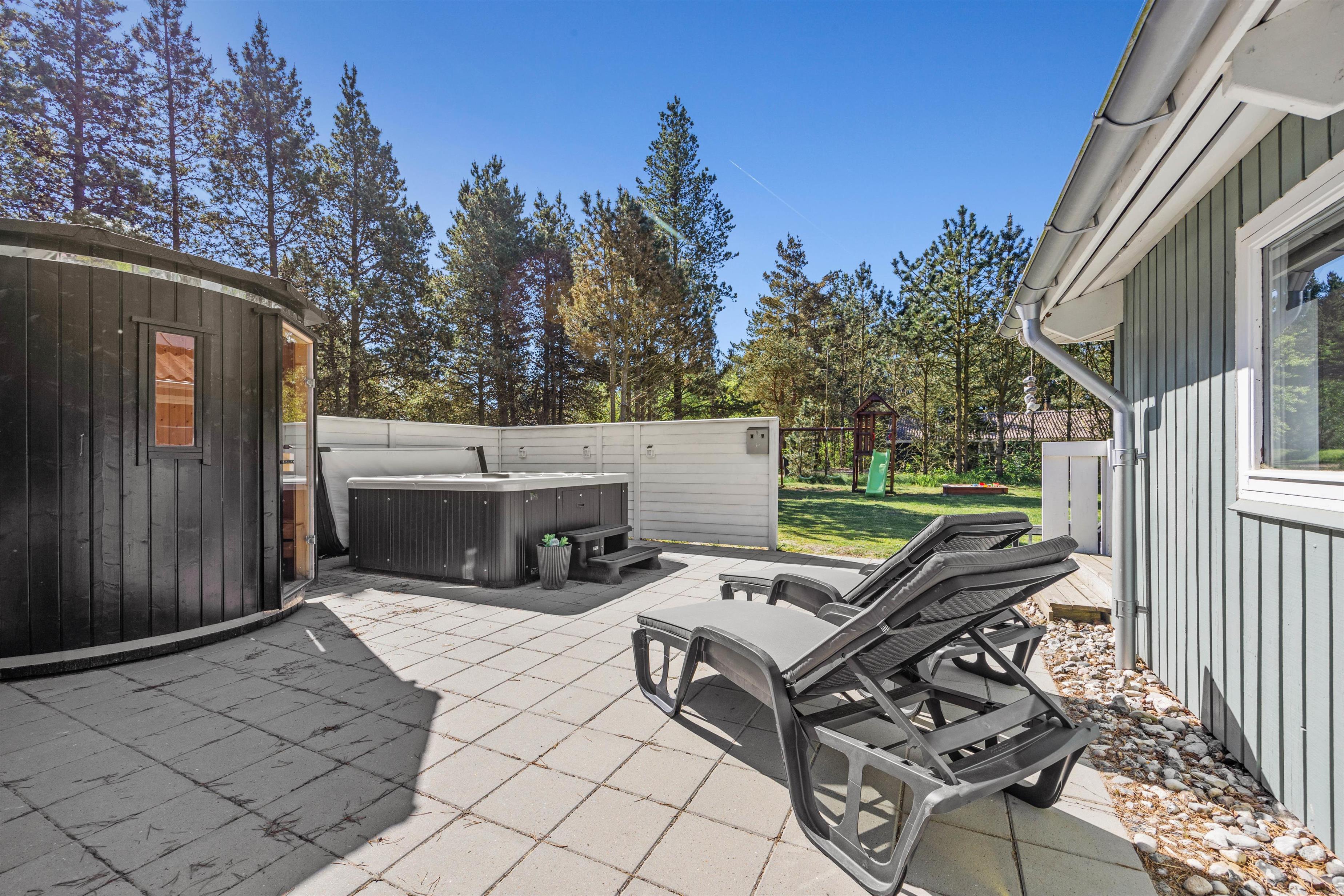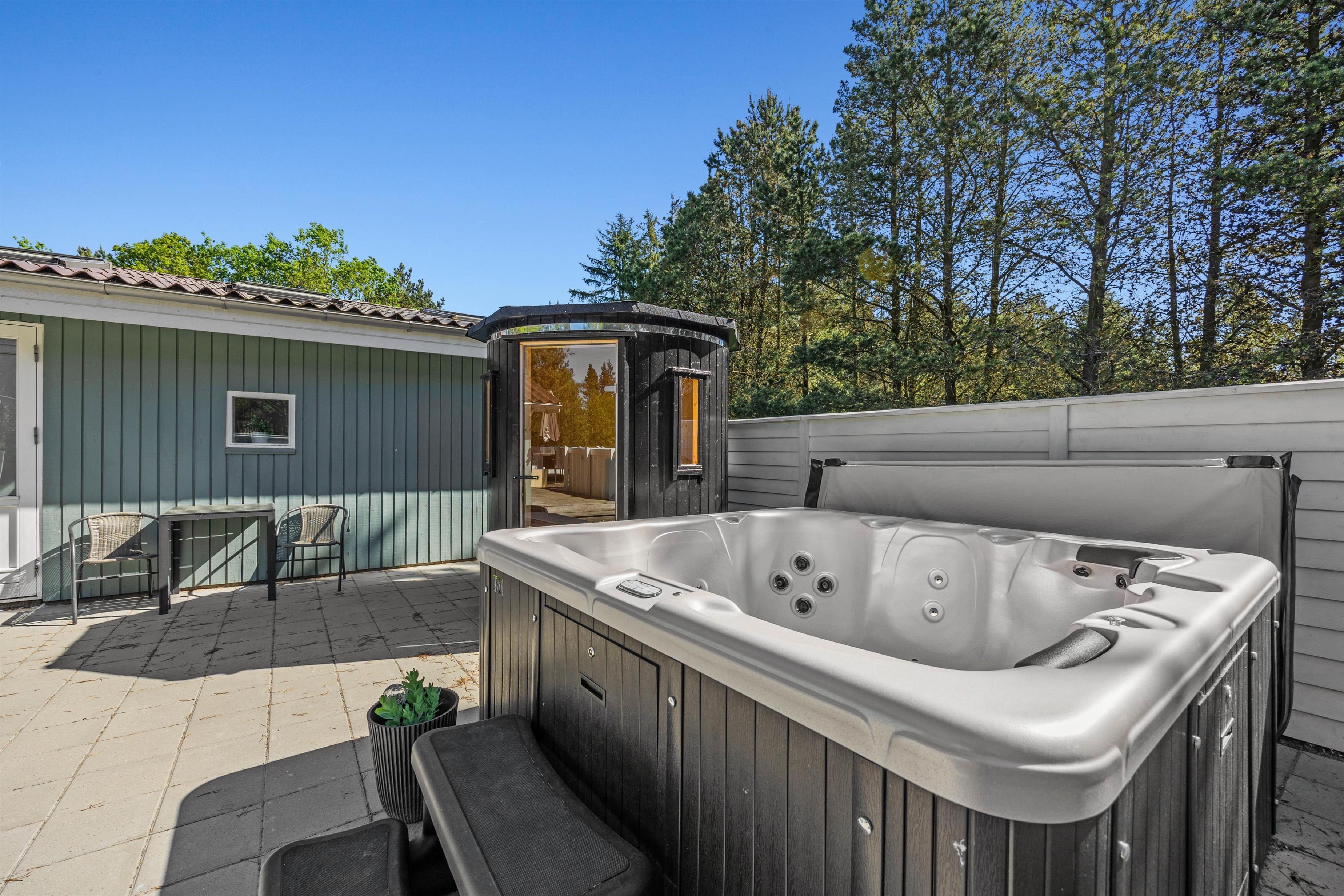 Sommerhusets helt store højdepunkter finder I i poolrummet. Her står en 21 kvadratmeter stor swimmingpool klar til jer, hvor I med garanti kommer til at tilbringe mange sjove timer sammen med masser af vandlege. Til dem, der ikke er de store vandhund og hellere vil slappe af, kan I læne jer tilbage i det lækre spabad, der er at finde udenfor. Udendørs er også en lækker sauna, hvor I rigtig kan blive varmet igennem.