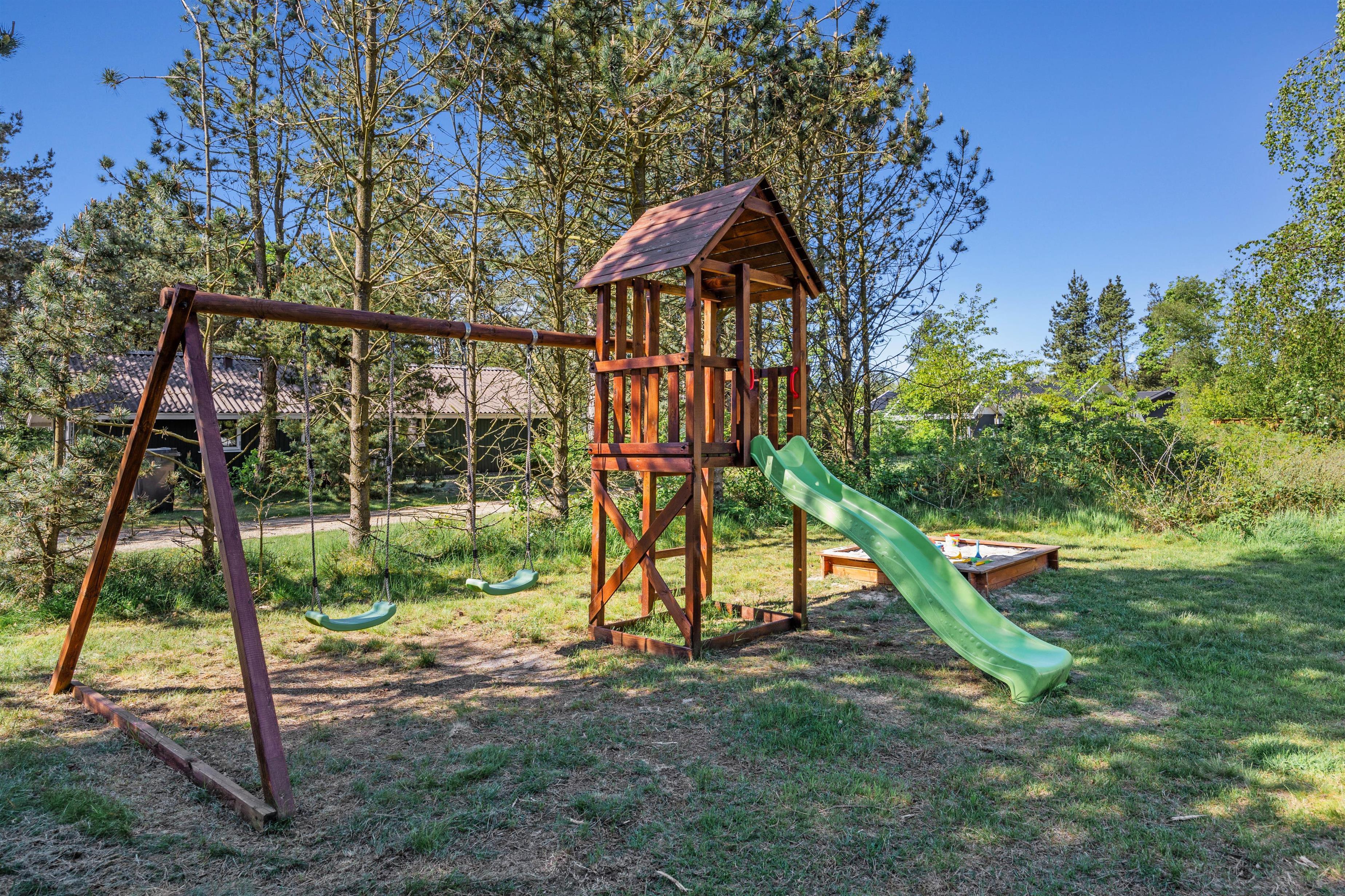 Sommerhuset ligger placeret på en dejlig naturgrund på hele 1.351 kvadratmeter, hvor der er masser af plads, I kan boltre jer på. Både børn og hunde vil helt sikkert elske at have al den plads at løbe rundt og lege på. Til børnene står der også en sandkasse klar, hvor de kan give sig i kast med at bygge flotte sandslotte.