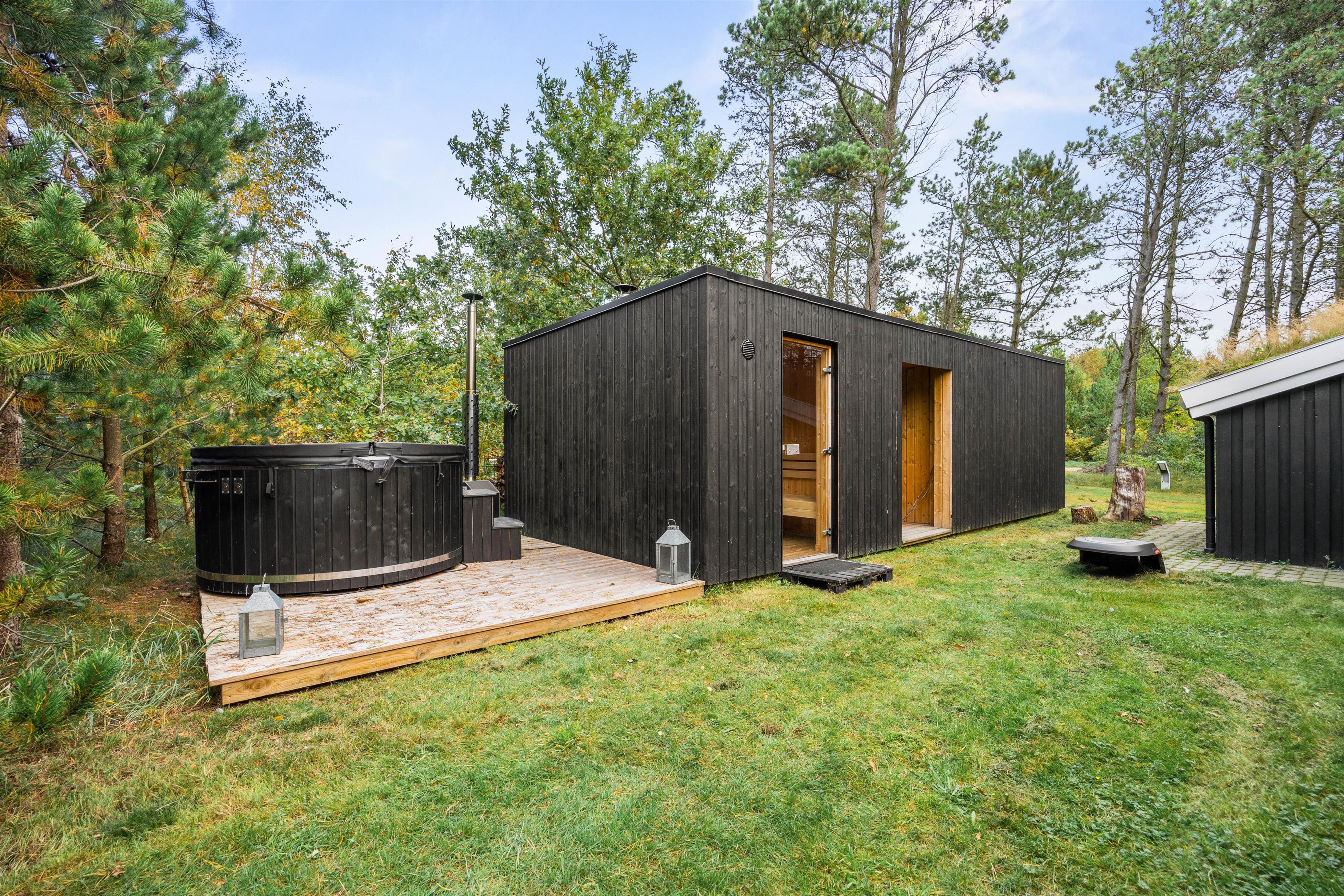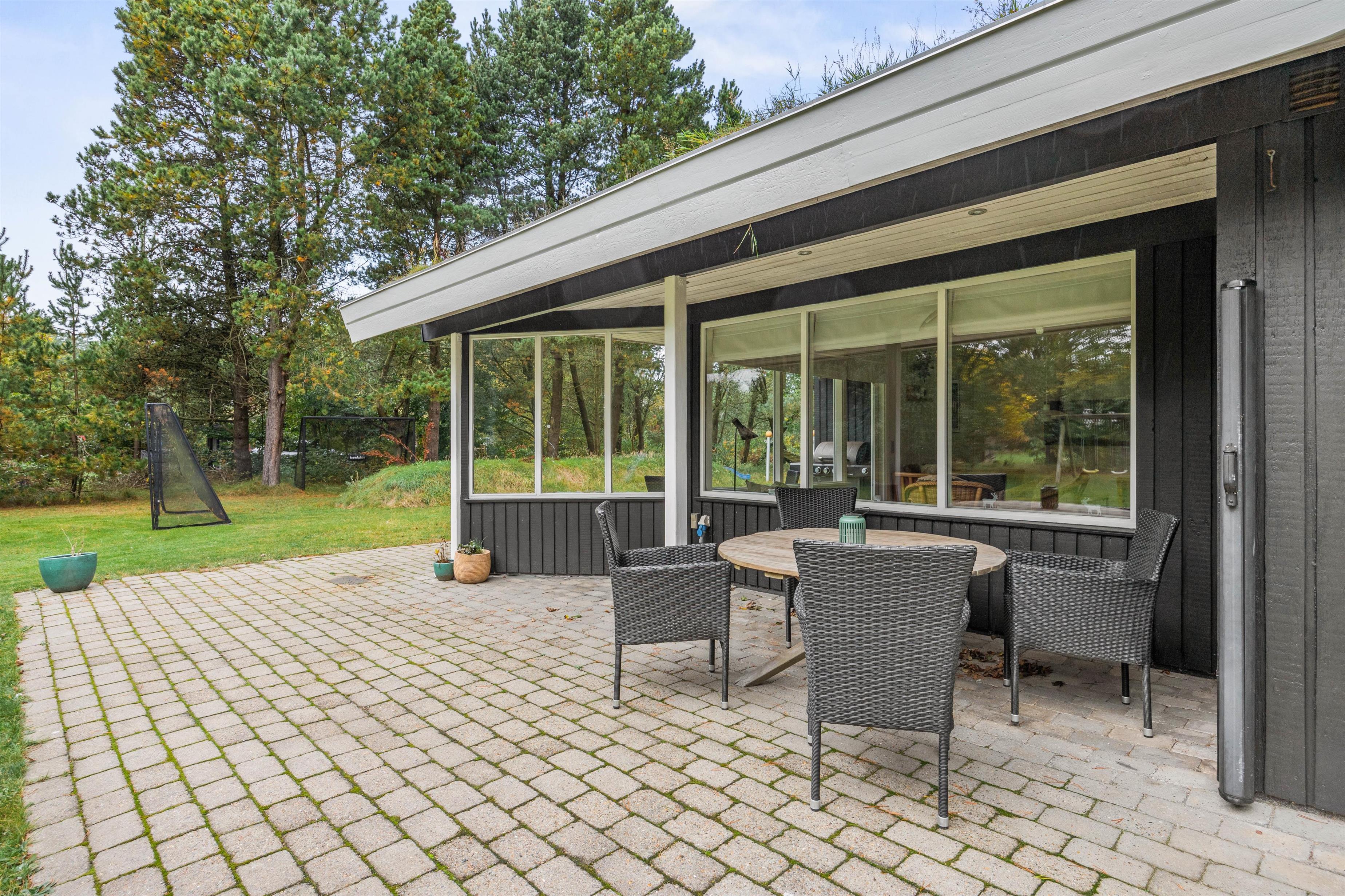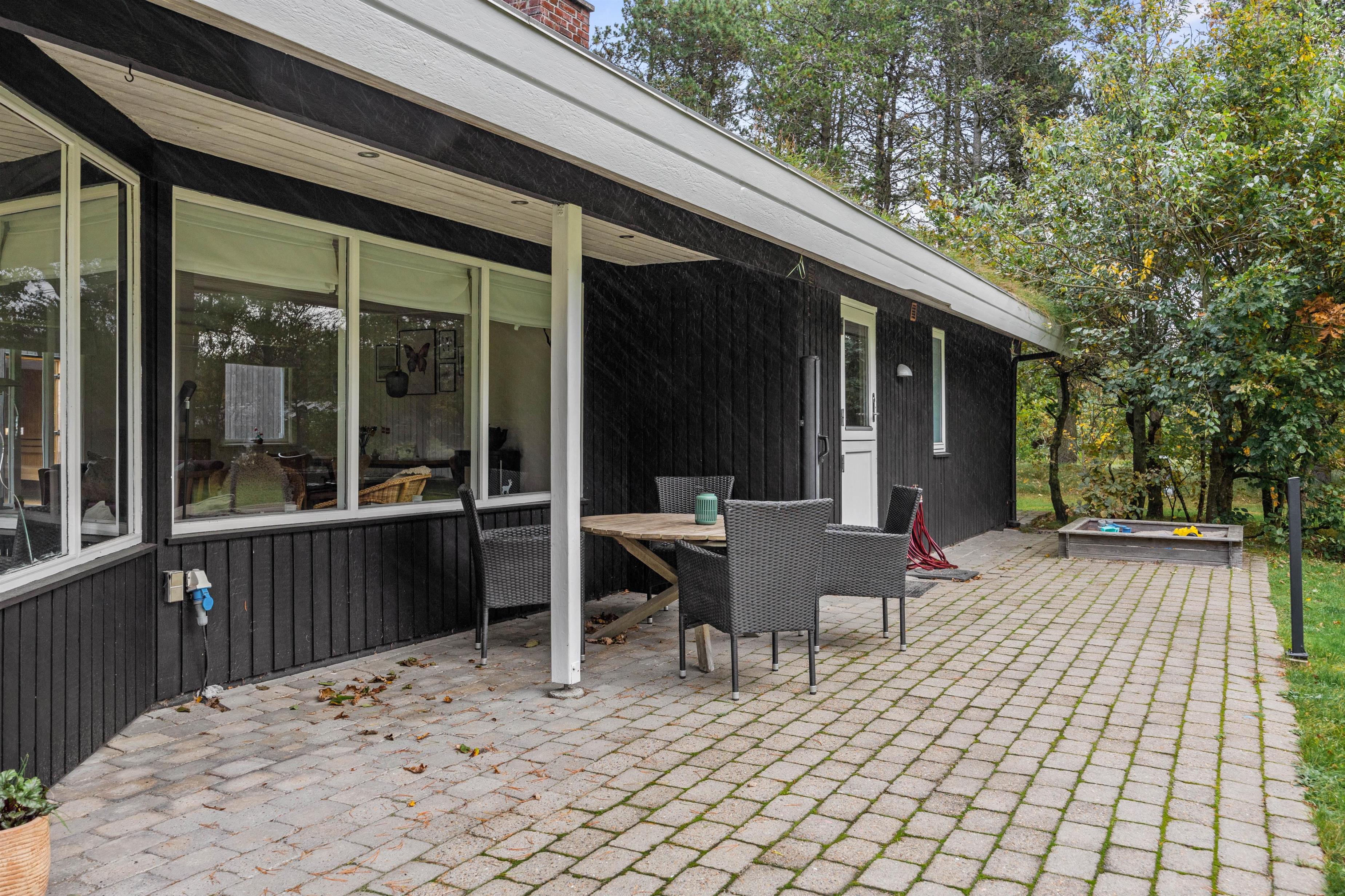 De mange træer, der indrammer huset, giver både gode læforhold og en dejlig fred og ro. Desuden er terrassen delvist overdækket, så I kan nyde ferieomgivelserne i langt det meste slags vejr - og hurtigt kan søge ly, hvis regnen pludselig skulle melde sig.