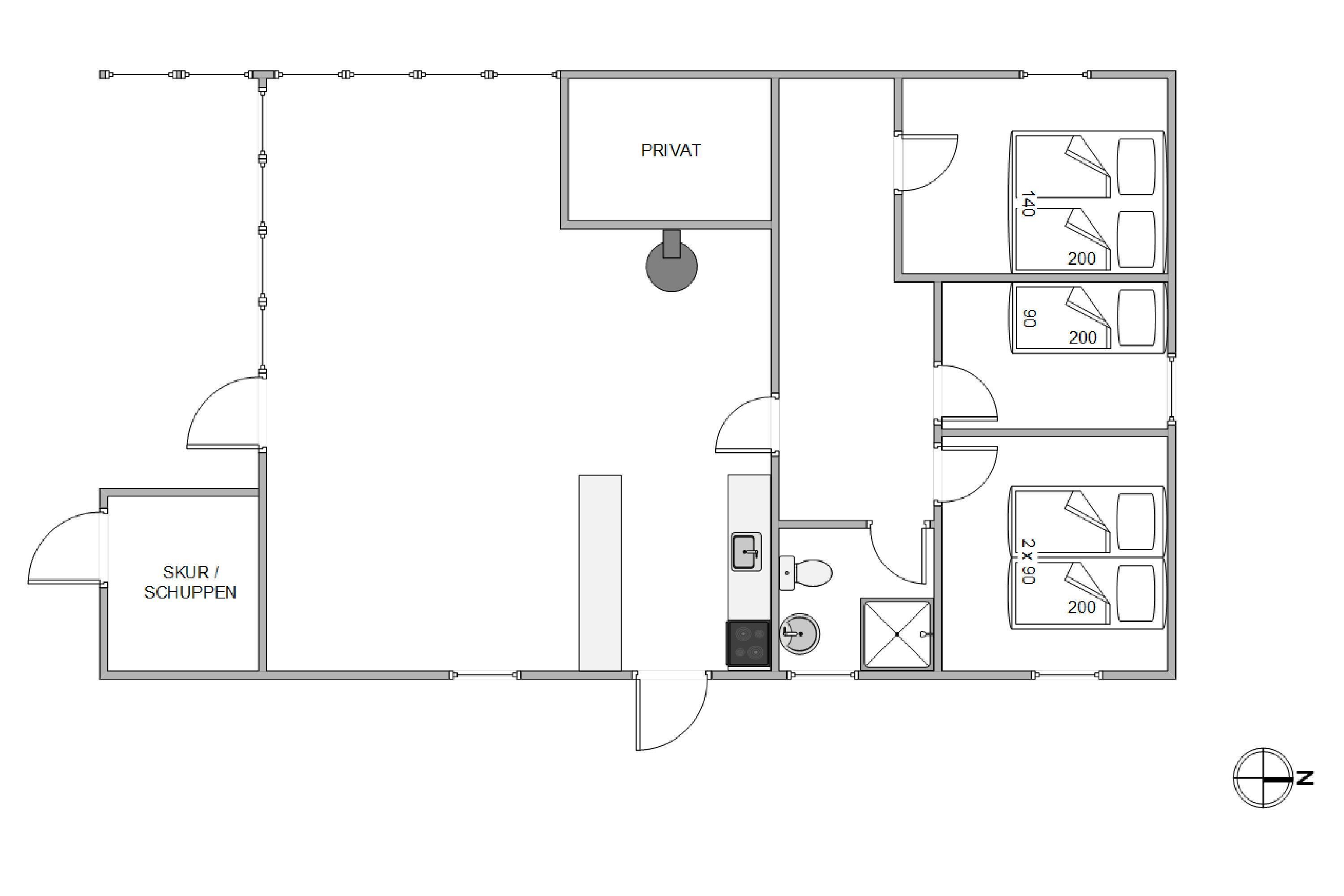Sommerhuset byder på 3 hyggelige soveværelser, som er indrettet med 2 dobbeltsenge og 1 enkeltseng – perfekt til familien med børn eller vennepar. Feriehuset har 1 badeværelse, som opfylder jeres behov under jeres ophold.