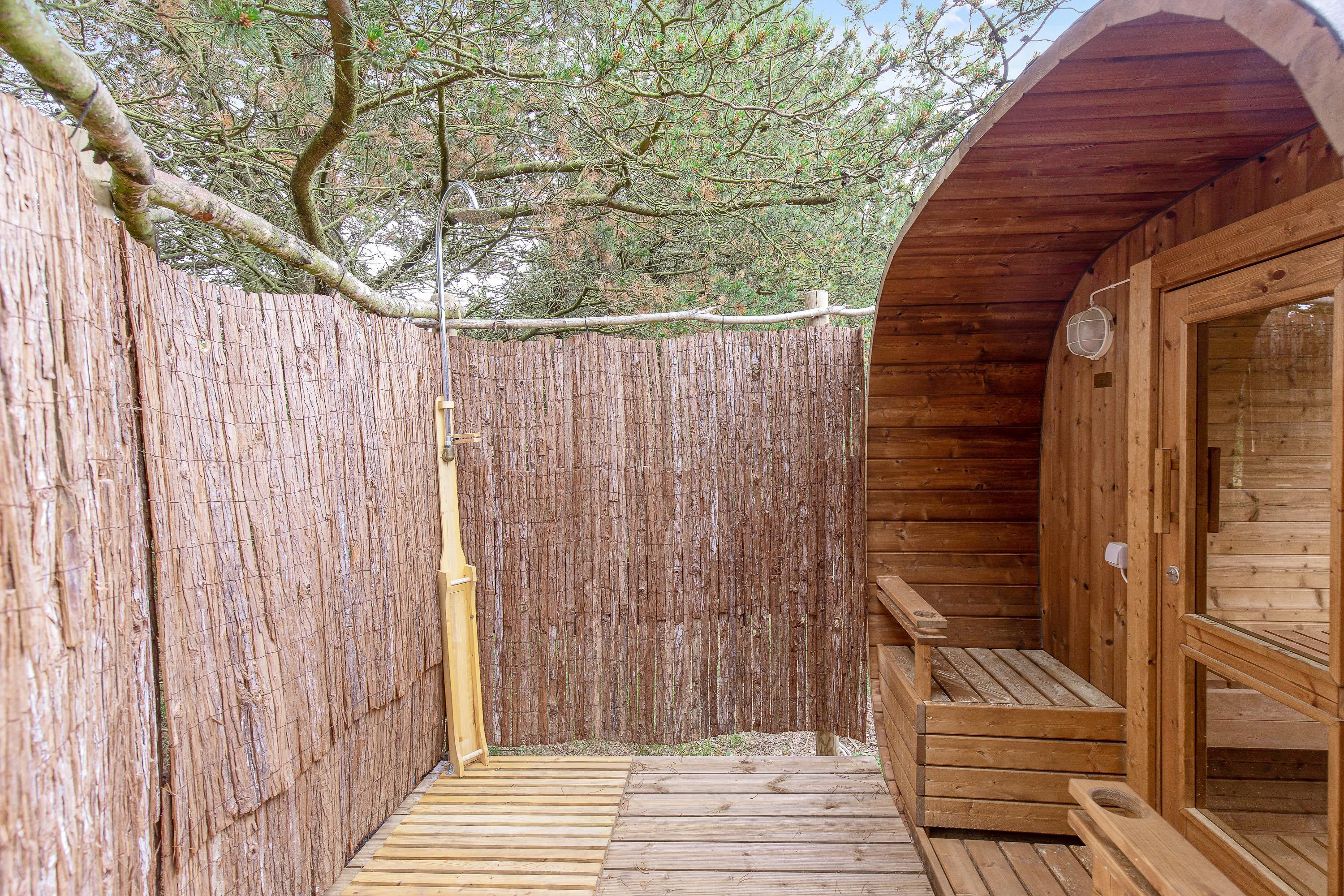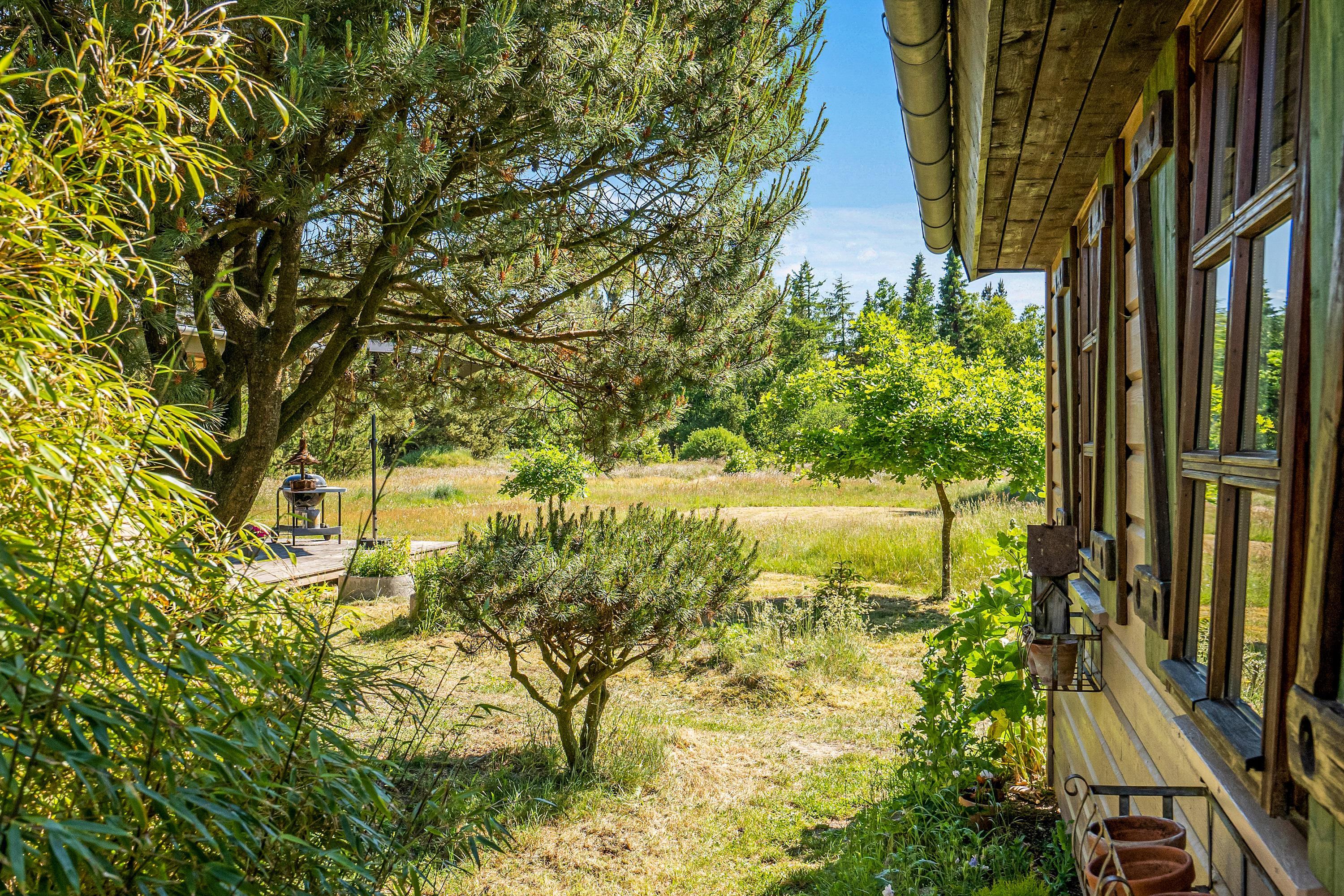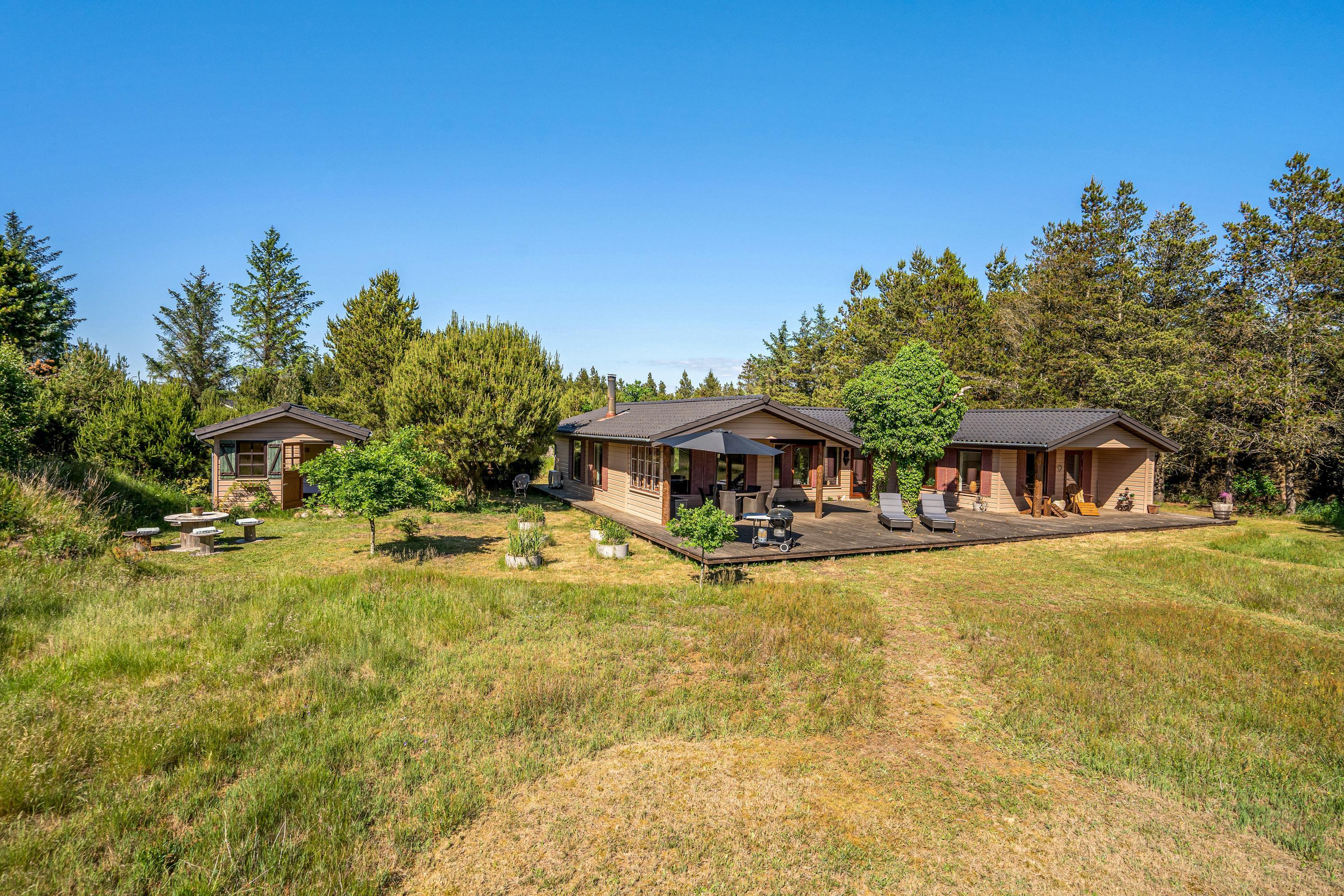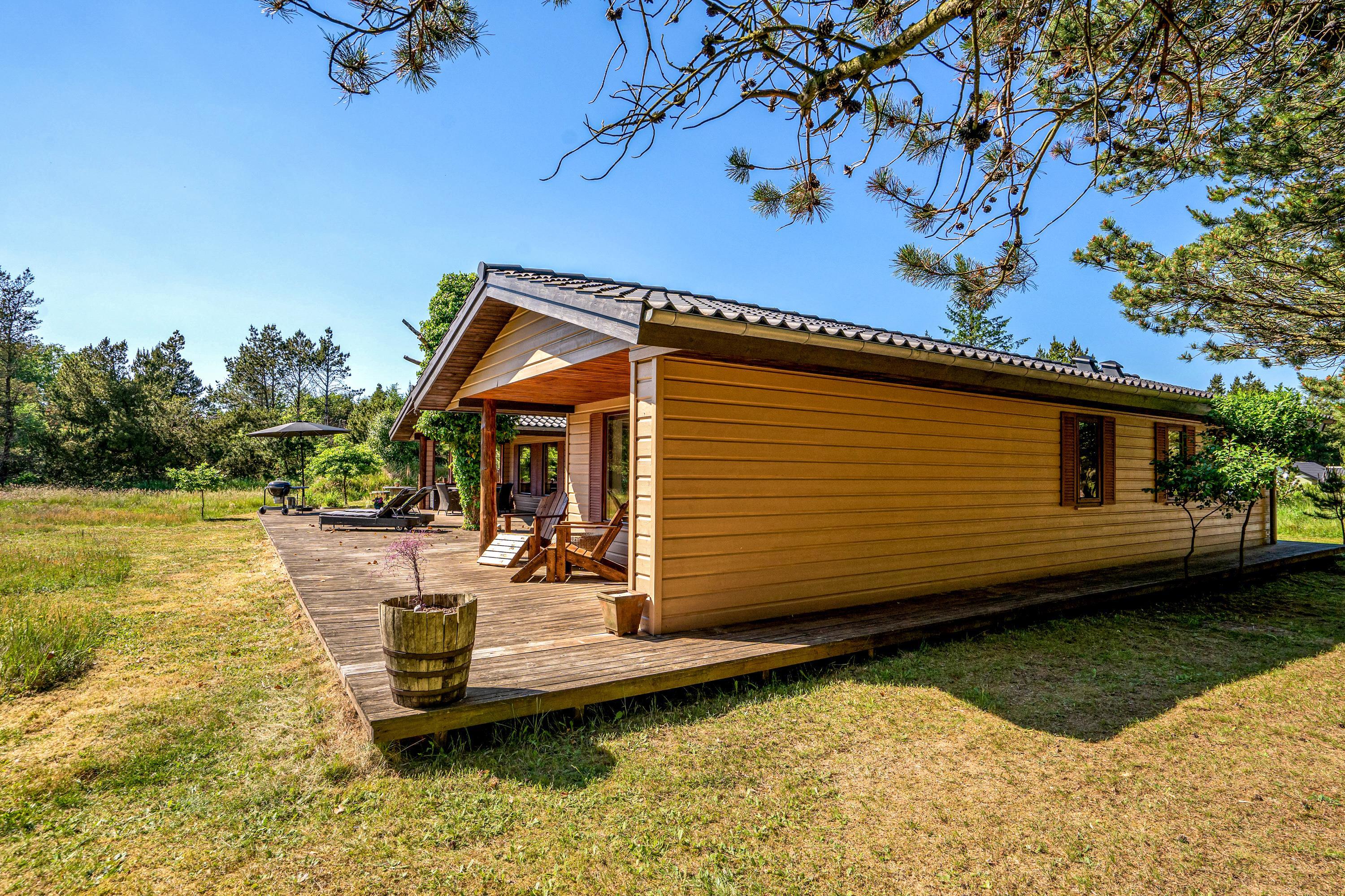 Den 90 m2 store sydvendte træterrasse med hele to overdækkende lækroge forlænger sæsonen med flere måneder, og I vil nyde at opleve naturen fra terrassen både dag og aften, forår, sommer og efterår. I sommerhalvåret kan I gøre brug af den udendørs bruser sammen med saunaen, som kan bruges hele året - begge står i haven. Gode stisystemer indbyder til lange ture i området – måske en frisk 2,5 kilometers travetur til stranden, eller en frisk cykeltur i skoven, hvor du måske vil udfordre dig selv på et af Danmarks bedste MTB-spor her i Blåbjerg Plantage.