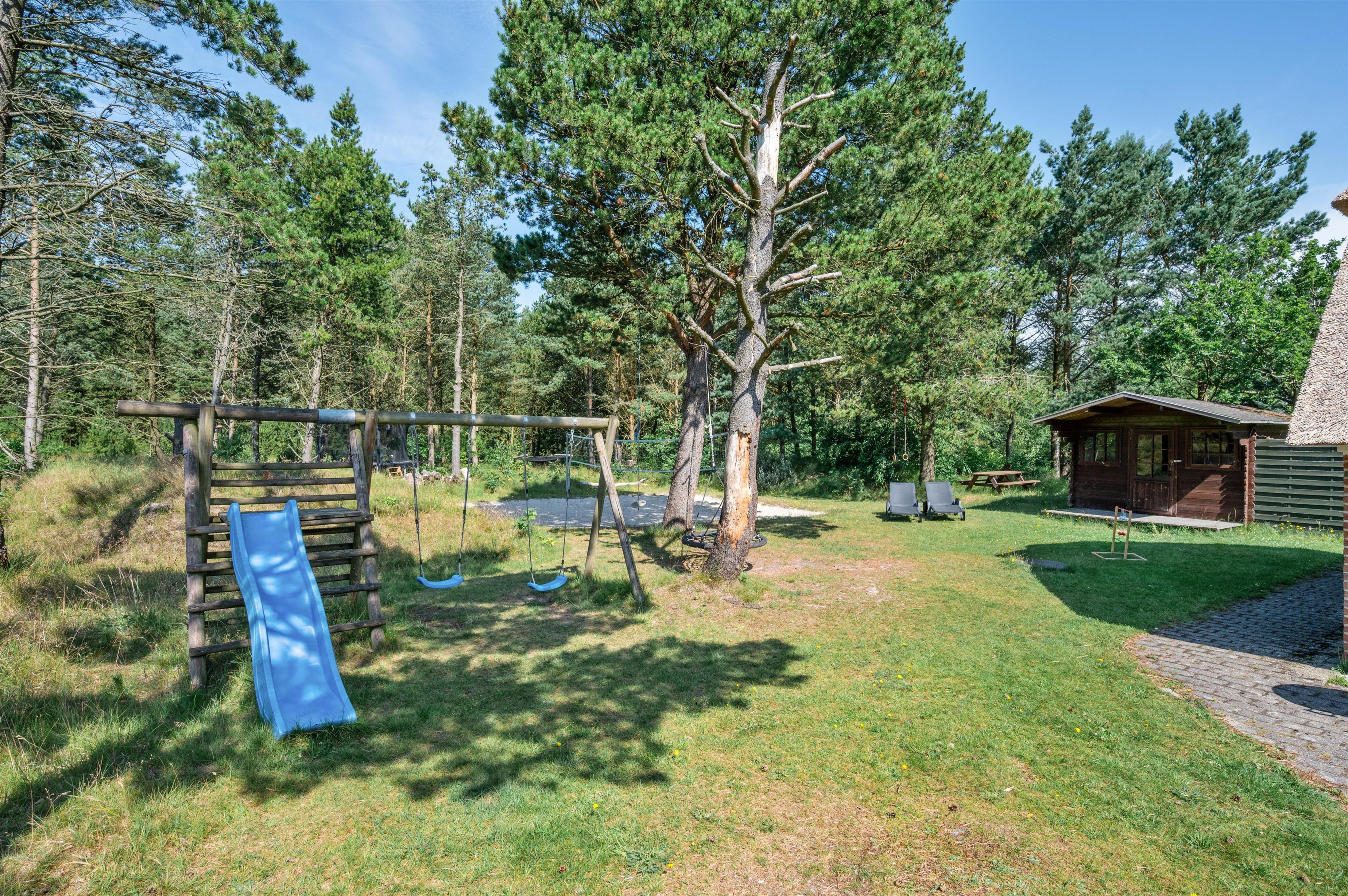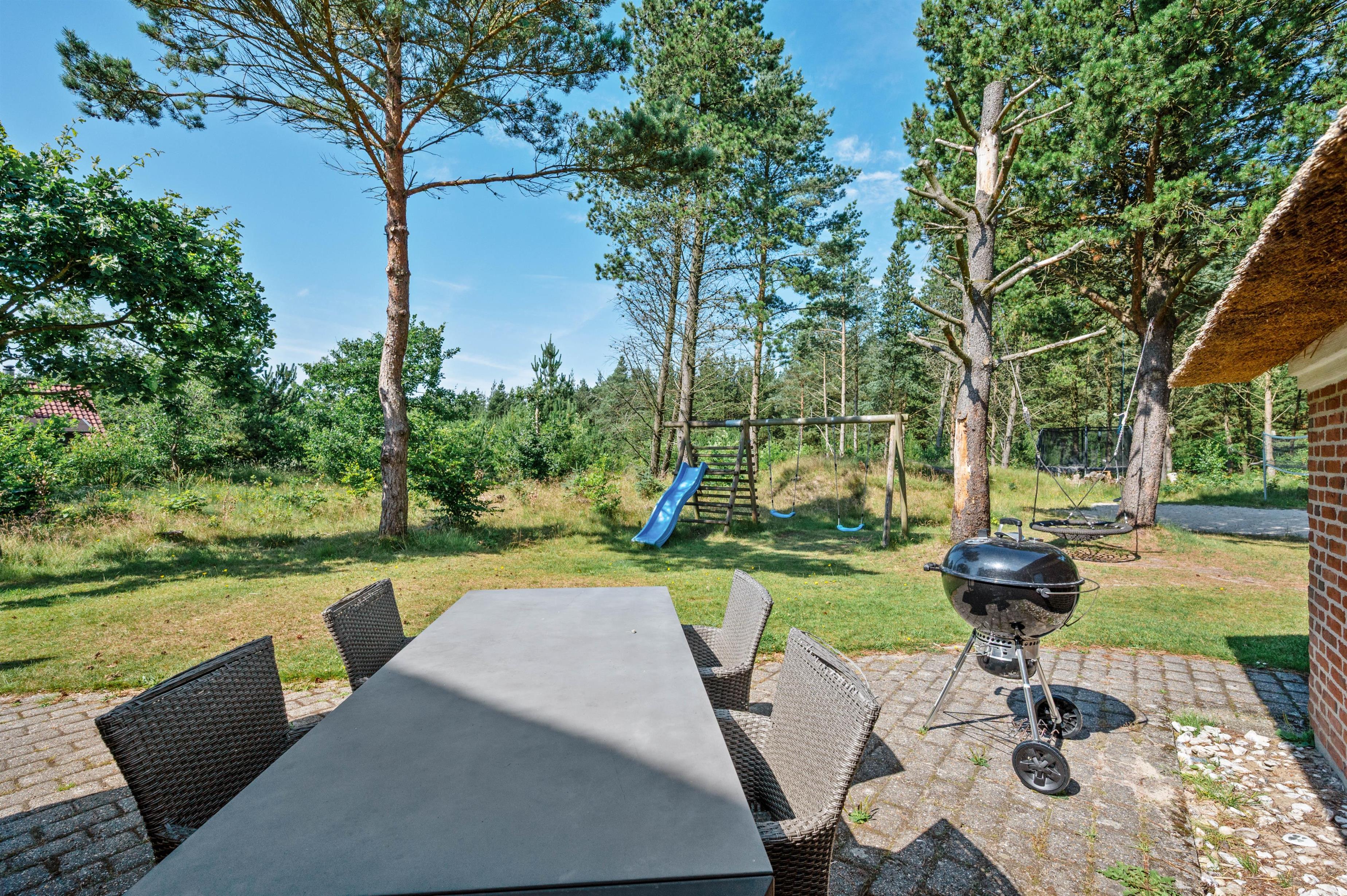 Udendørs har I også flere skønne terrasser, hvor der står havemøbler, liggestole og kul- såvel som gasgrill til rådighed for jer, så I kan få mest muligt ud af de solrige feriedage. Mens I slapper af på terrassen, kan børnene lege i haven, hvor der er en sandkasse og et gyngestativ til dem.