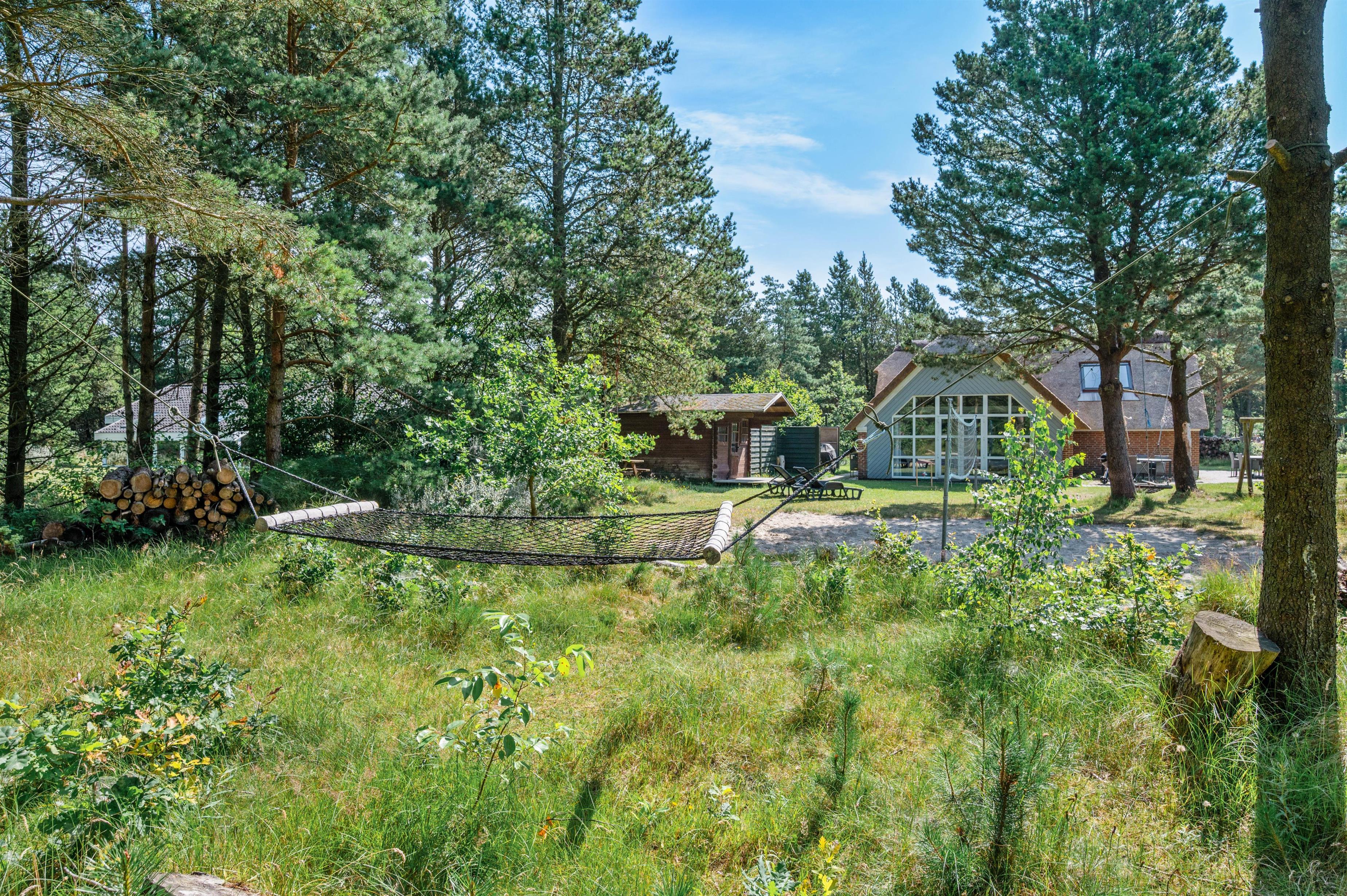 I sommerhuset er der lagt op til underholdende timer i swimmingpoolen og afslappende stunder i spa og sauna. Desuden byder sommerhuset på et dejligt udeområde, hvor I blandt andet har en beachvolleybane, mulighed for at prøve kræfter ved pull-up barren og efterfølgende slappe af i hængekøjen.