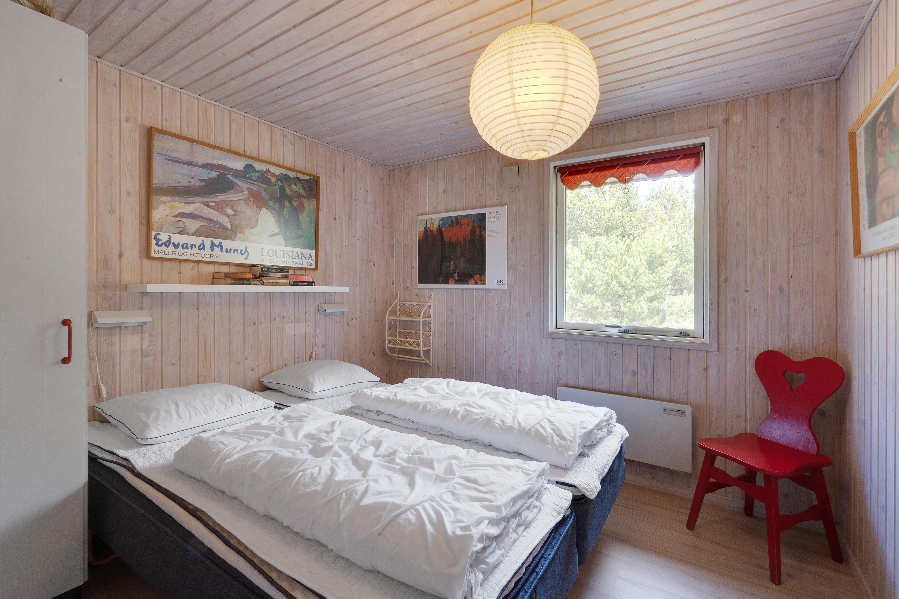 Huset rummer 3 soveværelser, hvoraf 2 er udstyret med en dobbeltseng og et enkelt er udstyret med køjesenge og sovesofa. Det lyde badeværelse har både gulvvarme og leder også direkte ind til saunaen, hvor der kan holdes en wellness-session efter en lang feriedag.