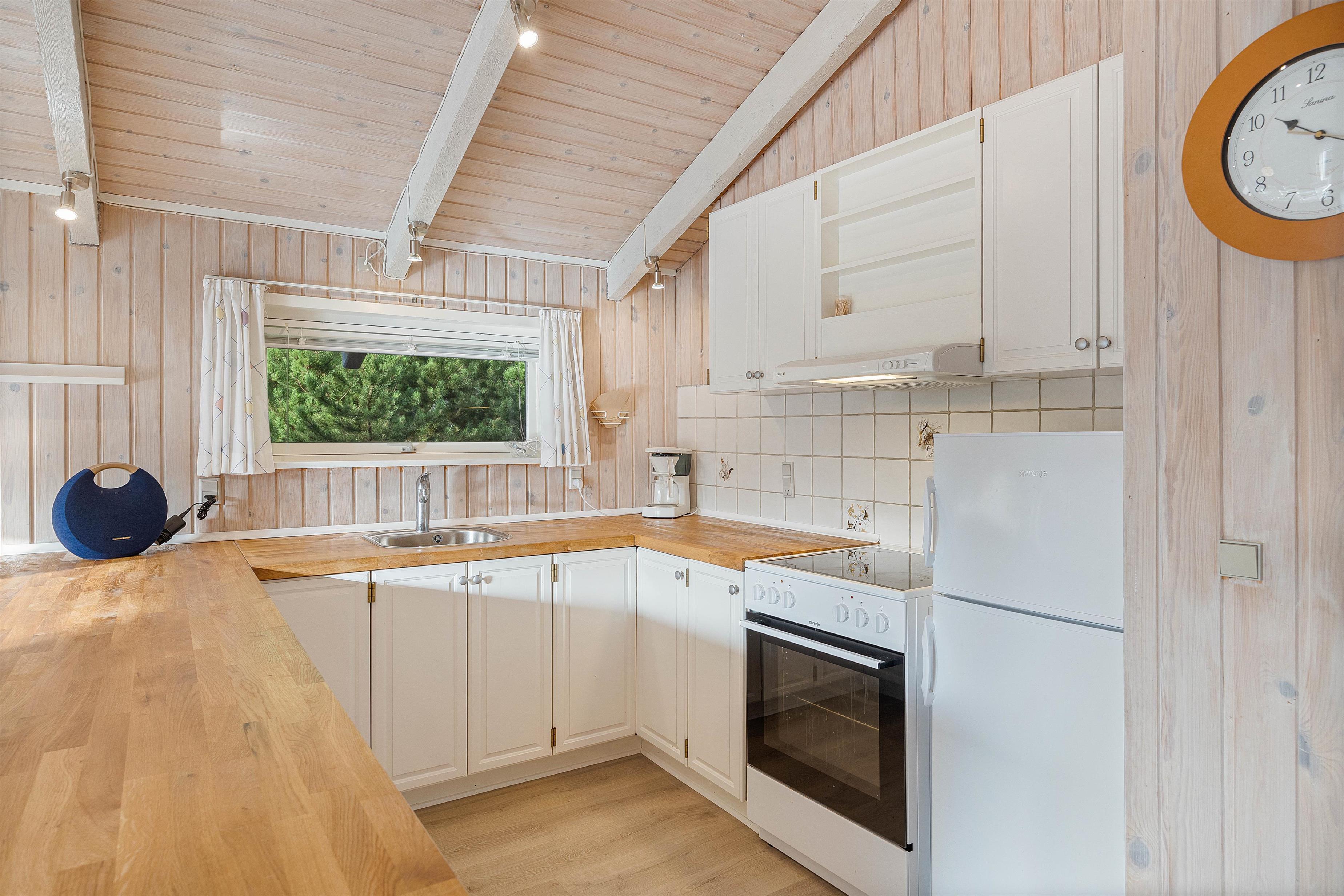 På de kølige dage er det oplagt at tænde op i brændeovnen og nyde varmen sprede sig i opholdsrummet mens flammernes knitren skaber hyggelig sommerhusstemning. Når opvarmningen skal gå lidt hurtigere, kan I tænde den energivenlige varmepumpe og feriehuset vil snart være opvarmet.