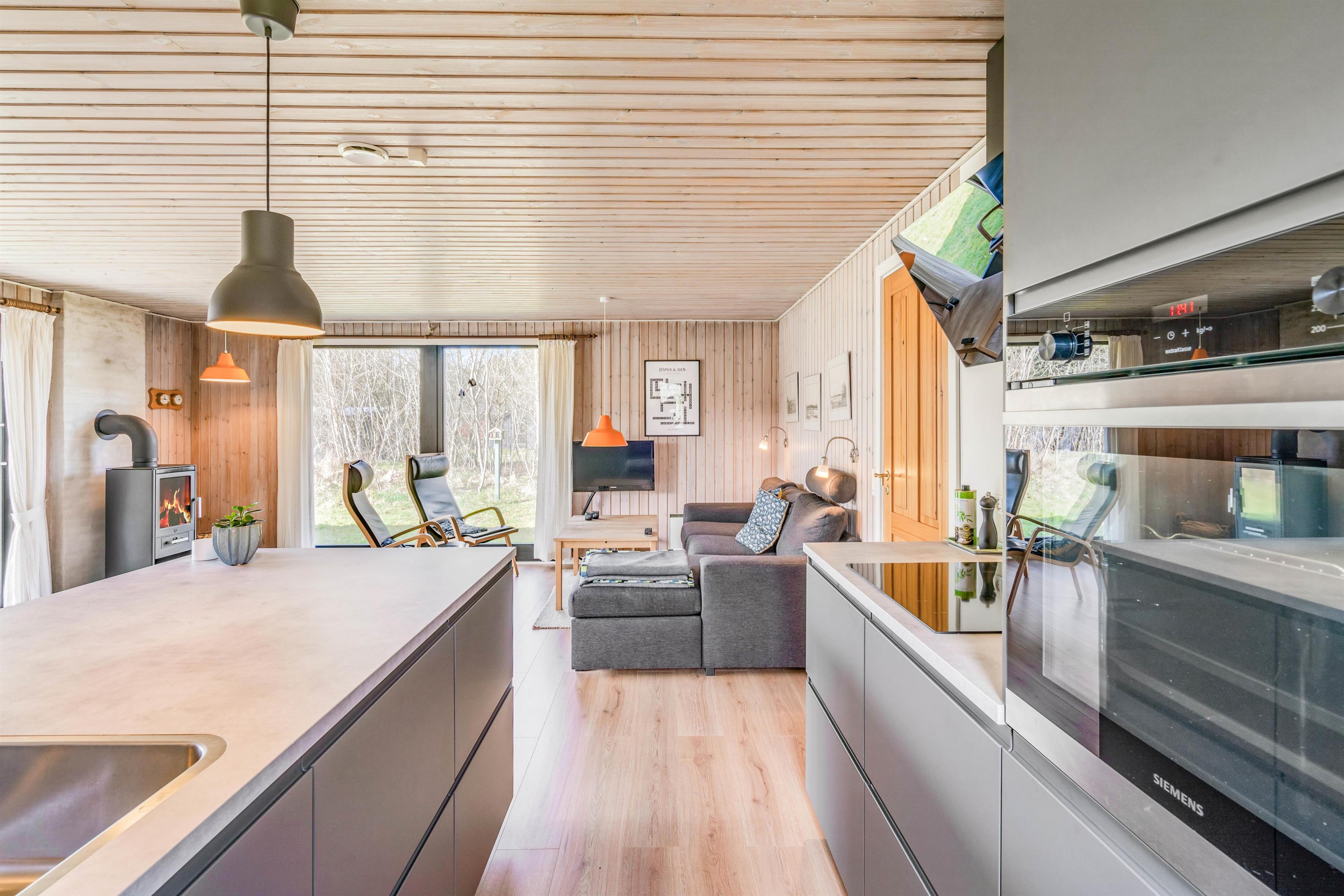 Samlingspunktet på jeres ferie i sommerhuset på Rohdesvej 1 vil uden tvivl blive alrummet, hvor køkkenet ligger i åben forbindelse med stue og spiseplads. I alrummet er der også en brændeovn, som I blandt andet kan tænde op i på de kølige aftener, mens I ser jeres yndlingsfilm på tv’et via Chromecasten.