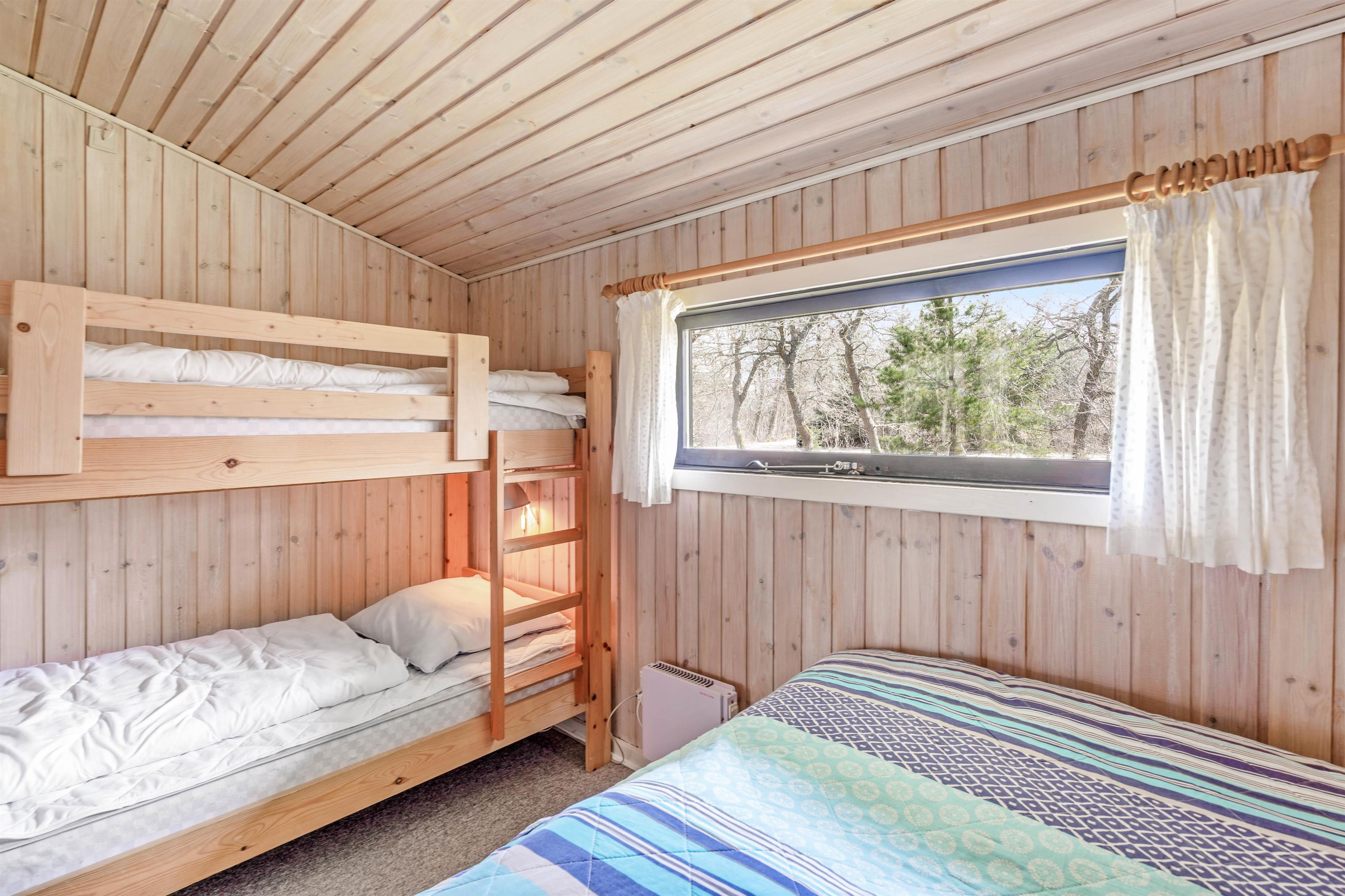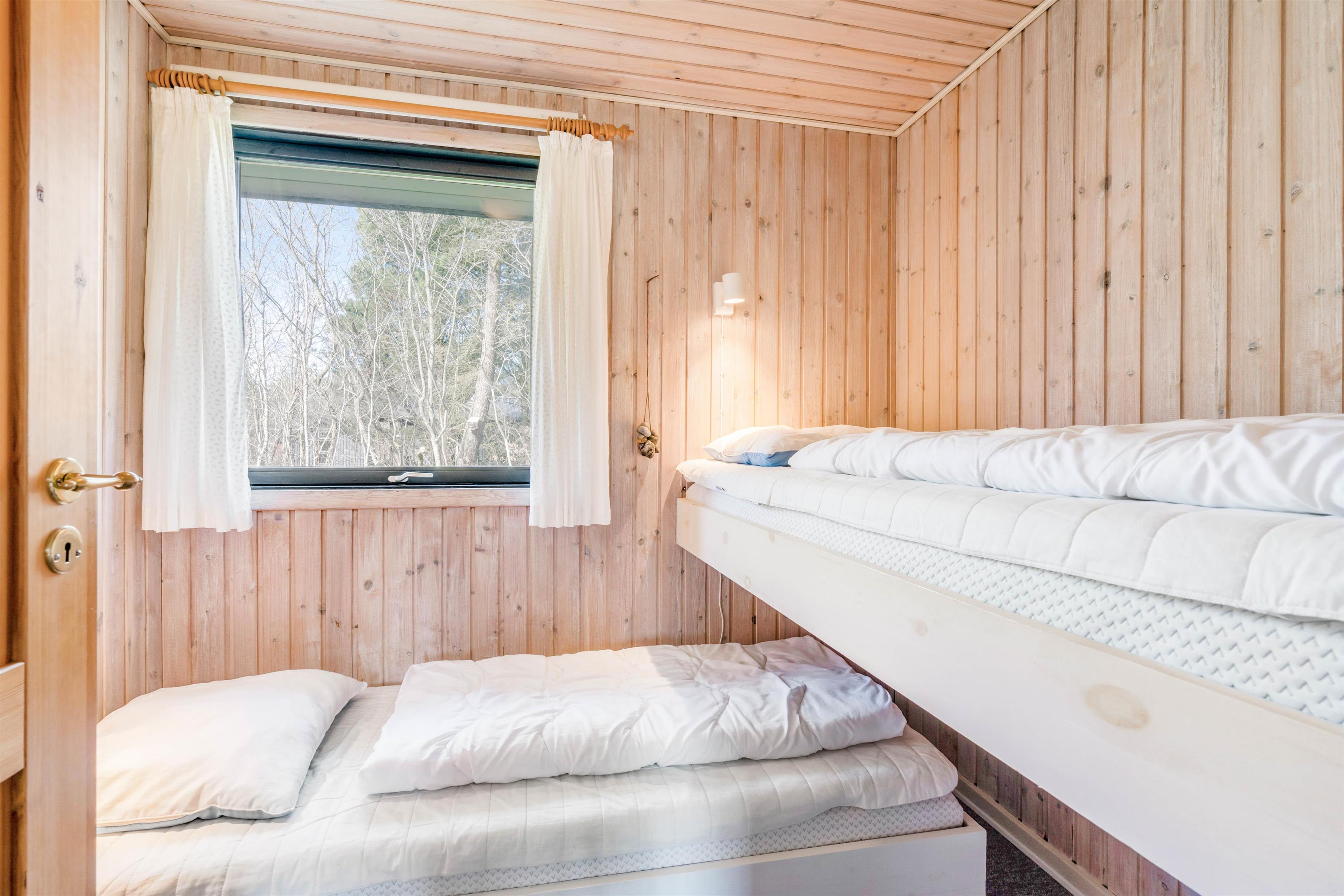I sommerhuset er der 3 gode soveværelser, hvoraf 2 af soveværelserne er indrettet med en dobbeltseng hver, og det tredje soveværelse er indrettet med en enkeltseng og en køjeseng. Det tredje soveværelse er perfekt til feriens yngste gæster.