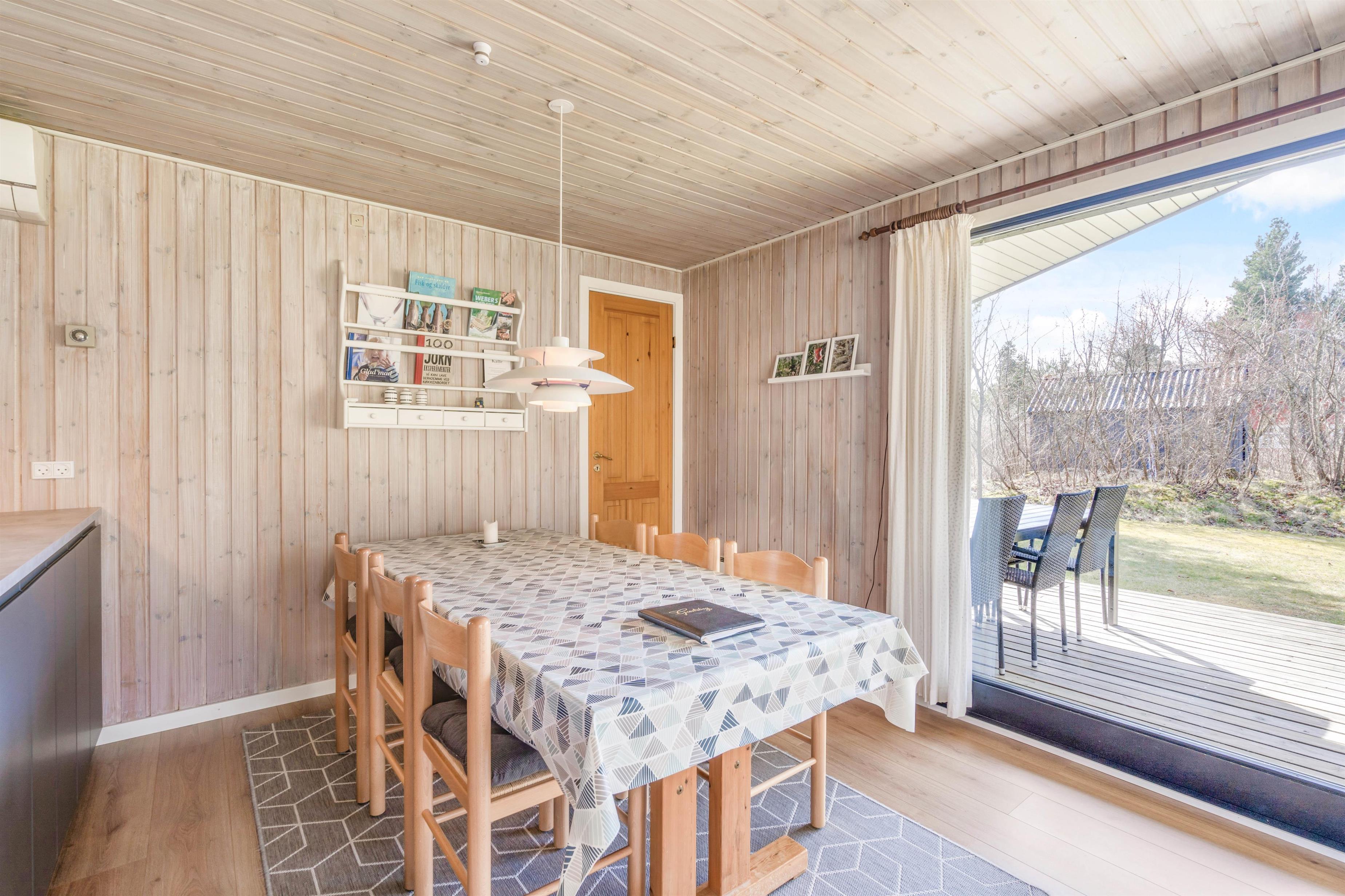 Sommerhuset ligger på en 1.384 kvadratmeter stor grund, hvor I har gode muligheder for at nyde de varme feriedage. Her vil børnene helt sikkert elske at have masser at plads at lege på. Alt imens børnene leger i haven, kan I slappe af i havemøbler og liggestole på terrassen. På terrassen har I også en grill, som I kan tilberede en lækker middag på om aftenen efter en dejlig dag i solen.