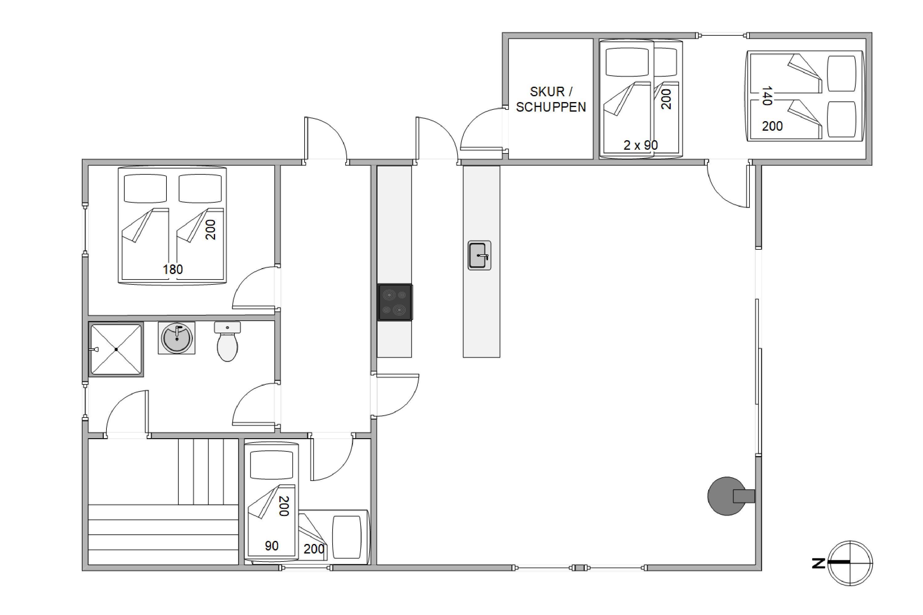 2. soverum/sengestørrelser140x200 + 2x90x200