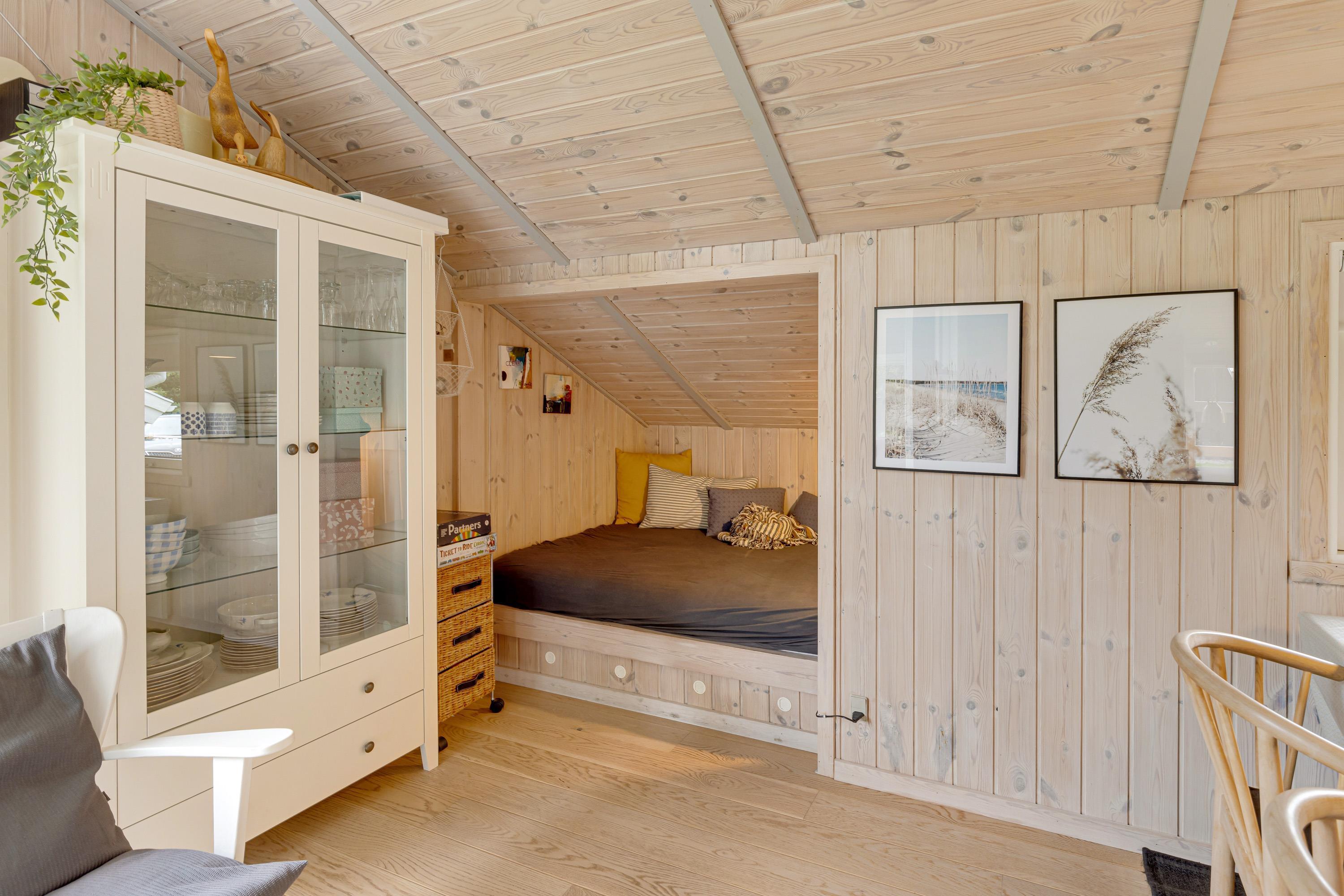 På kølige dage sørger den energibesparende varmepumpe for velvære i dette fine sommerhus, der med træværk og gode møbler emmer af hygge og samtidigt er lyst og venligt med loft til kip, godt lysindfald og en skøn udsigt til den store grund. Når der skal hygges inden døre, kan I tænde op i brændeovnen og så egner alkoven i stuen sig super til en lille morfar eller til et hyggeligt læse-højt-hjørne for børnene.