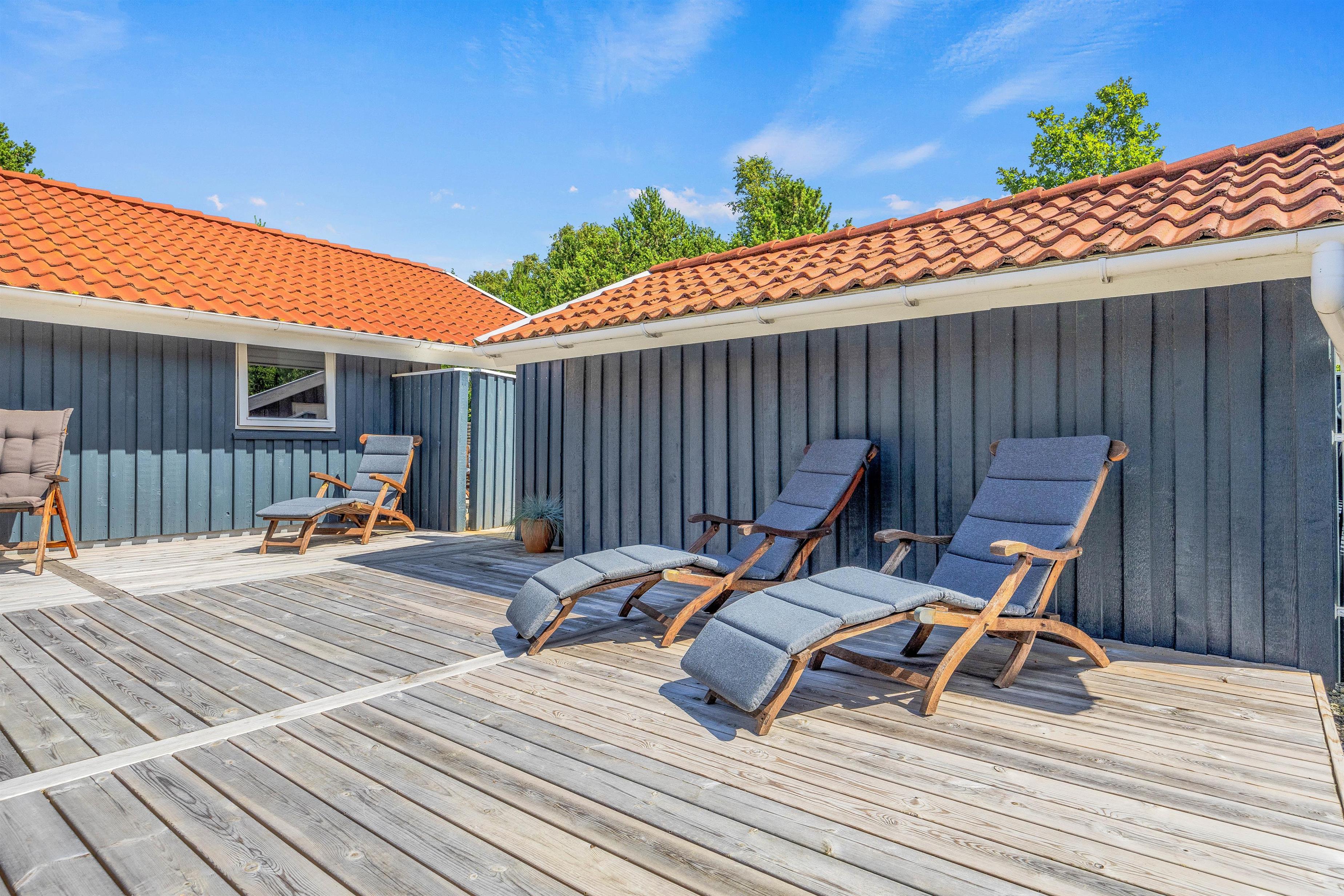 Dette fantastiske sommerhus i Houstrup ligger dejligt privat. Terrassen, som blev skiftet i 2024, smyger sig rundt om huset. En del er overdækket, og I finder altid et perfekt læhjørne. Grunden er stor og dejlig lukket med carport, skur, og en petanque-bane, hvor I kan udfordre hinanden. I haven er der desuden et shelter, hvor I kan nyde naturoplevelser tæt på huset. Efter en spændende dag kan de voksne hvile sig på de bekvemme havemøbler, mens børnene leger med hunden på plænen mellem frugttræerne.