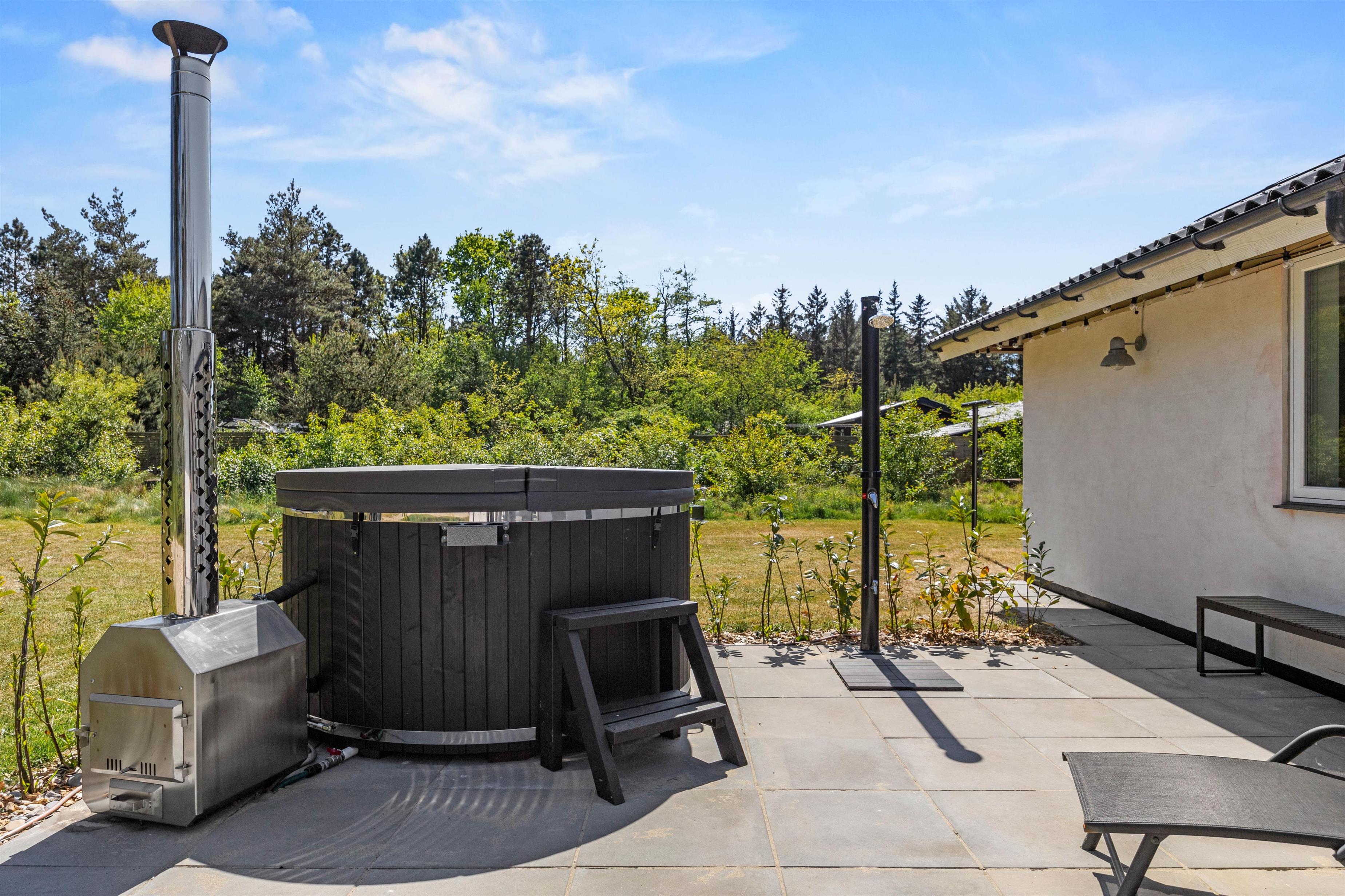 Dette sommerhus er særligt attraktivt takket være de lækre faciliteter, I her finder. Lad jer forkæle i sommerhusets private sauna og spa, eller slap af foran brændeovnen, der skaber en hyggelig atmosfære på køligere dage. En moderne og energibesparende luft-til-luft varmepumpe sikrer effektiv opvarmning og godt indeklima, så I altid har det behageligt.