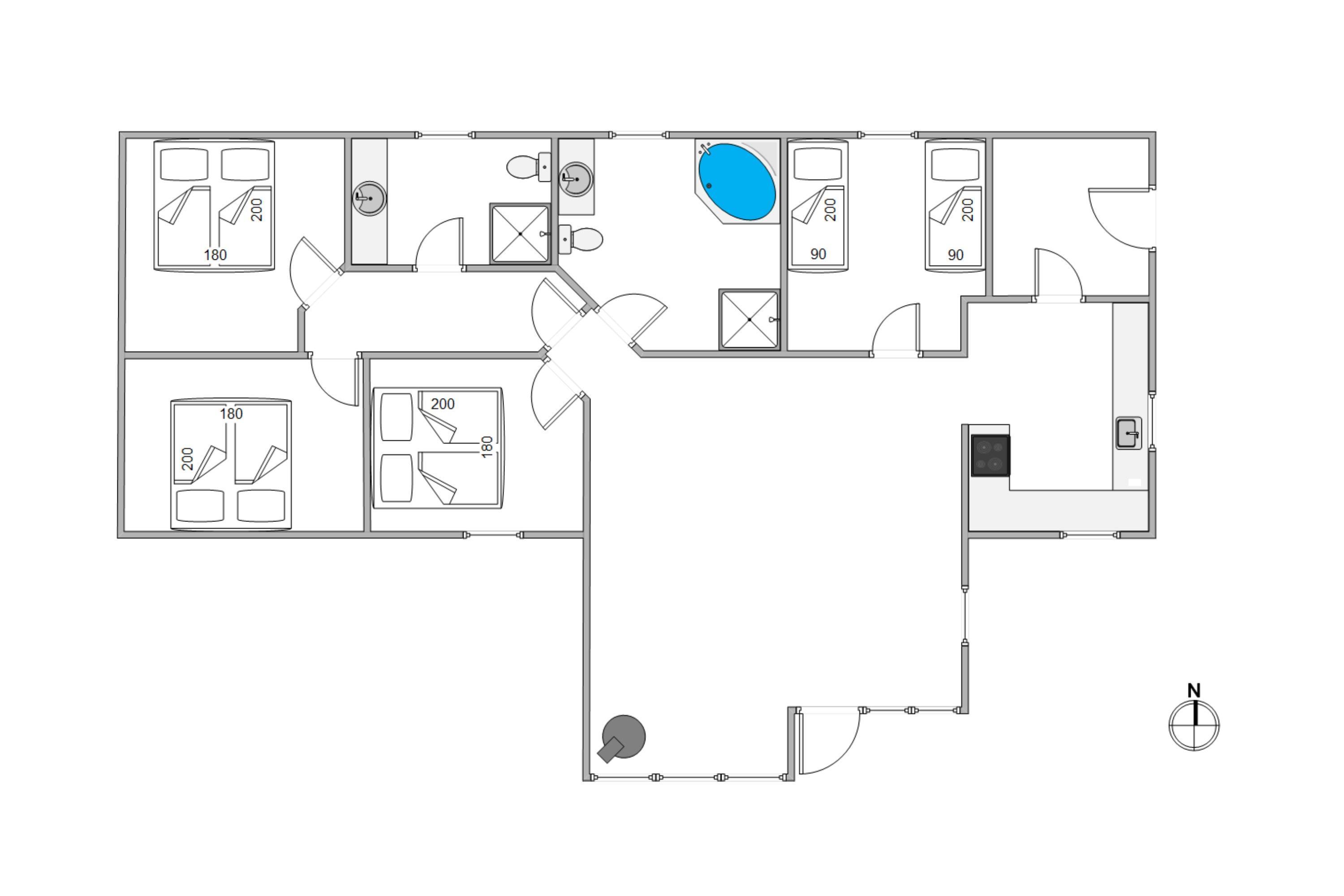 Sommerhusets 2 badeværelser er begge udstyret med gulvvarme, og på det ene finder I desuden et lækkert feriehighlight – spabadet. Her er der plads til lidt ekstra selvforkælelse på ferien, måske efter en forfriskende gåtur i Houstrups grønne natur?