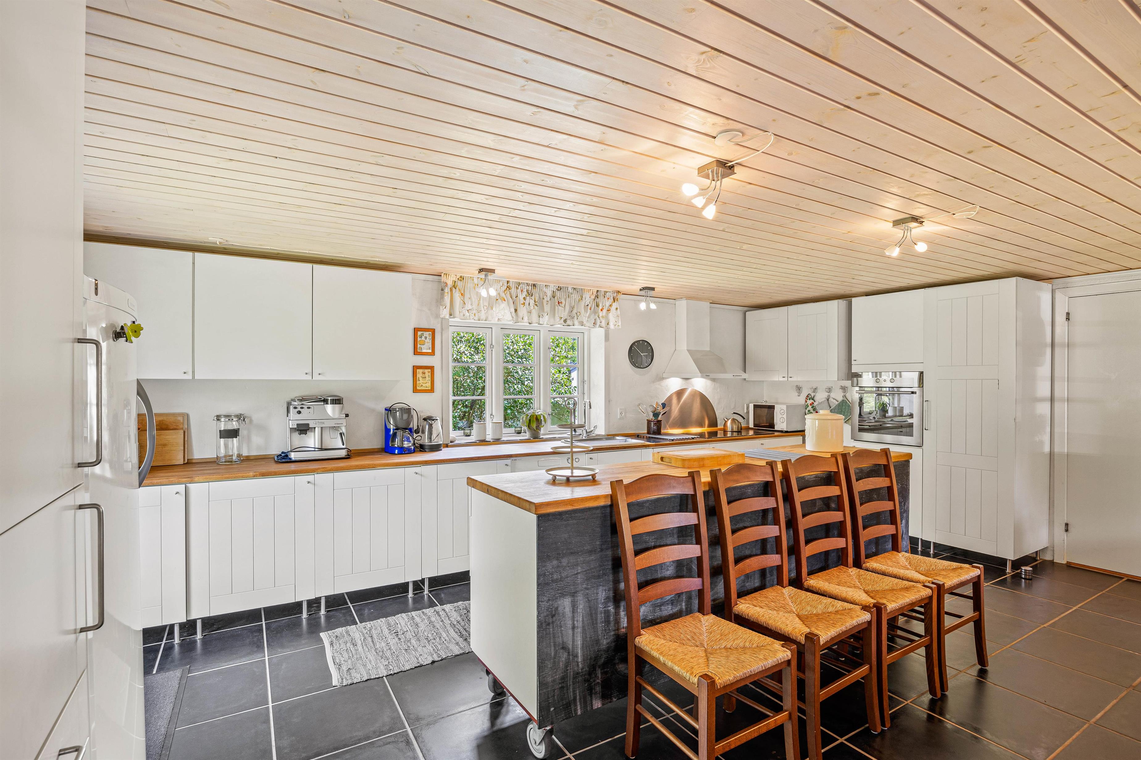 Det store køkken og spisestuen er i et rum, hvilket sikrer, at samtalen kan fortsætte fra madlavningen ned til spisebordet. Køkkenet er stort og indbyder til fælles madlavning og samvær. Udstyret med alle nødvendigheder, herunder en opvaskemaskine, kan du nyde ferien uden besvær.