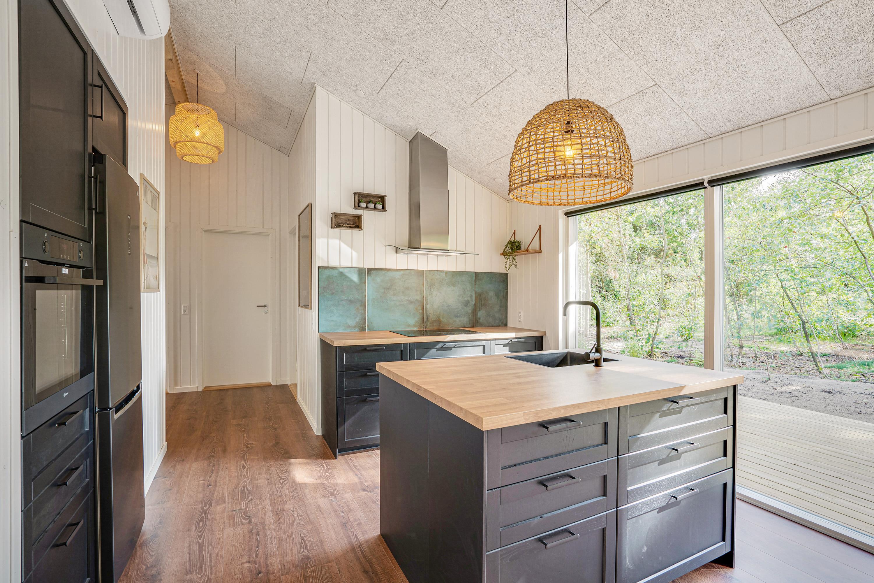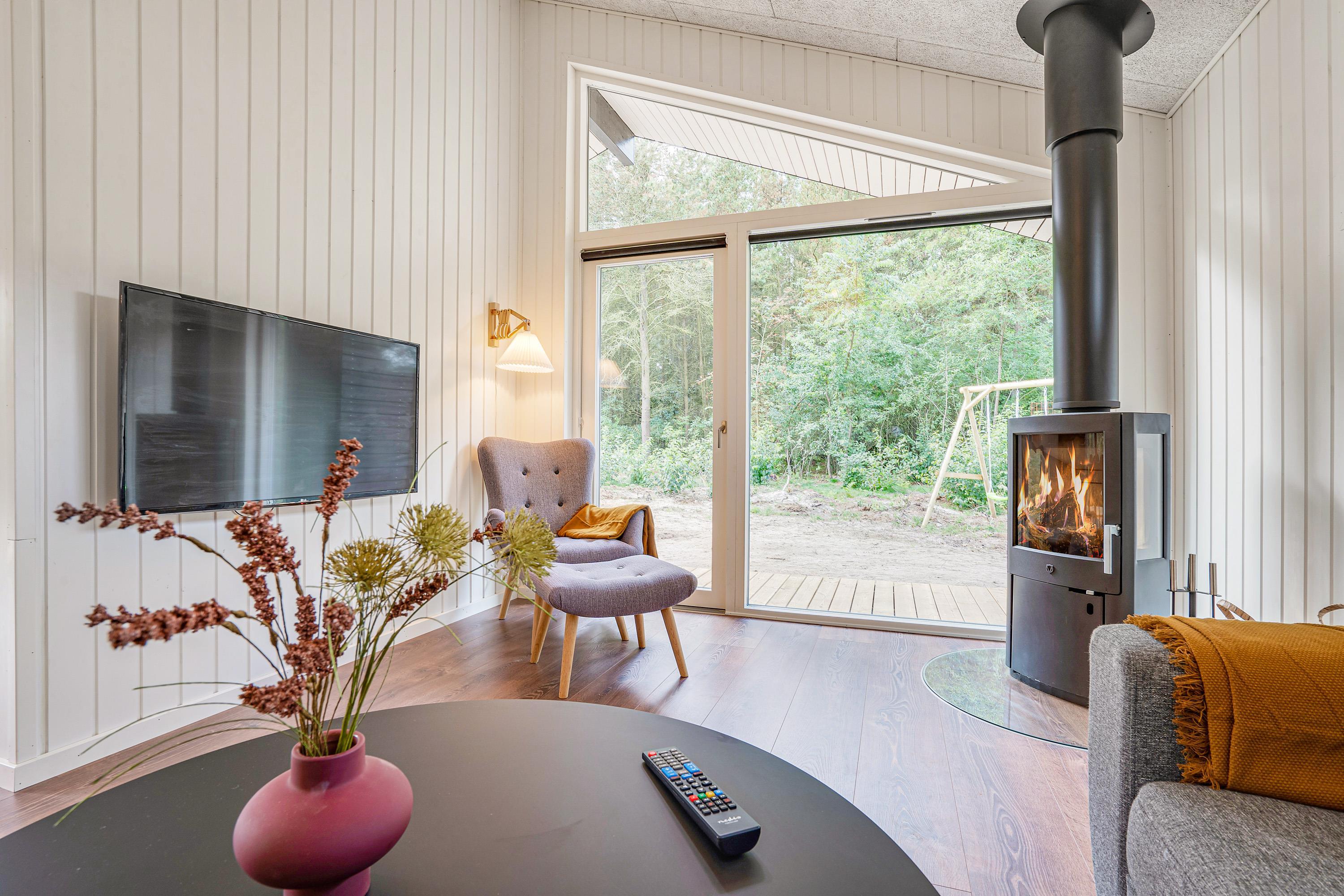 Energibesparende varmepumpe, brændeovn - komfort og hygge midt i naturen