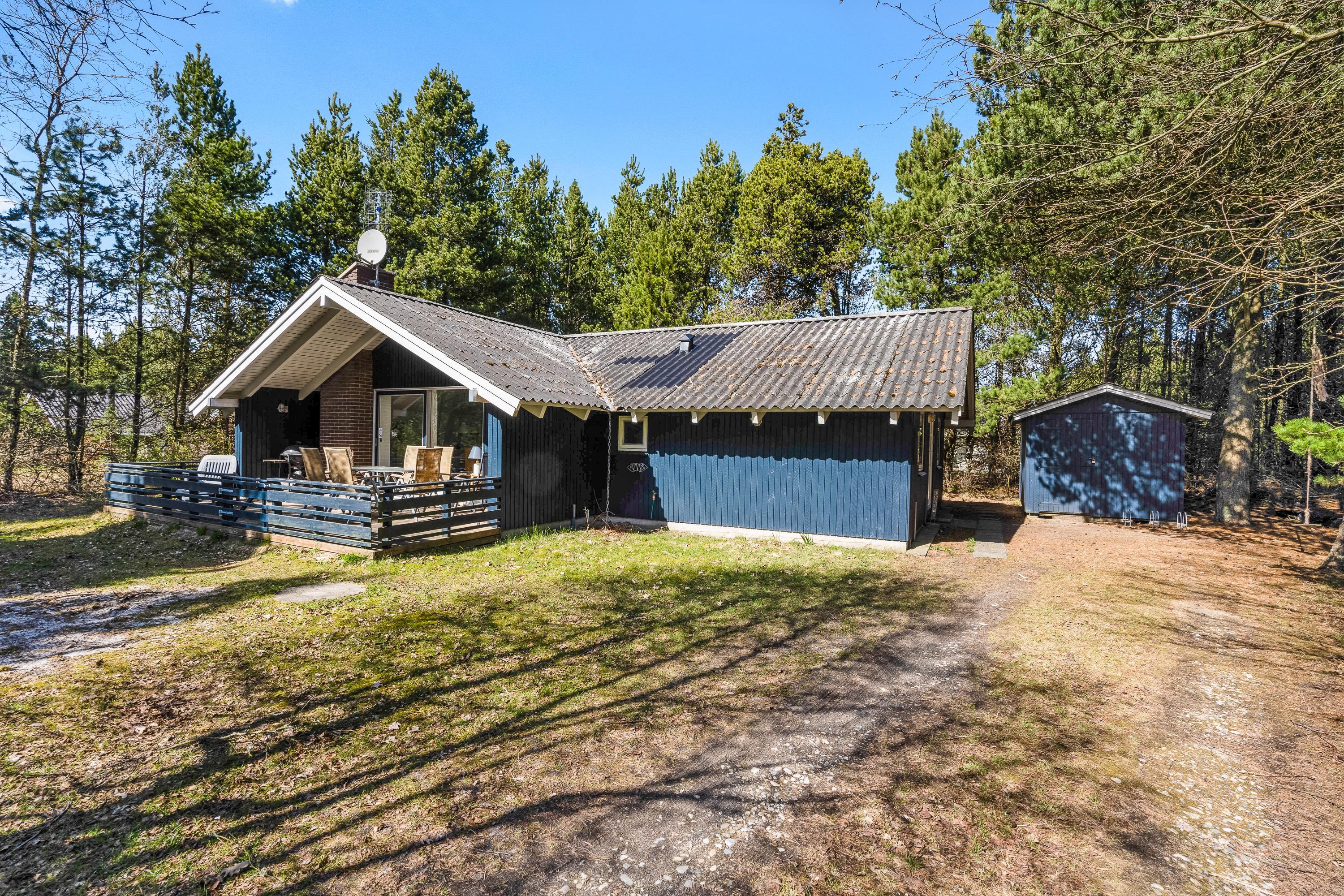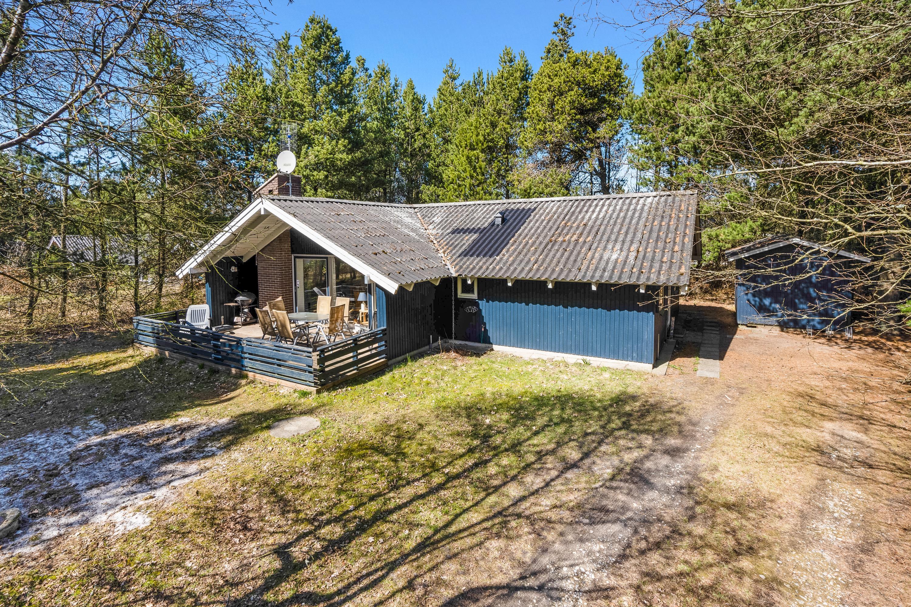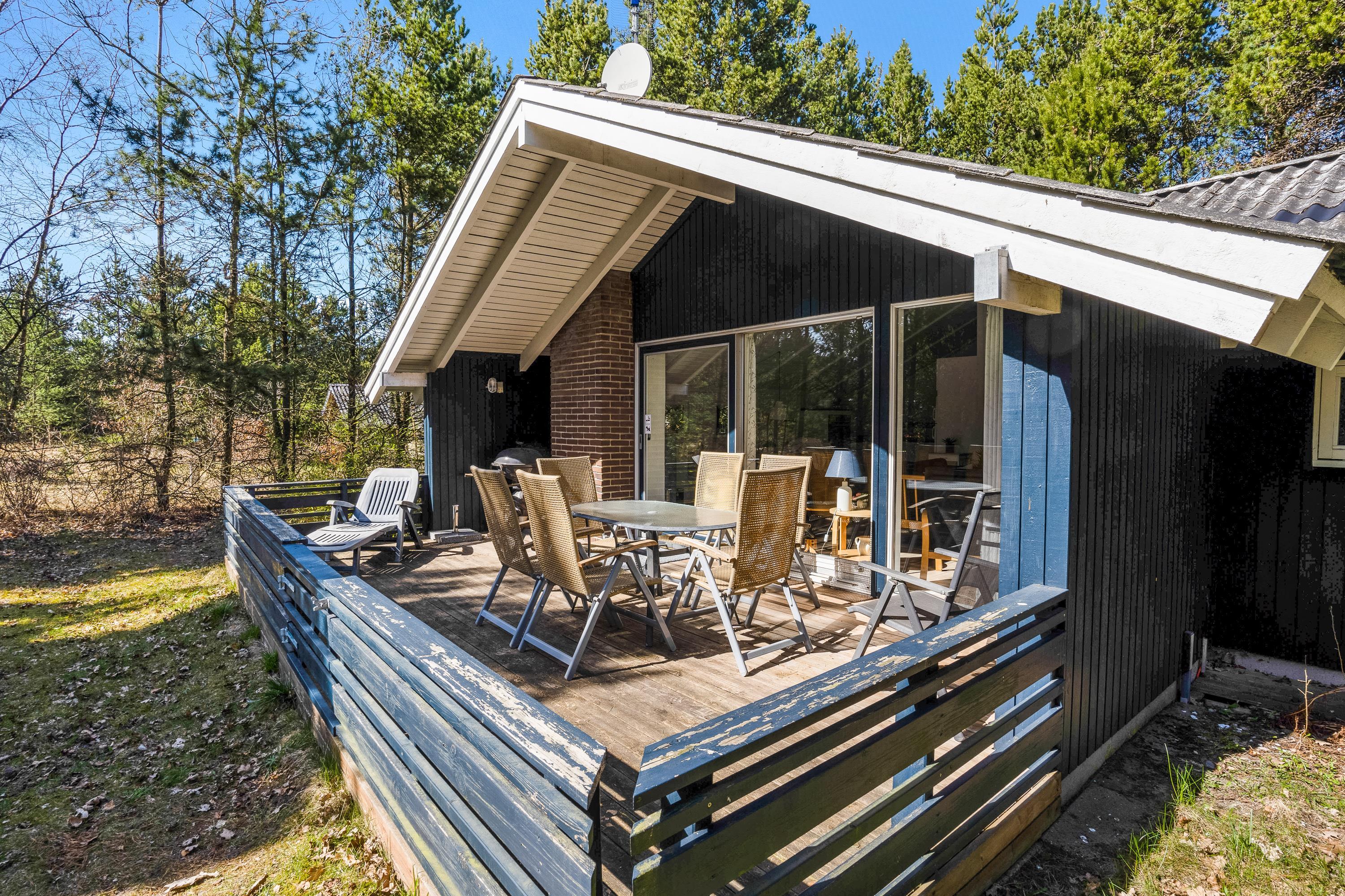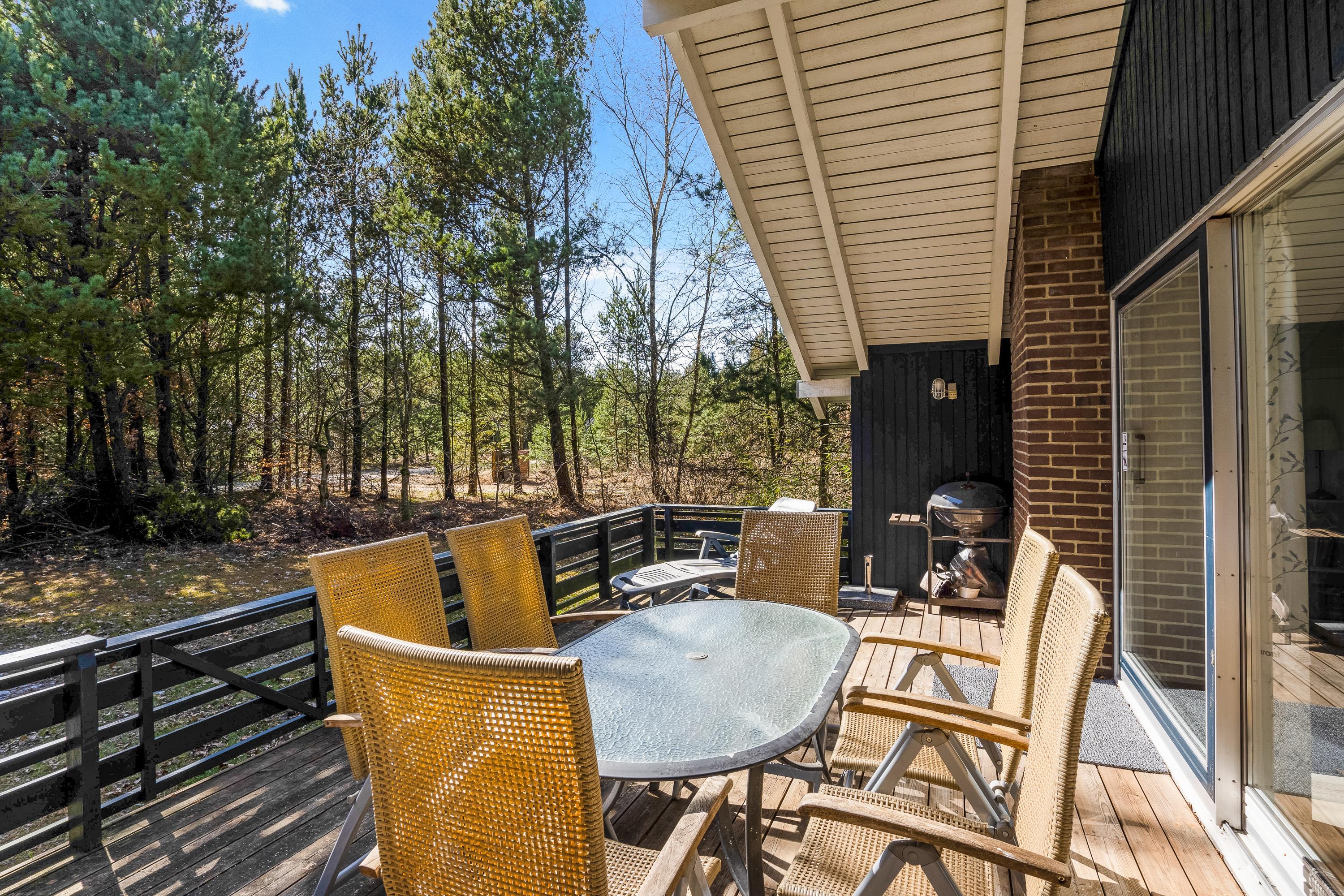 Huset er omringet af Houstrups høje træer, hvilket giver jer masser af privatliv, ro og fred til at nyde feriedagene langt væk fra alting. Her kan I drikke en god kop eftermiddagskaffe rundt om havebordet, eller få et koldt glas rosévin, mens der laves mad på grillen.